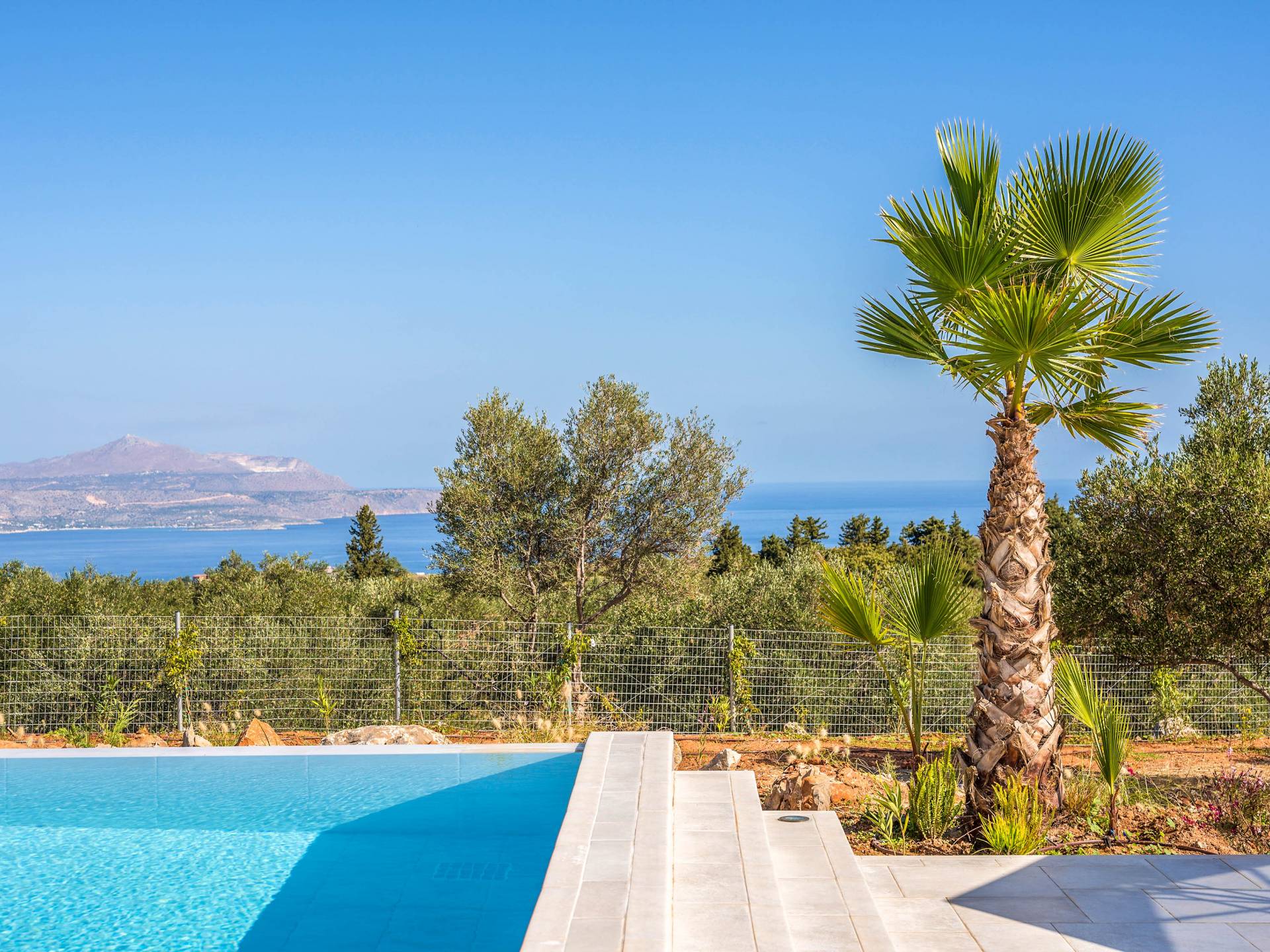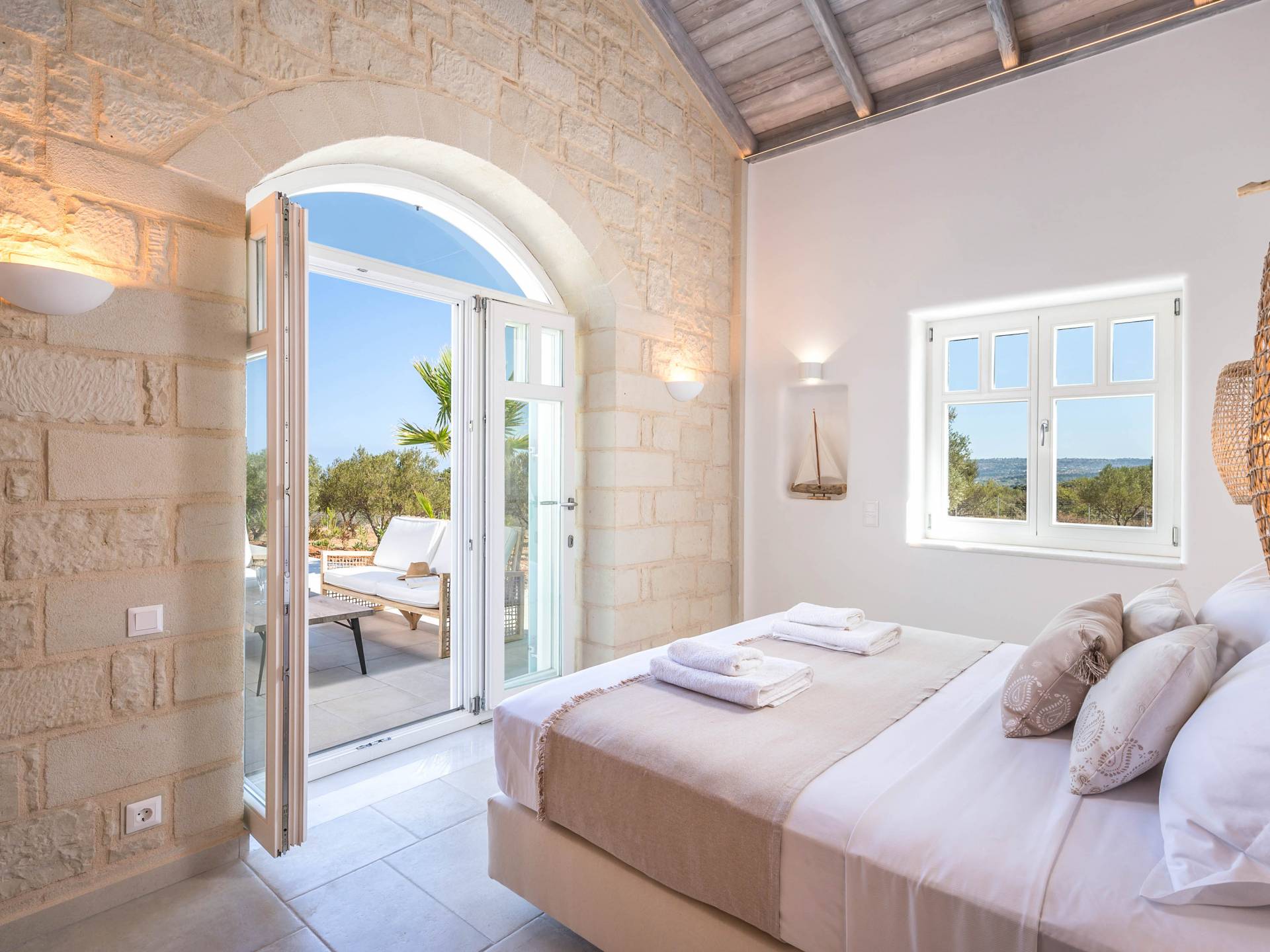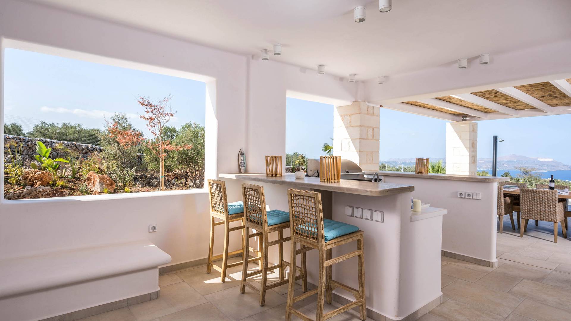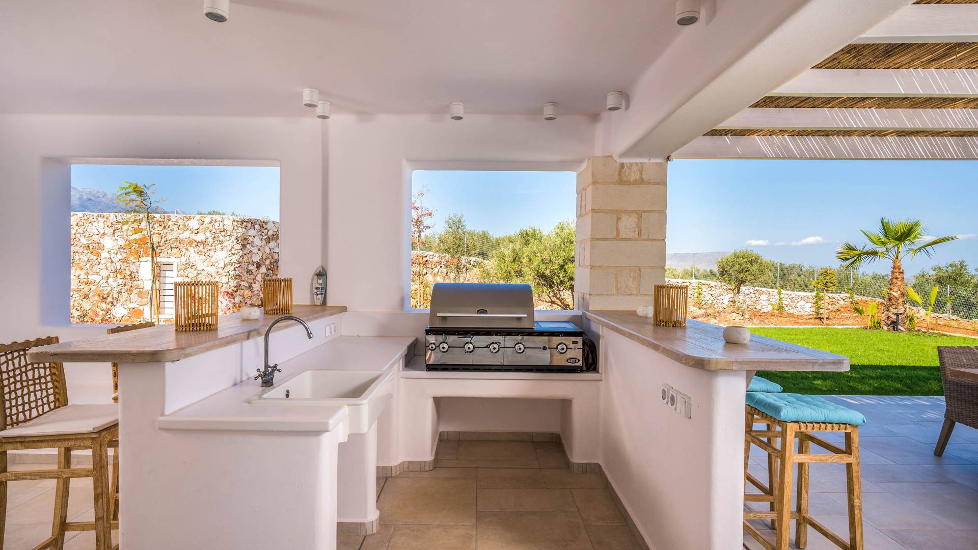 Villa Forever Crete - Everlong is a beautifully crafted, completely private luxury villa with three bedrooms, set within a 4,000 m² olive grove and offering breathtaking panoramic sea views. This radiant, airy retreat seamlessly blends traditional Cretan stone walls with elegant Cycladic influences.