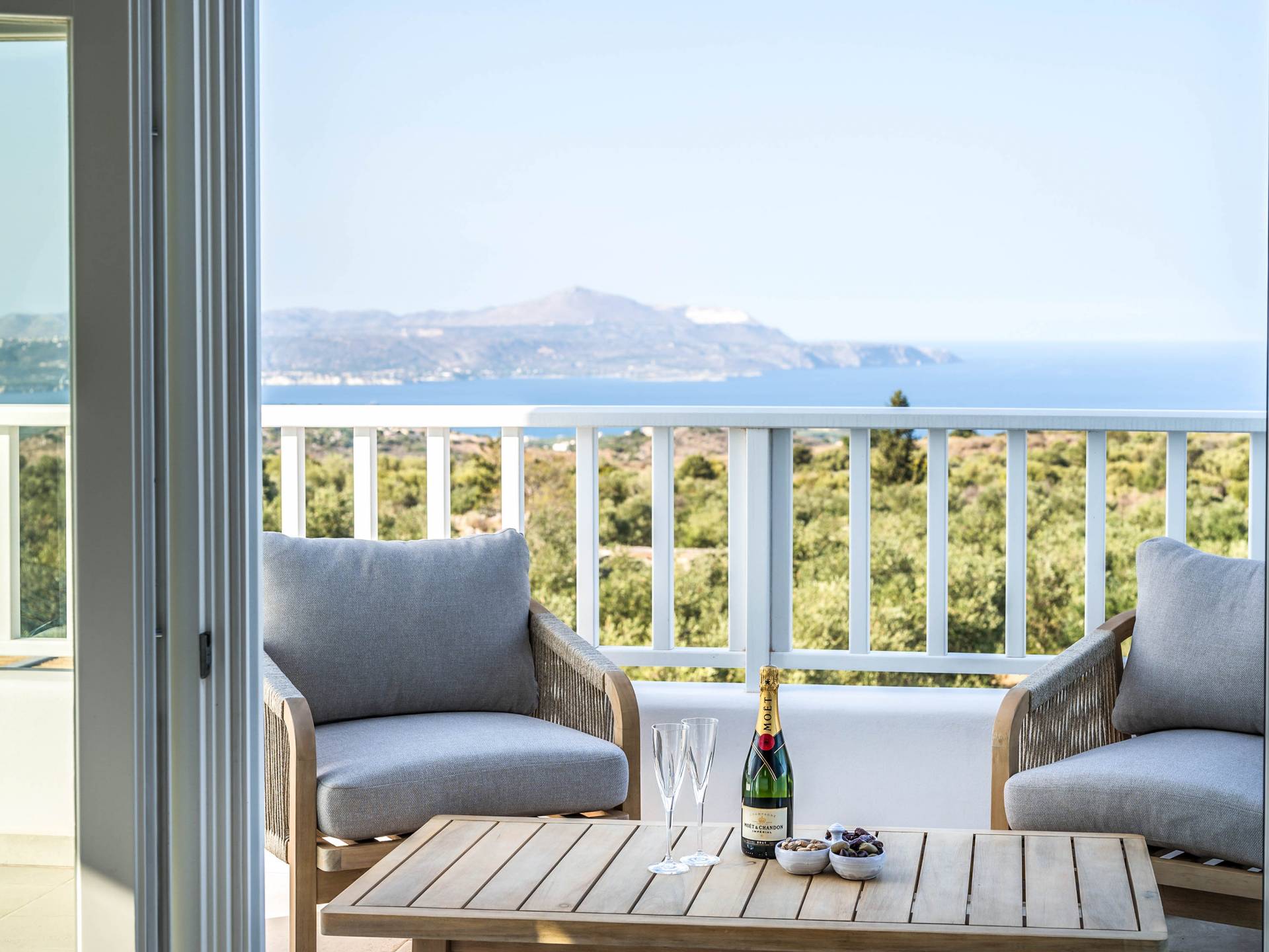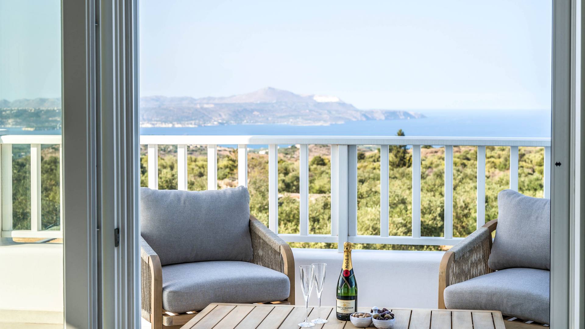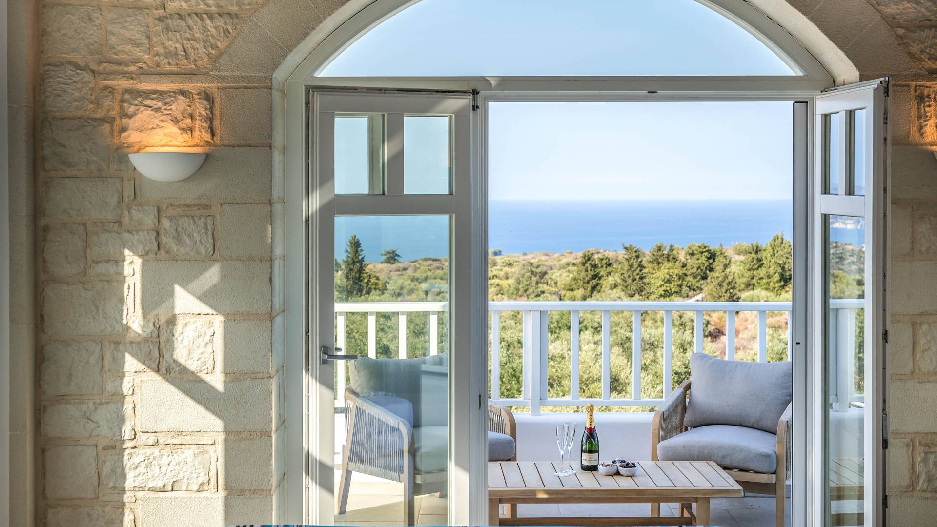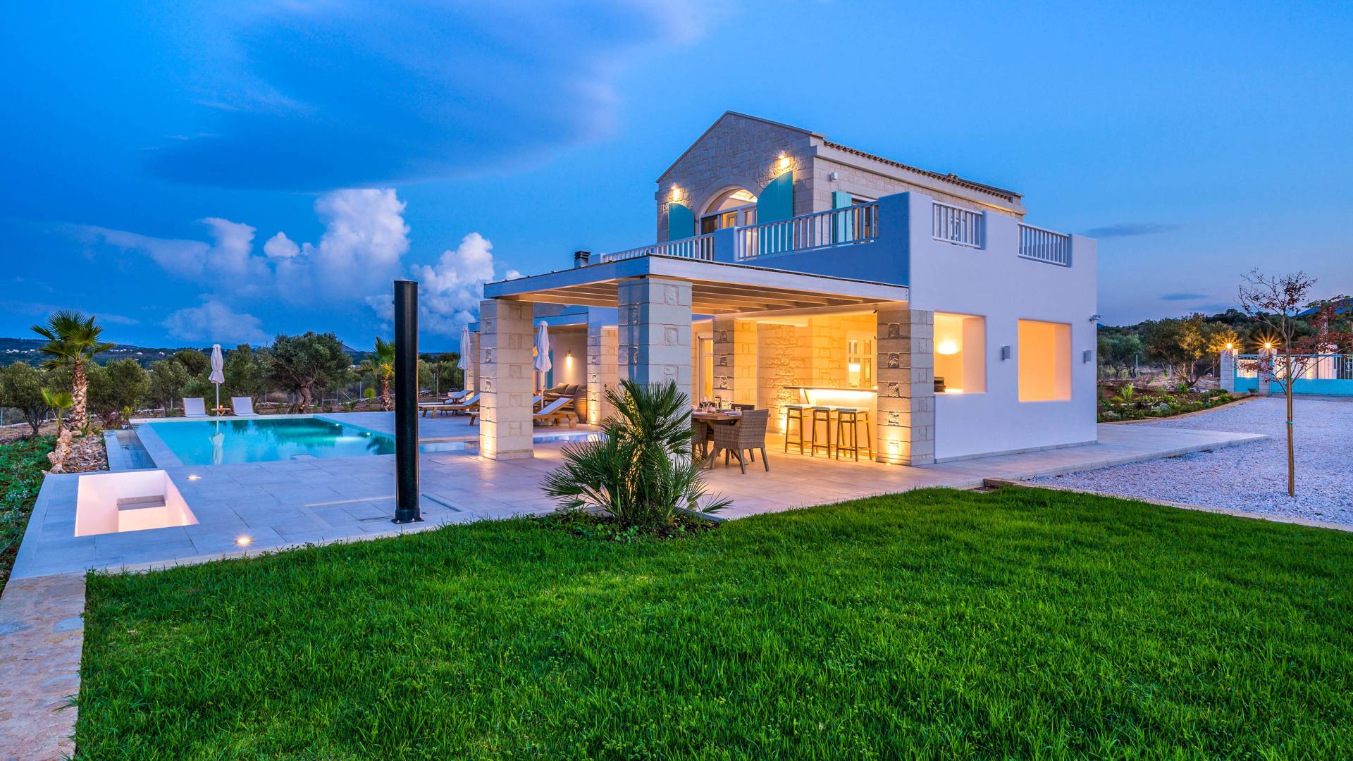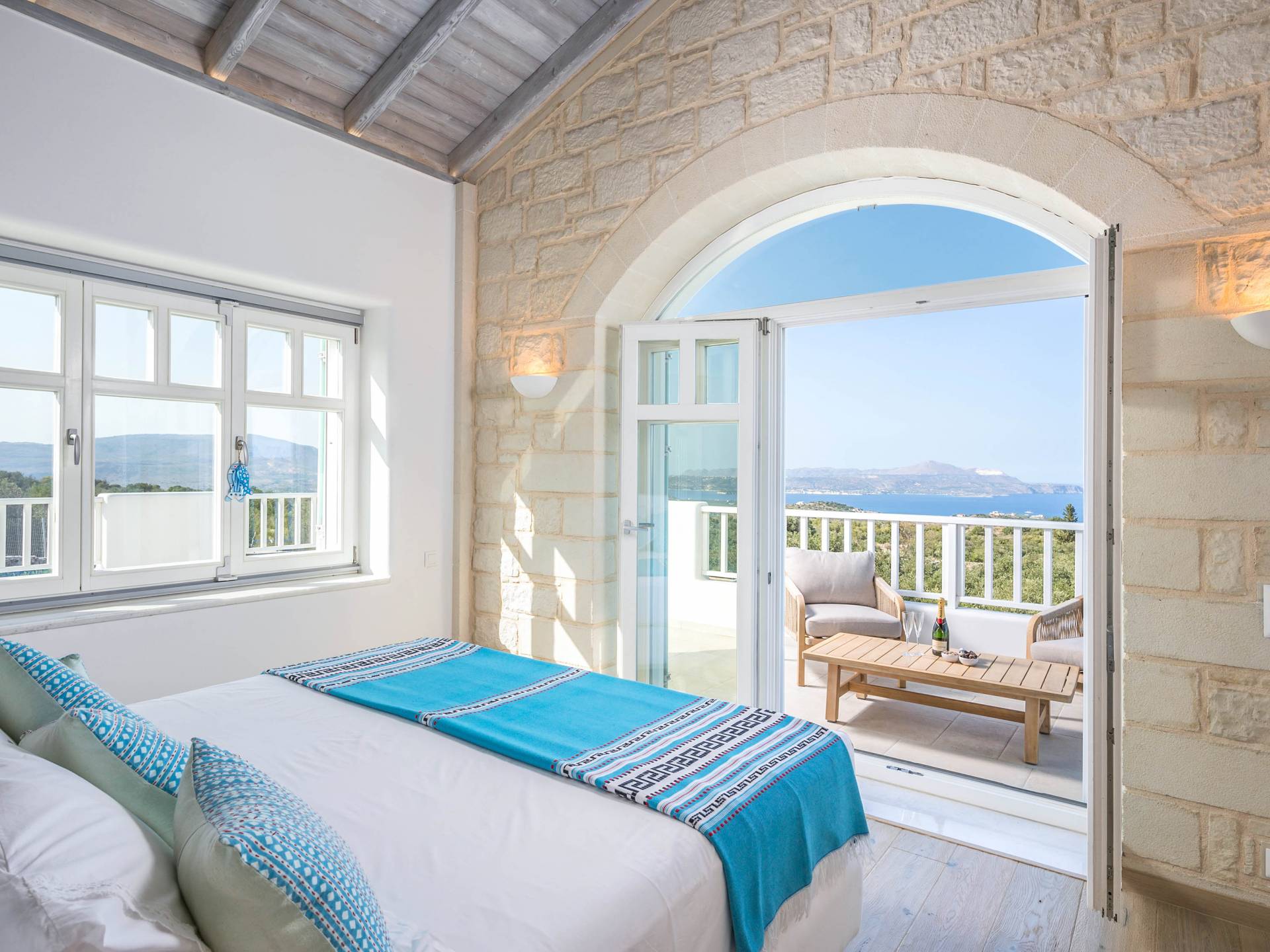 Villa Forever Crete - Everlong is a beautifully crafted, completely private luxury villa with three bedrooms, set within a 4,000 m² olive grove and offering breathtaking panoramic sea views. This radiant, airy retreat seamlessly blends traditional Cretan stone walls with elegant Cycladic influences.