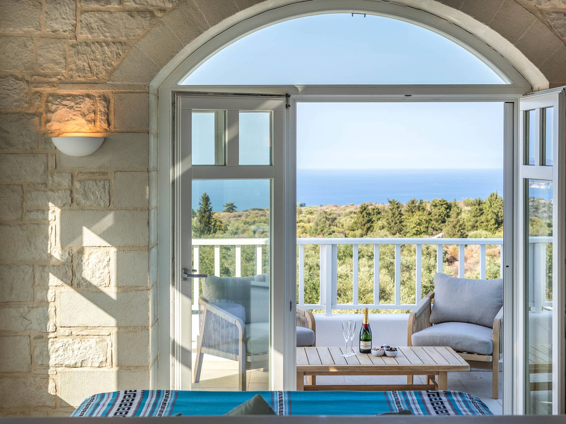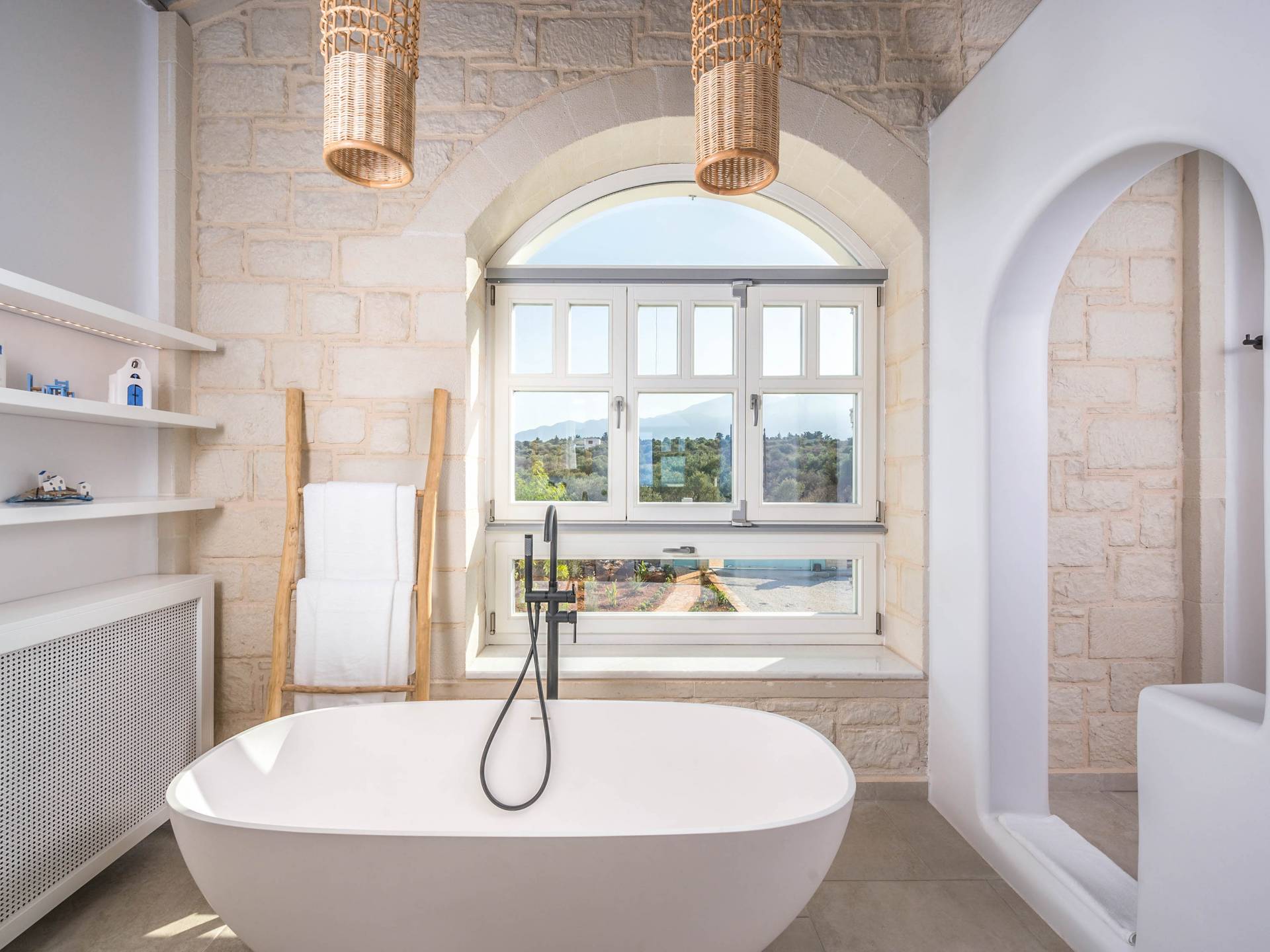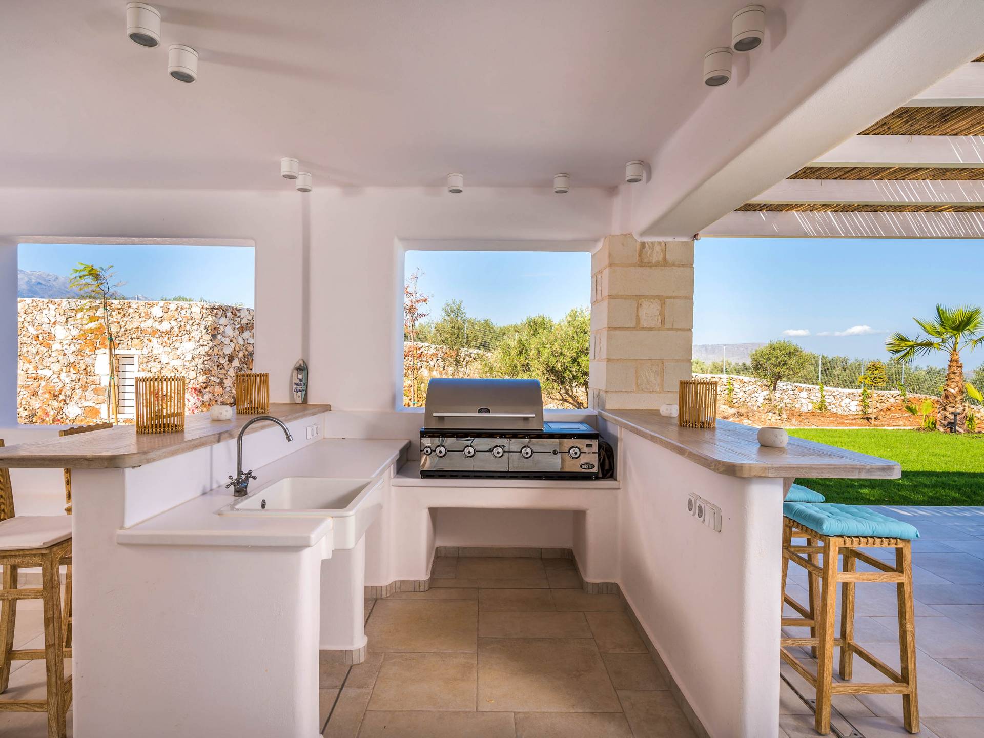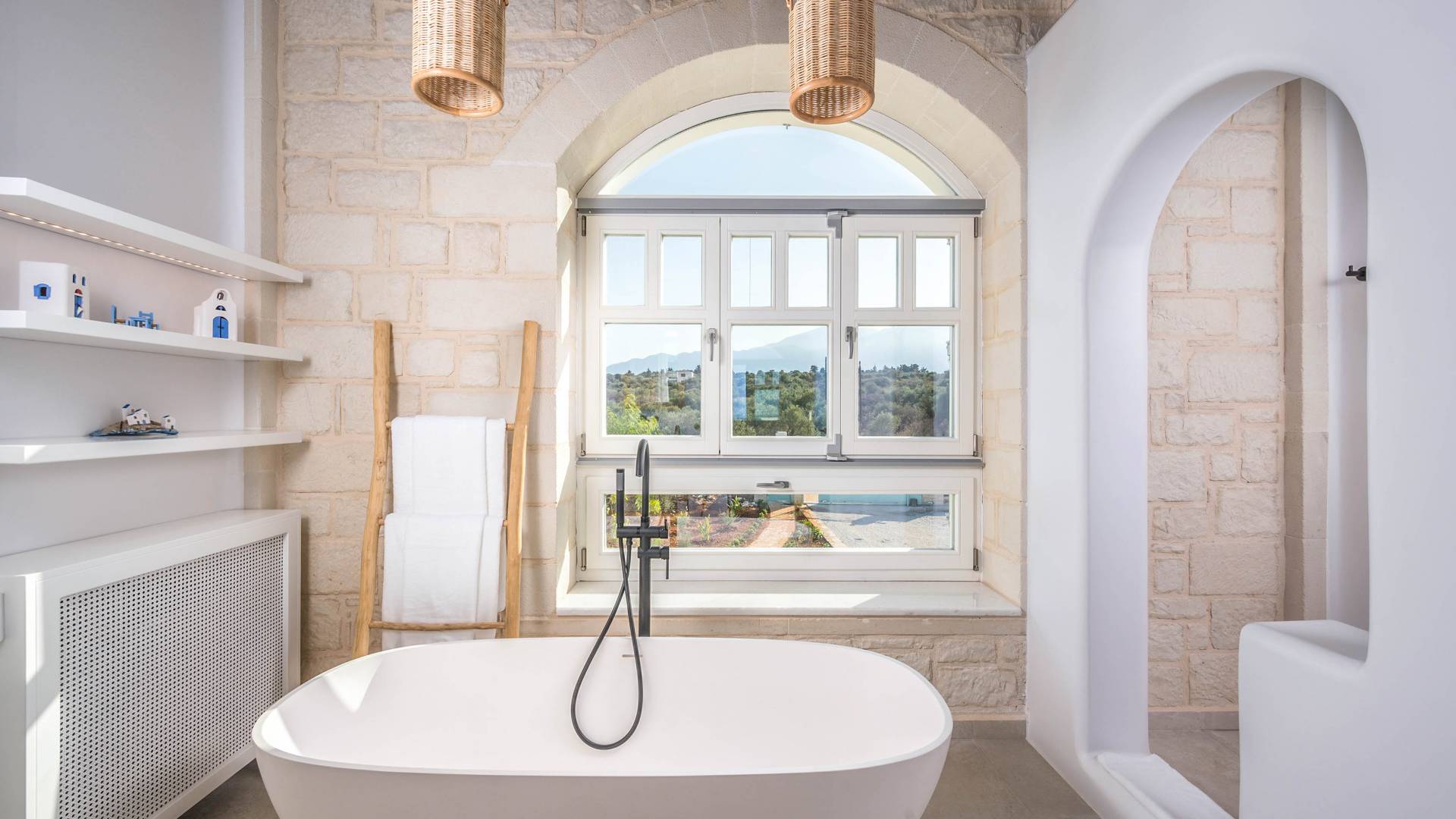 Villa Forever Crete - Everlong is a beautifully crafted, completely private luxury villa with three bedrooms, set within a 4,000 m² olive grove and offering breathtaking panoramic sea views. This radiant, airy retreat seamlessly blends traditional Cretan stone walls with elegant Cycladic influences.