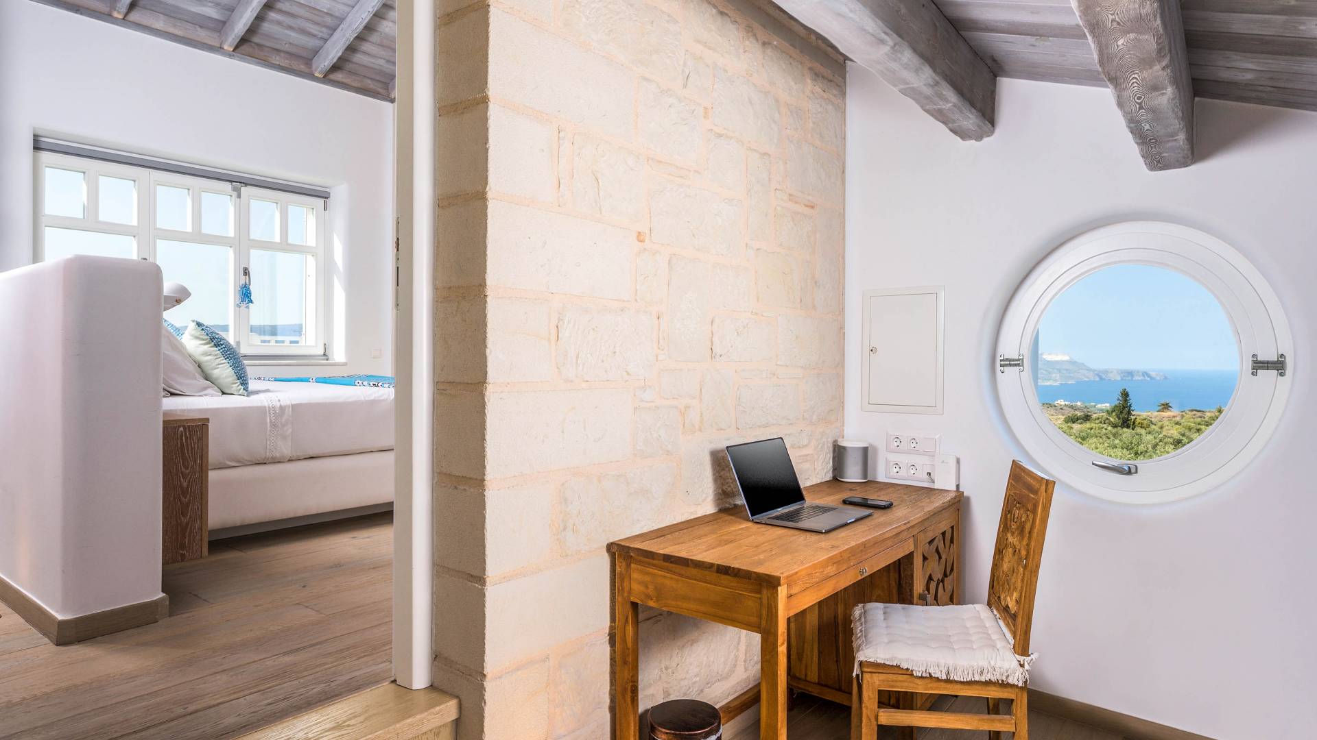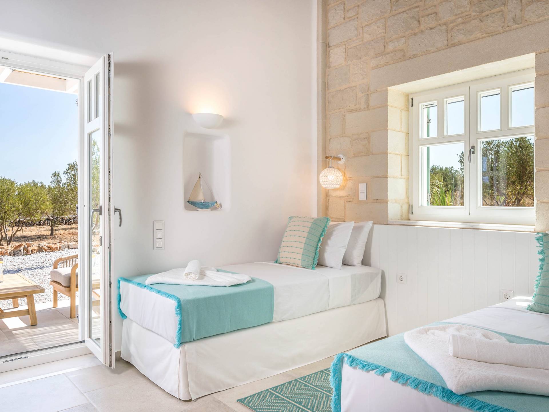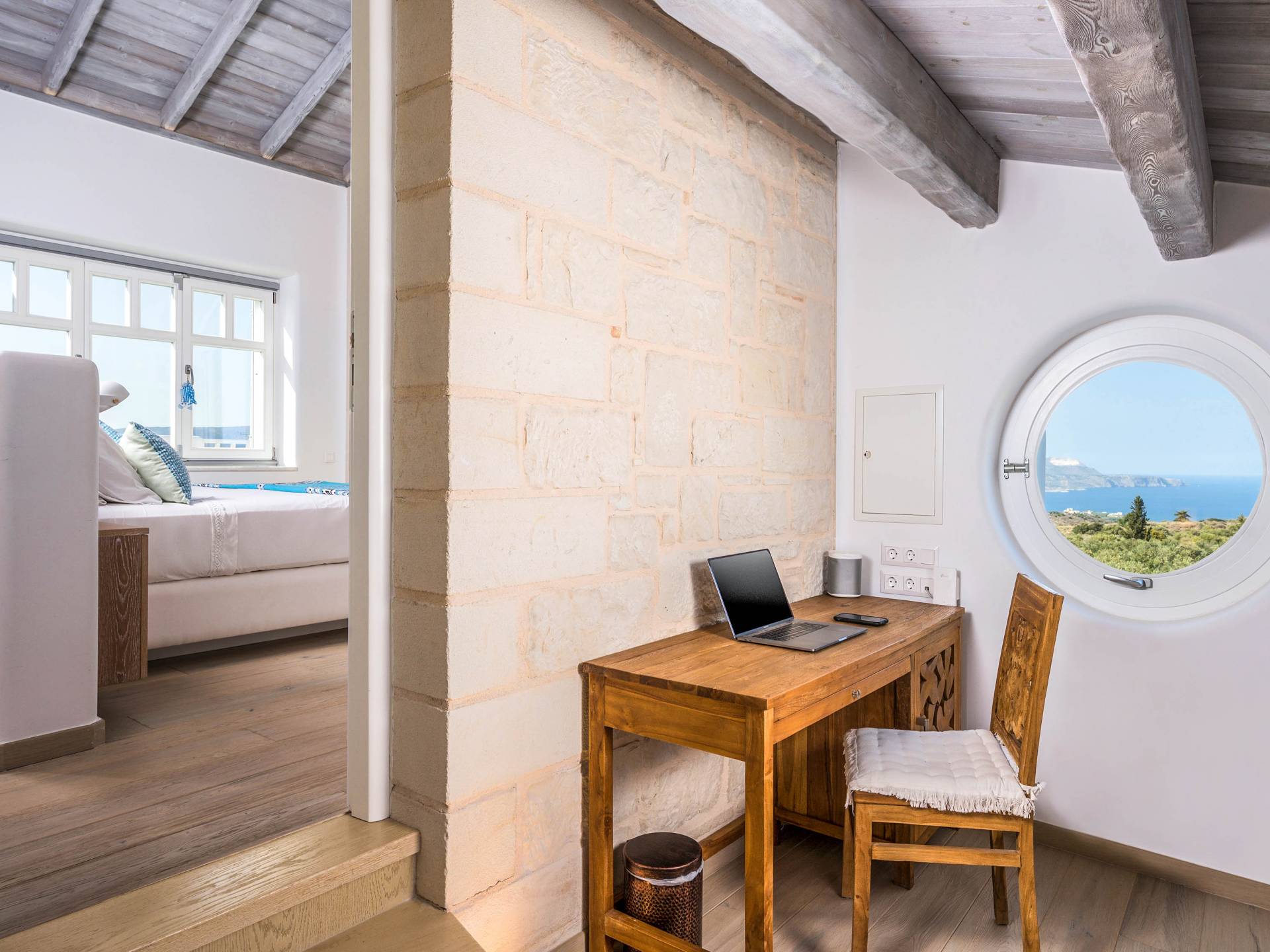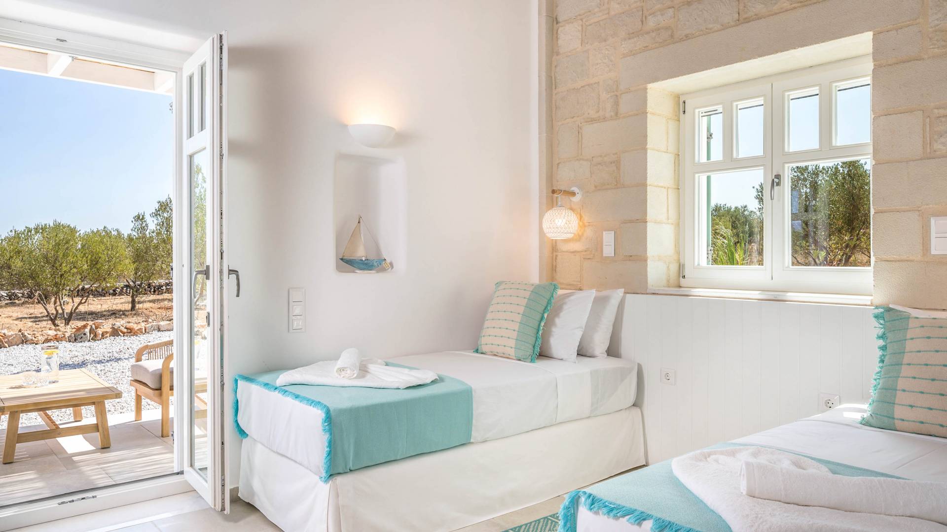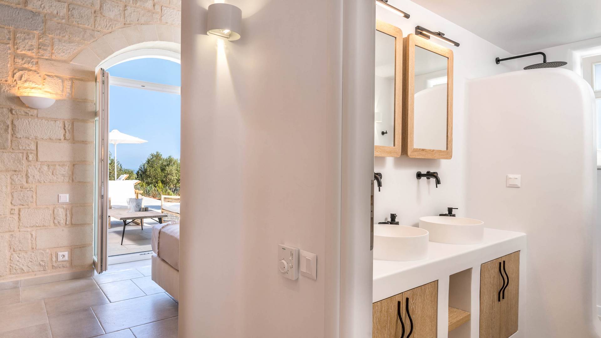 Villa Forever Crete - Everlong is a beautifully crafted, completely private luxury villa with three bedrooms, set within a 4,000 m² olive grove and offering breathtaking panoramic sea views. This radiant, airy retreat seamlessly blends traditional Cretan stone walls with elegant Cycladic influences.