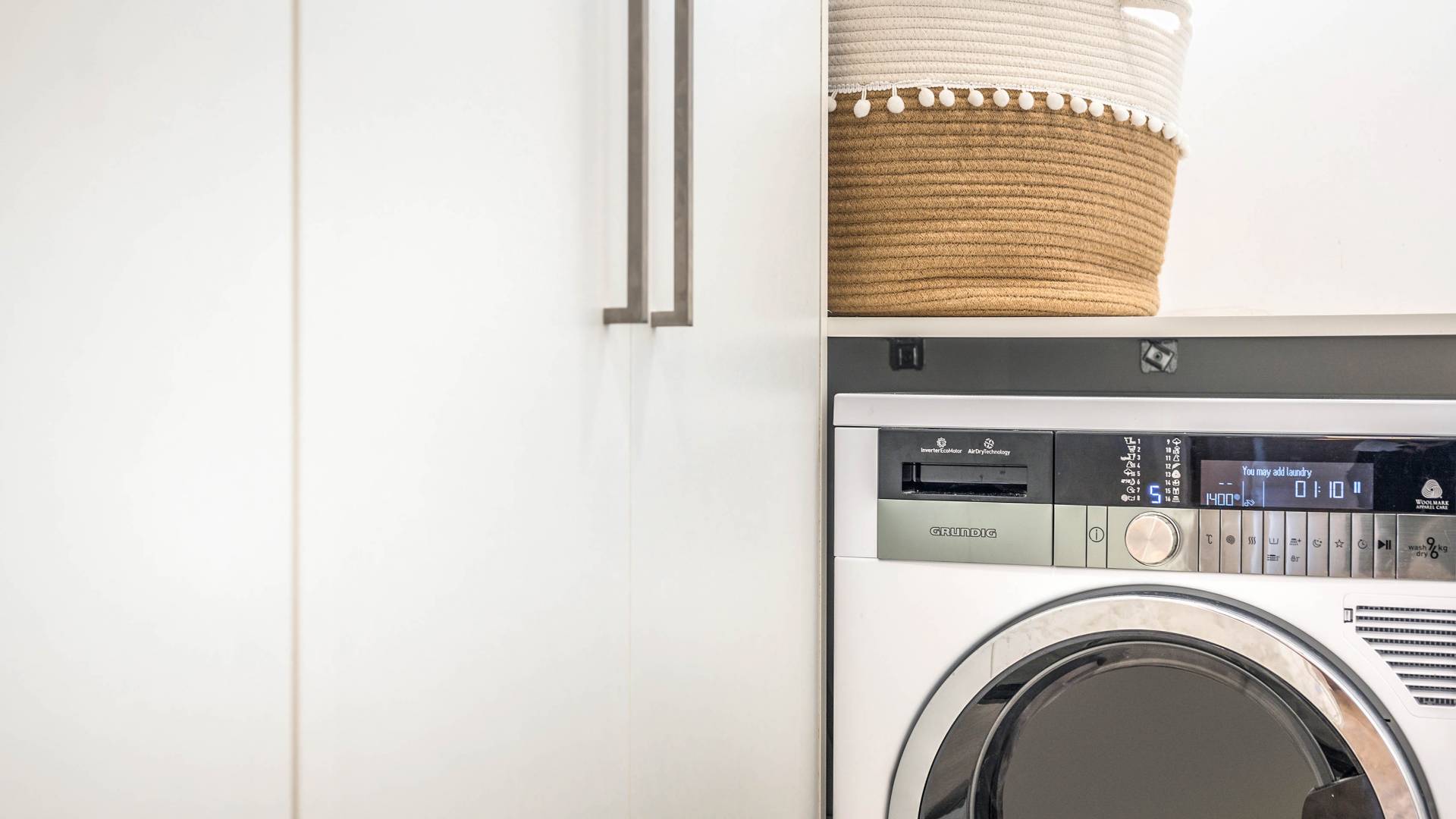 The state-of-the-art kitchen is fully equipped for culinary enthusiasts, featuring a SMEG gas cooktop, dual oven, chef’s knives, a Kenwood Chef food processor, grinder, juicer, and an American-style double-door refrigerator.