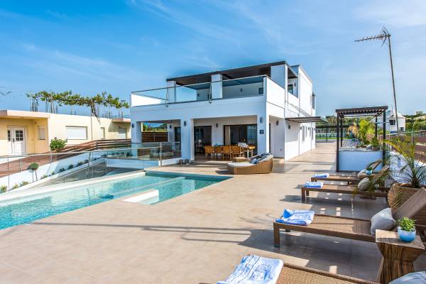 Η τοποθεσία είναι τέλεια καθώς υπάρχουν σούπερ μάρκετ, ταβέρνες και αρτοποιεία σε κοντινή απόσταση με τα πόδια. Δεν χρειάζεται αυτοκίνητο για να μείνετε εδώ. Υπάρχουν 6 υπνοδωμάτια, όλα με δικό τους μπάνιο, μερικά υπνοδωμάτια έχουν πρόσβαση σε σκεπαστές βεράντες, και ένα είναι σχεδιασμένο για HC ή για οικογένειες με μωρά, όλα τα δωμάτια διαθέτουν κλιματισμό και τηλεόραση, υπάρχει ενιαία κουζίνα/καθιστικό με πρόσβαση σε μια φανταστική βεράντα και εξωτερική τραπεζαρία για 12 άτομα. Η βίλα διαθέτει πισίνα υπερχείλισης με θαλασσινό νερό, ιδιωτικό γήπεδο τένις, μεγάλο μπάρμπεκιου με εξωτερική κουζίνα με ψυγείο και νεροχύτη και λαχανόκηπο στο πίσω μέρος του γηπέδου τένις.