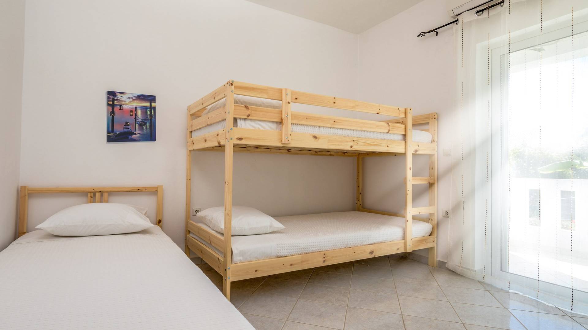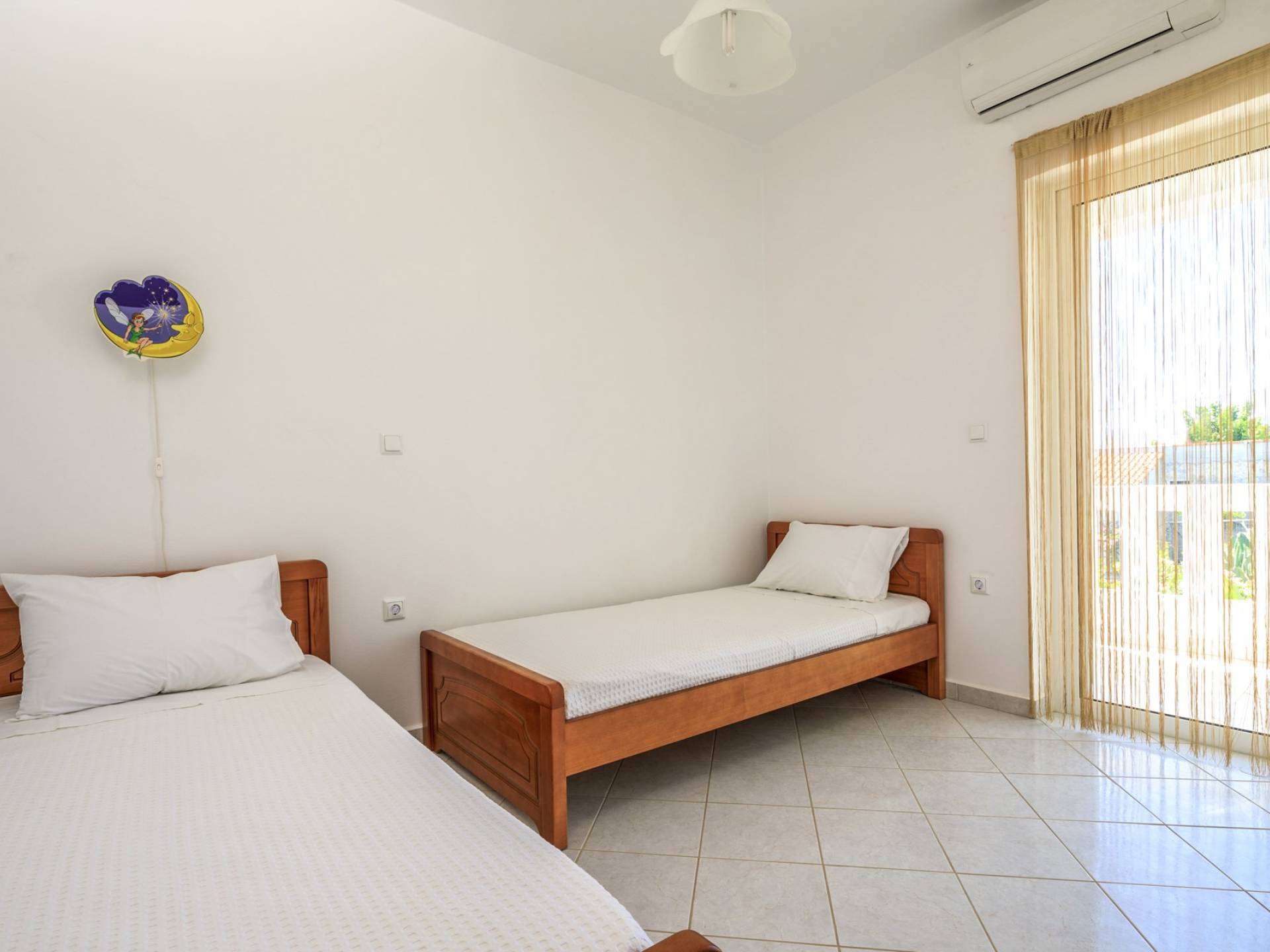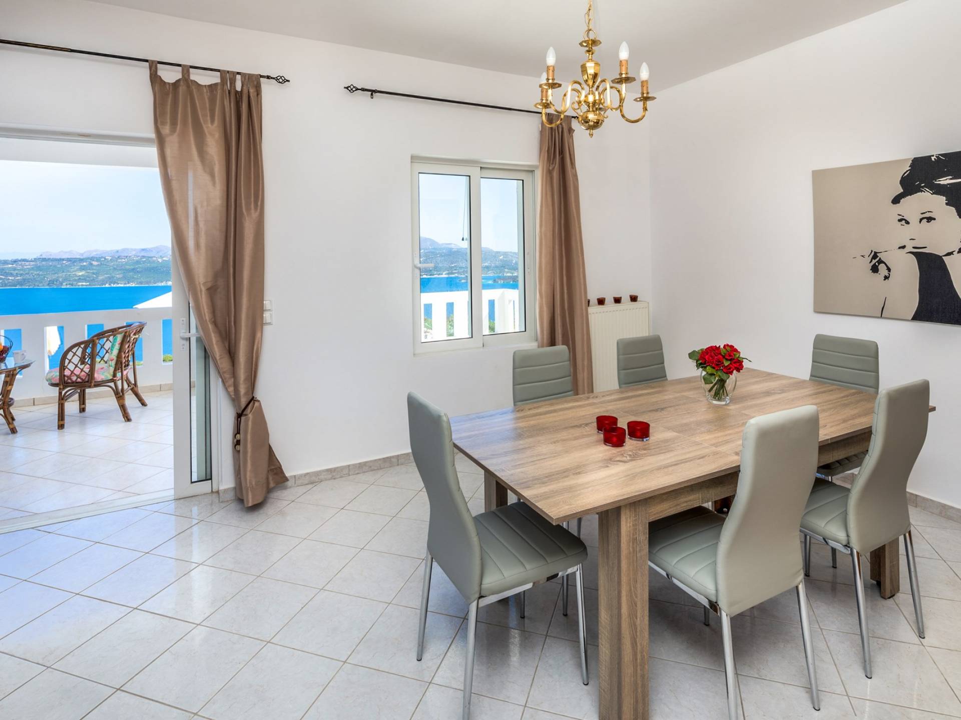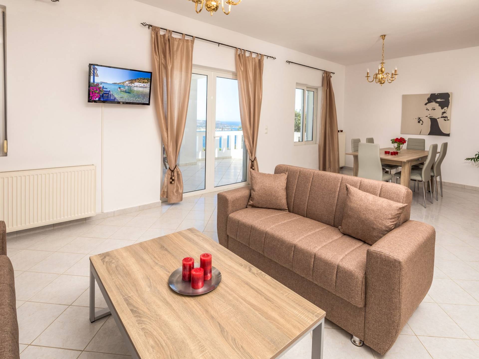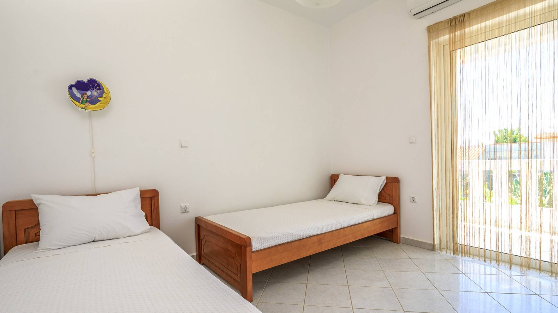 Η κουζίνα είναι πλήρως εξοπλισμένη με ψυγείο-καταψύκτη, ηλεκτρική κουζίνα πλήρους μεγέθους με εστίες φούρνου και απαραίτητα σκεύη. Σε κάθε διαμέρισμα, υπάρχουν δύο υπνοδωμάτια και ένα ευρύχωρο μπάνιο. Όλα τα υπνοδωμάτια είναι κλιματιζόμενα και έχουν πρόσβαση σε μπαλκόνια ή βεράντες. Η ιδιωτική πισίνα και η γύρω περιοχή απολαμβάνουν ιδιωτικότητα και εκπληκτική θέα στον κόλπο της Σούδας και στα βουνά.