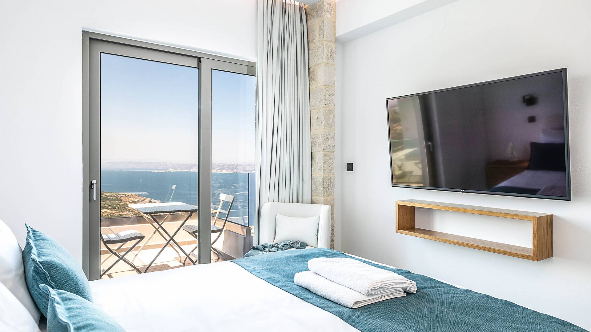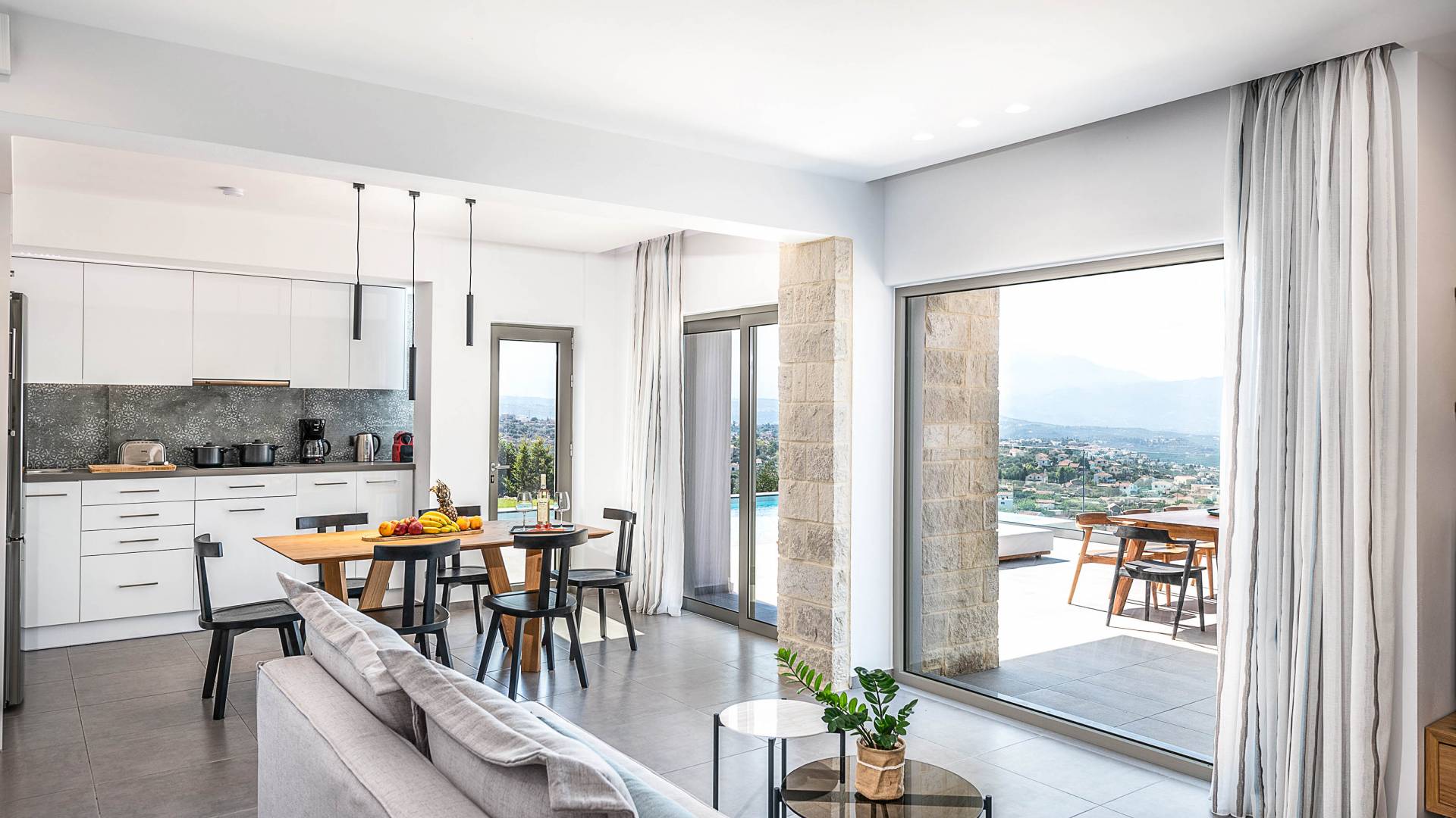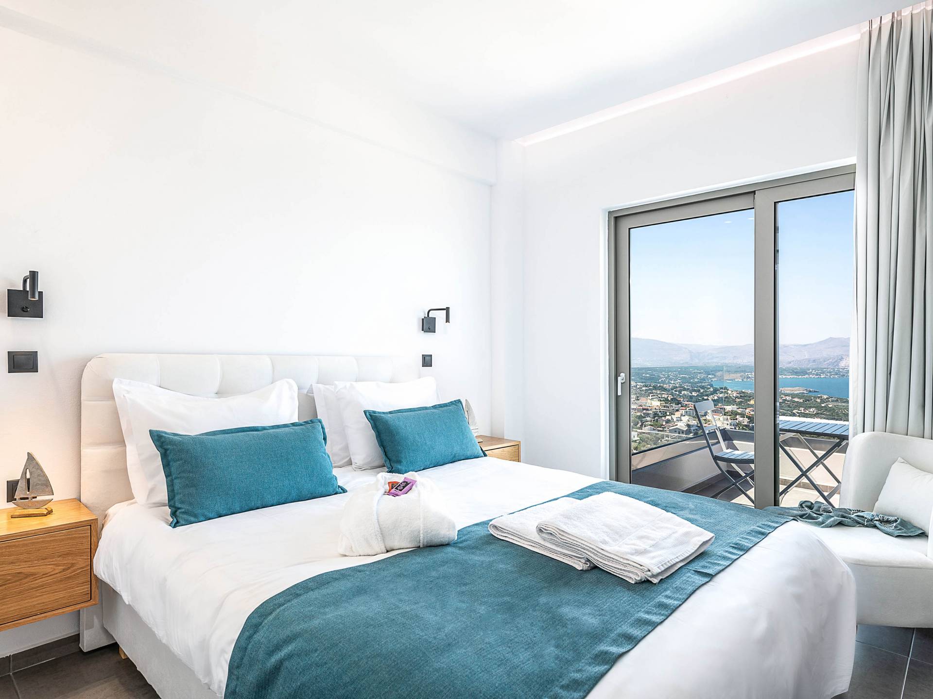 Designed to evoke a sense of comfort and luxury, Villa Ore Crete features 122 square meters of beautifully appointed living space. The villa boasts three elegant bedrooms, each furnished with a double bed and accompanied by an individual en-suite bathroom, ensuring privacy and comfort for all guests. From each bedroom, enjoy breathtaking panoramic views of Souda Bay, the charming Apokoronas villages, and the majestic White Mountains – a perfect blend of sea, village life, and nature.