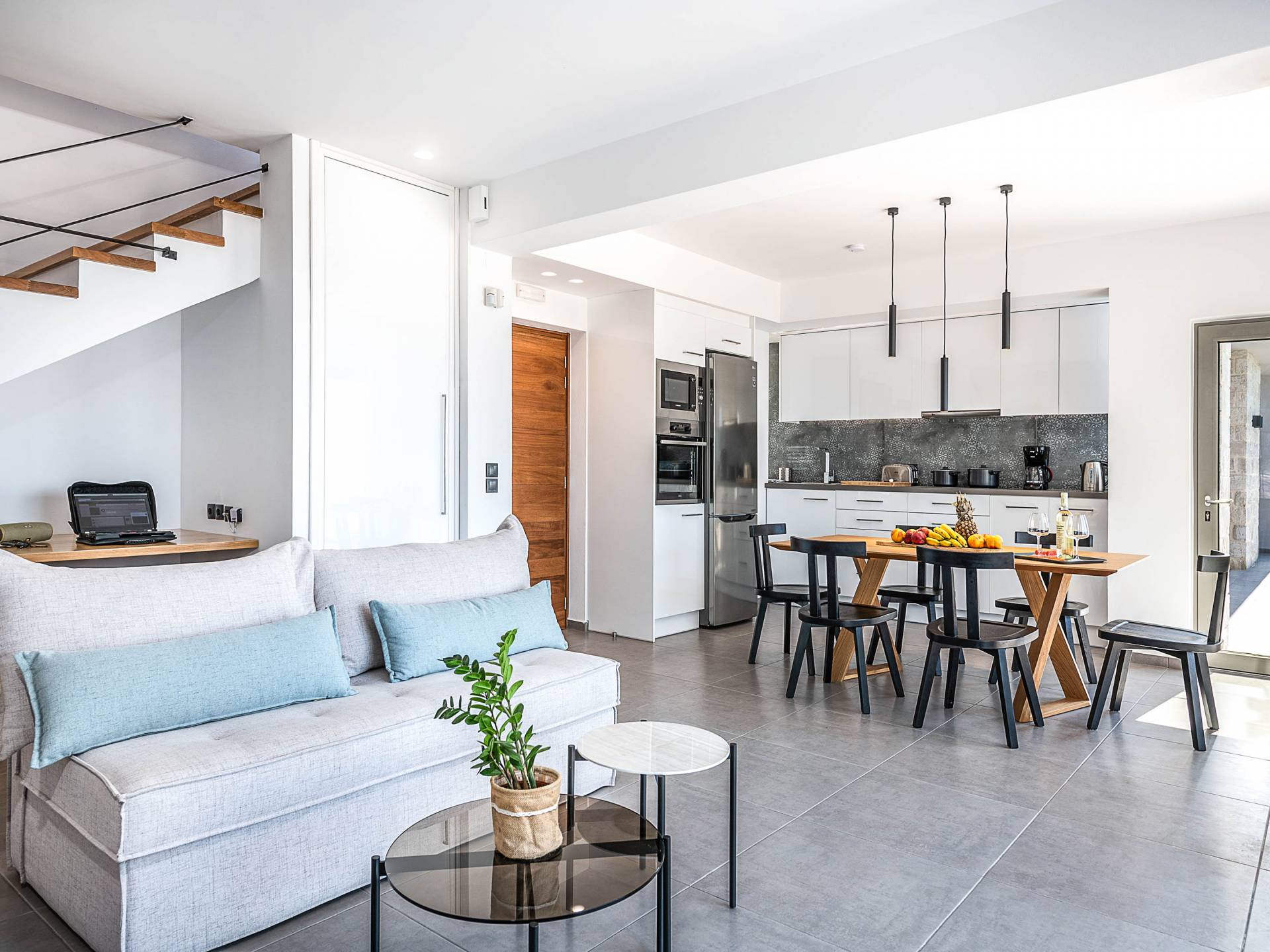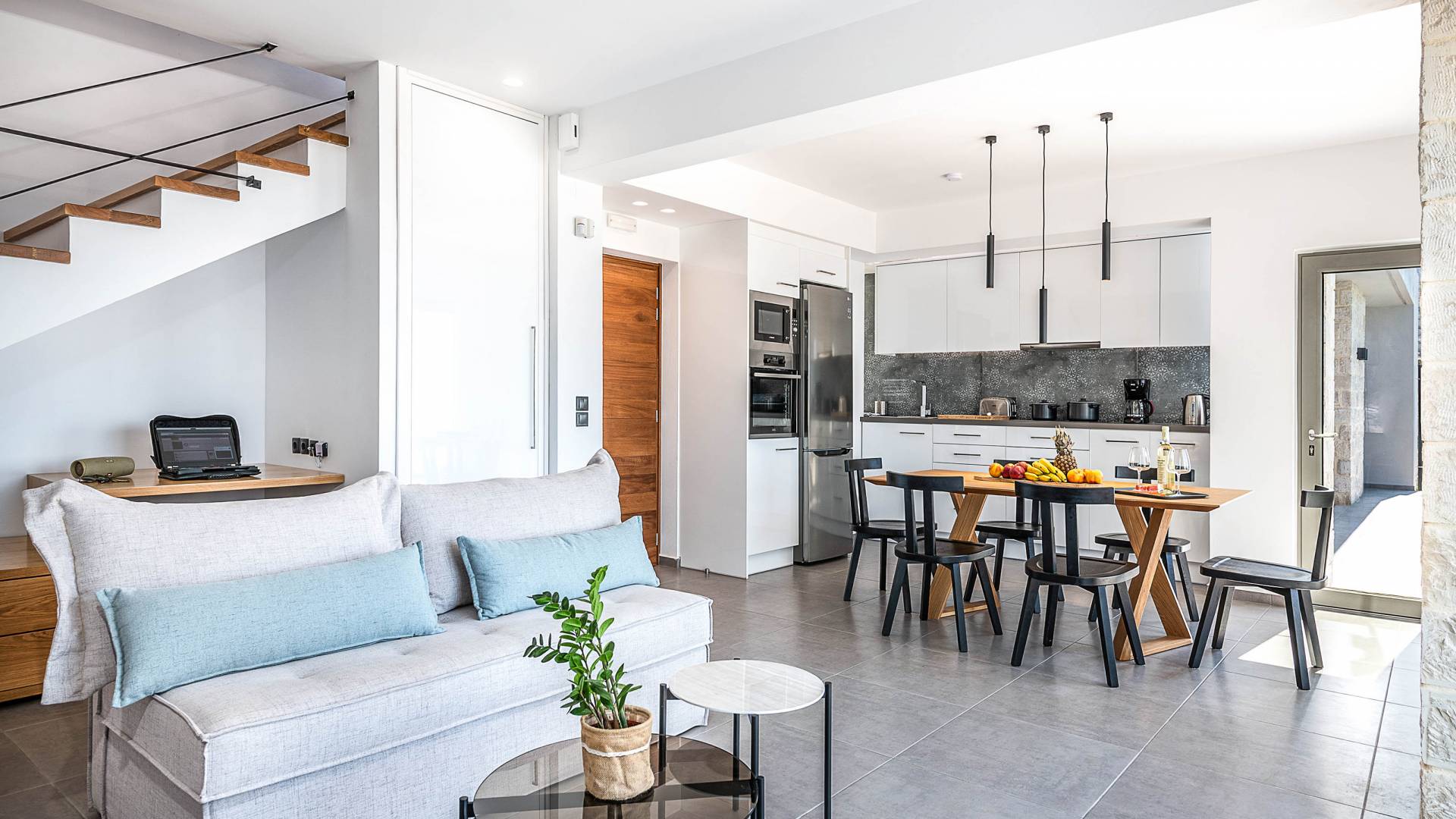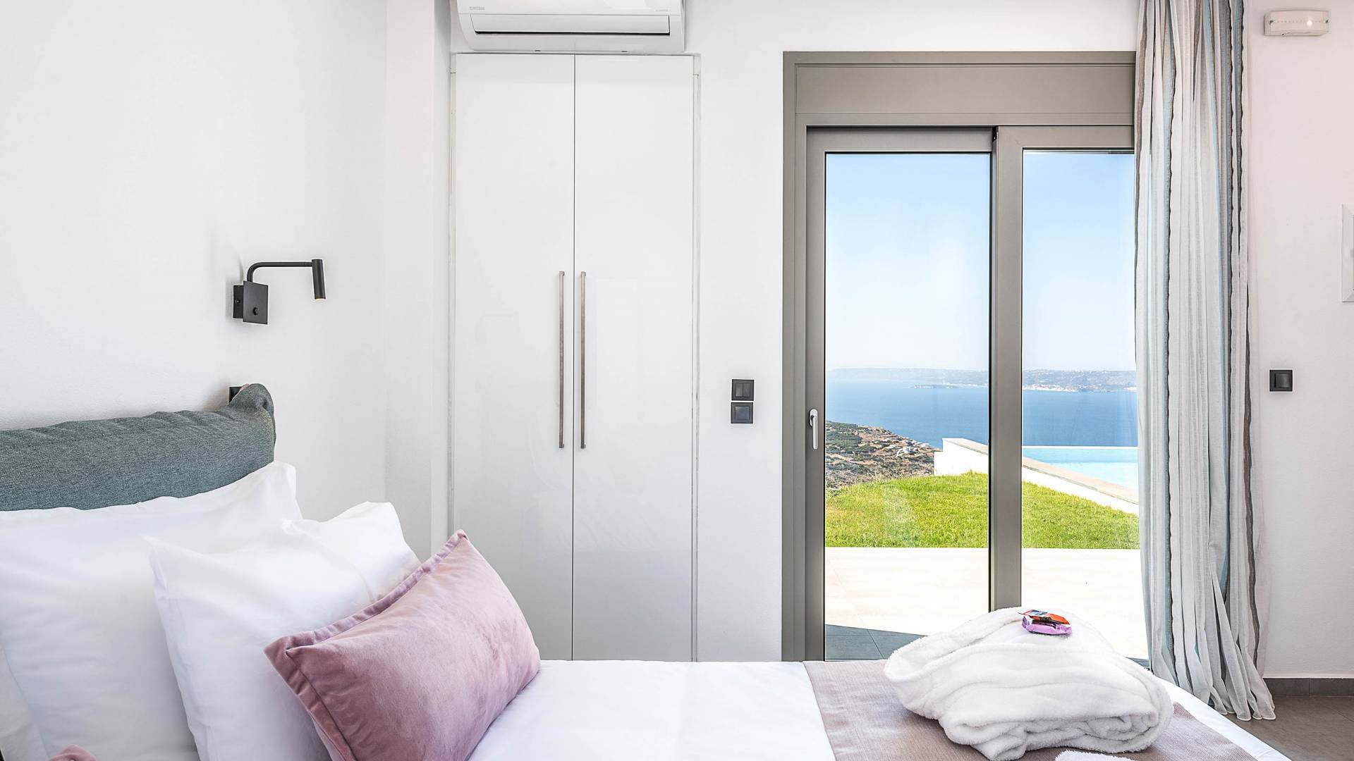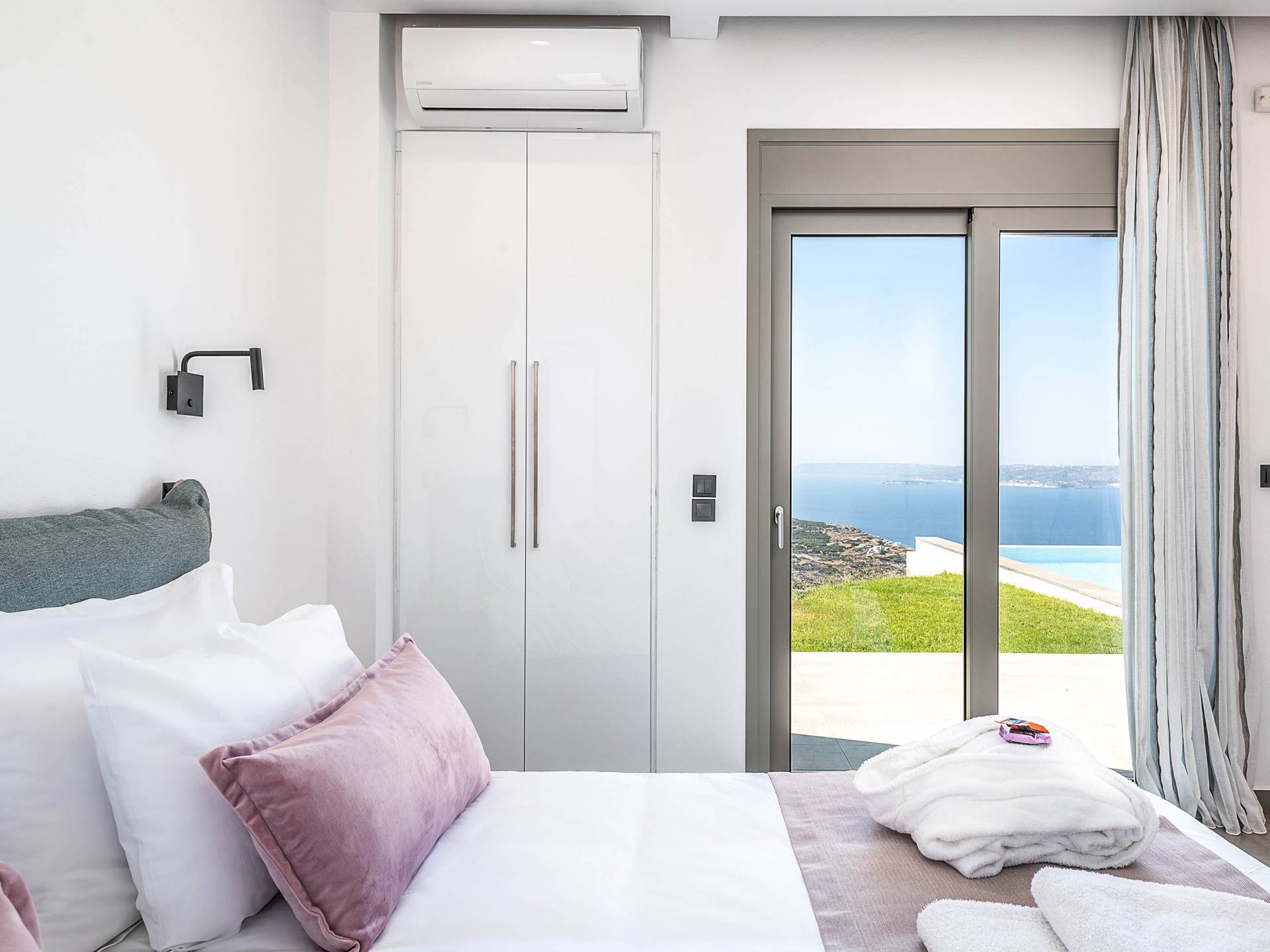 Designed to evoke a sense of comfort and luxury, Villa Ore Crete features 122 square meters of beautifully appointed living space. The villa boasts three elegant bedrooms, each furnished with a double bed and accompanied by an individual en-suite bathroom, ensuring privacy and comfort for all guests. From each bedroom, enjoy breathtaking panoramic views of Souda Bay, the charming Apokoronas villages, and the majestic White Mountains – a perfect blend of sea, village life, and nature.