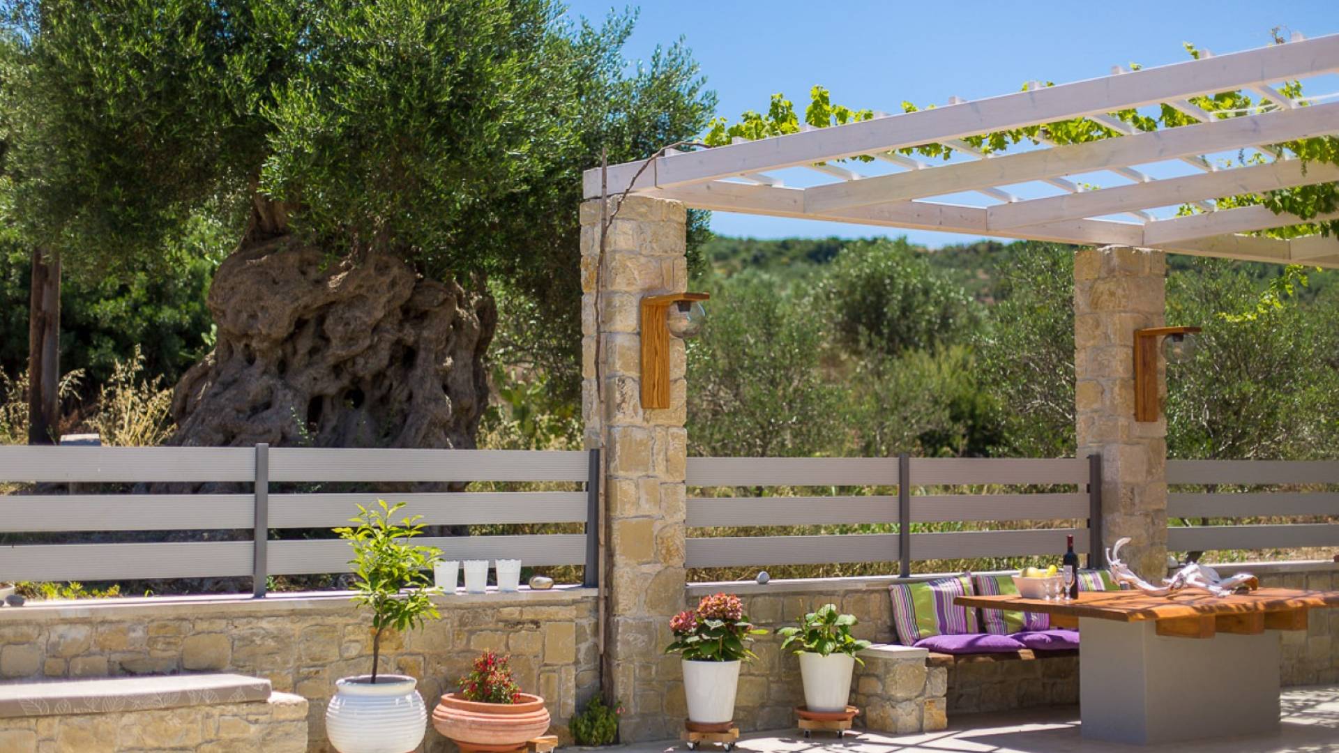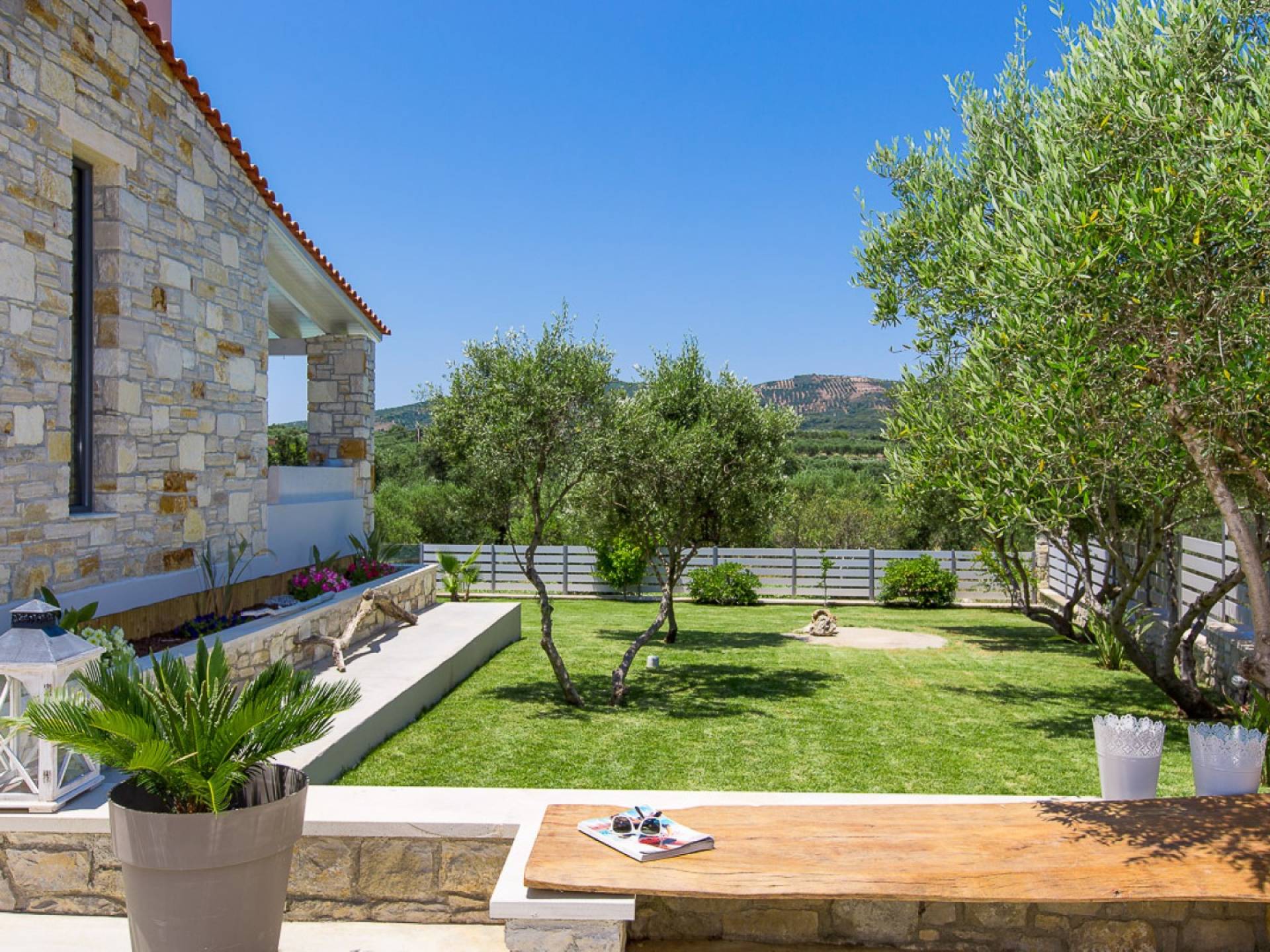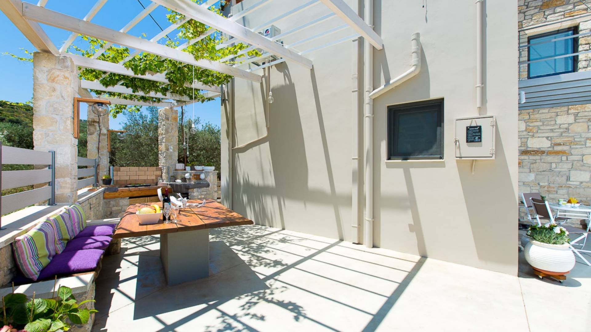 Σε εξωτερικούς χώρους υπάρχει 500 τετραγωνικά μέτρα οργανωμένη περιφραγμένη περιοχή με πολλές εγκαταστάσεις και σημεία χαλάρωσης, μοναδικά όμορφα διαμορφωμένα αρωματικά βότανα, φυτικούς κήπους και ελαιόδεντρα! Πιο συγκεκριμένα στον εξωτερικό χώρο θα βρείτε καθιστικό στη βεράντα, οργανωμένο μπάρμπεκιου με τραπέζι φαγητού, ιδιωτική πισίνα 40 τ.μ. με ξαπλώστρες και ομπρέλες, χώρο στάθμευσης για δύο αυτοκίνητα και αρκετό χώρο καλυμμένο με γρασίδι για τα παιδιά να παίζουν με ασφάλεια.