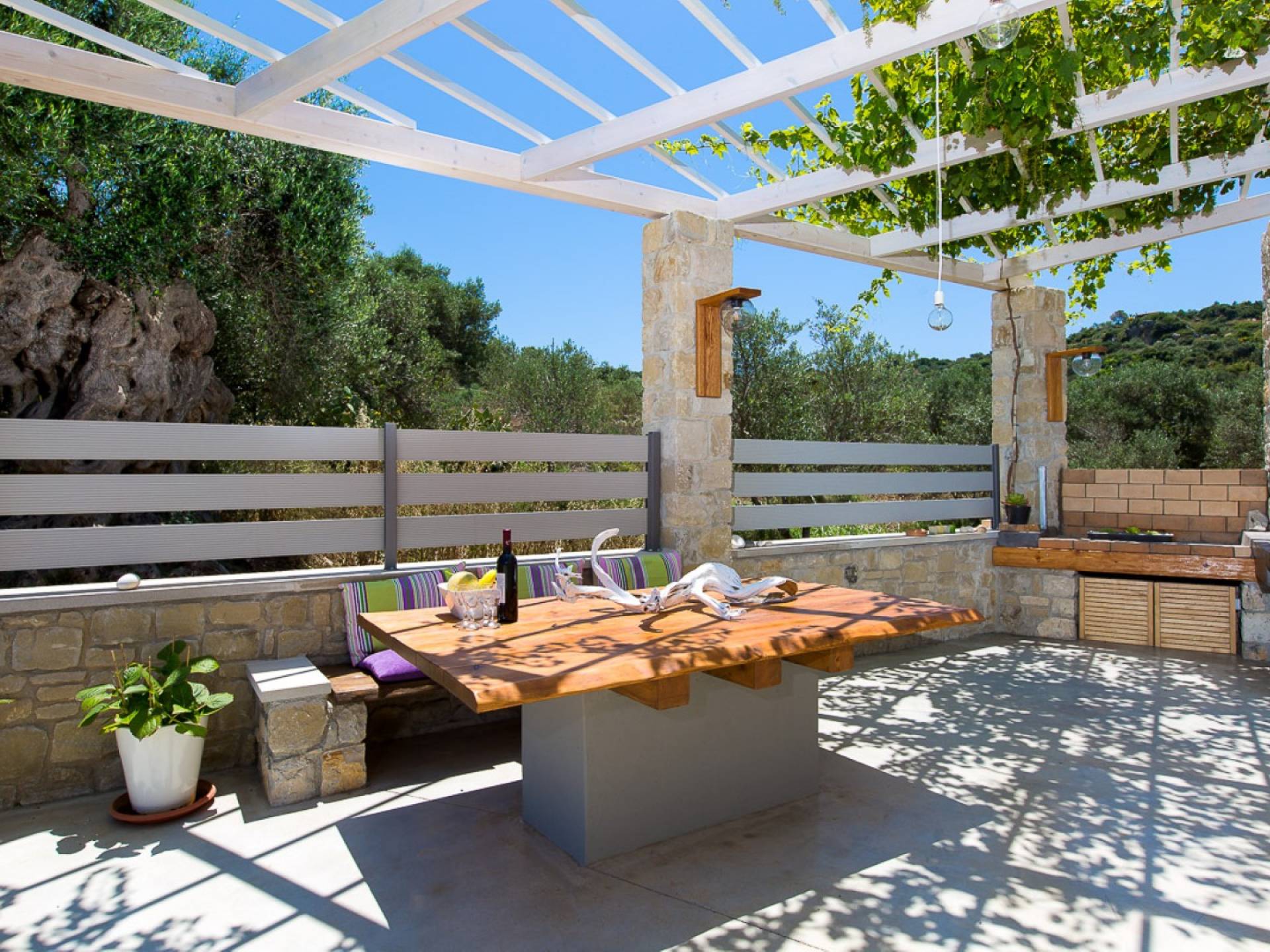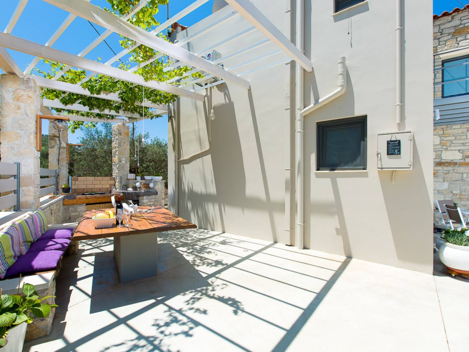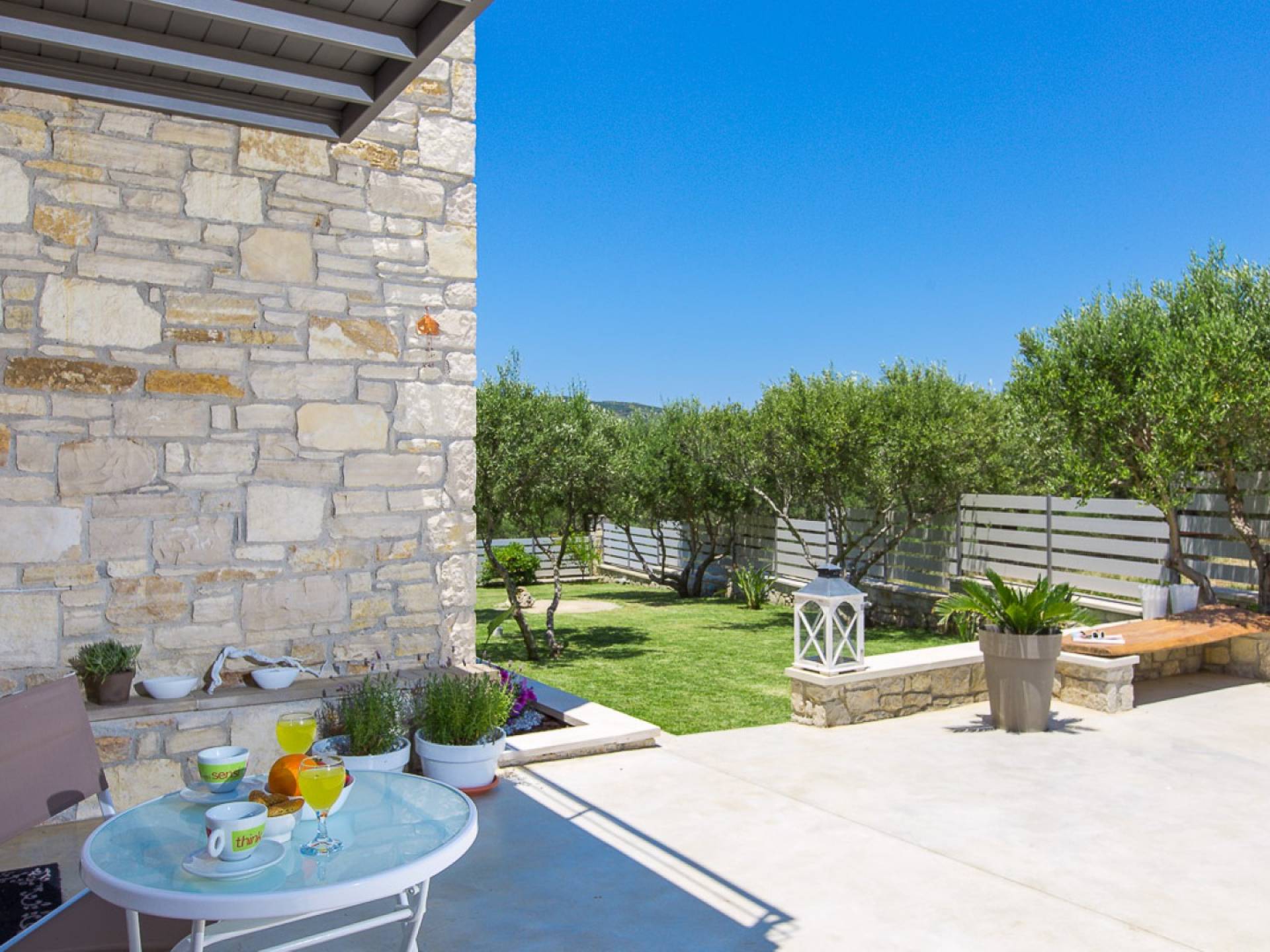 Σε εξωτερικούς χώρους υπάρχει 500 τετραγωνικά μέτρα οργανωμένη περιφραγμένη περιοχή με πολλές εγκαταστάσεις και σημεία χαλάρωσης, μοναδικά όμορφα διαμορφωμένα αρωματικά βότανα, φυτικούς κήπους και ελαιόδεντρα! Πιο συγκεκριμένα στον εξωτερικό χώρο θα βρείτε καθιστικό στη βεράντα, οργανωμένο μπάρμπεκιου με τραπέζι φαγητού, ιδιωτική πισίνα 40 τ.μ. με ξαπλώστρες και ομπρέλες, χώρο στάθμευσης για δύο αυτοκίνητα και αρκετό χώρο καλυμμένο με γρασίδι για τα παιδιά να παίζουν με ασφάλεια.