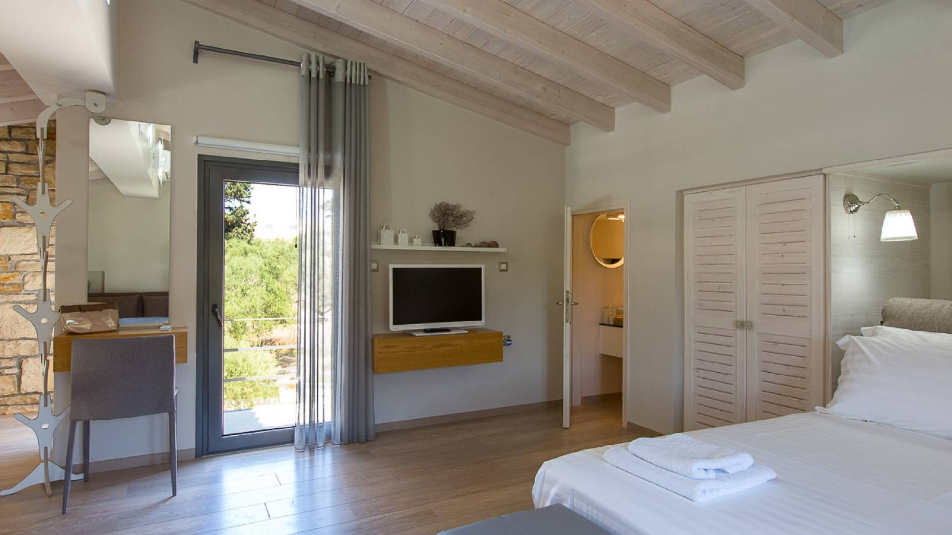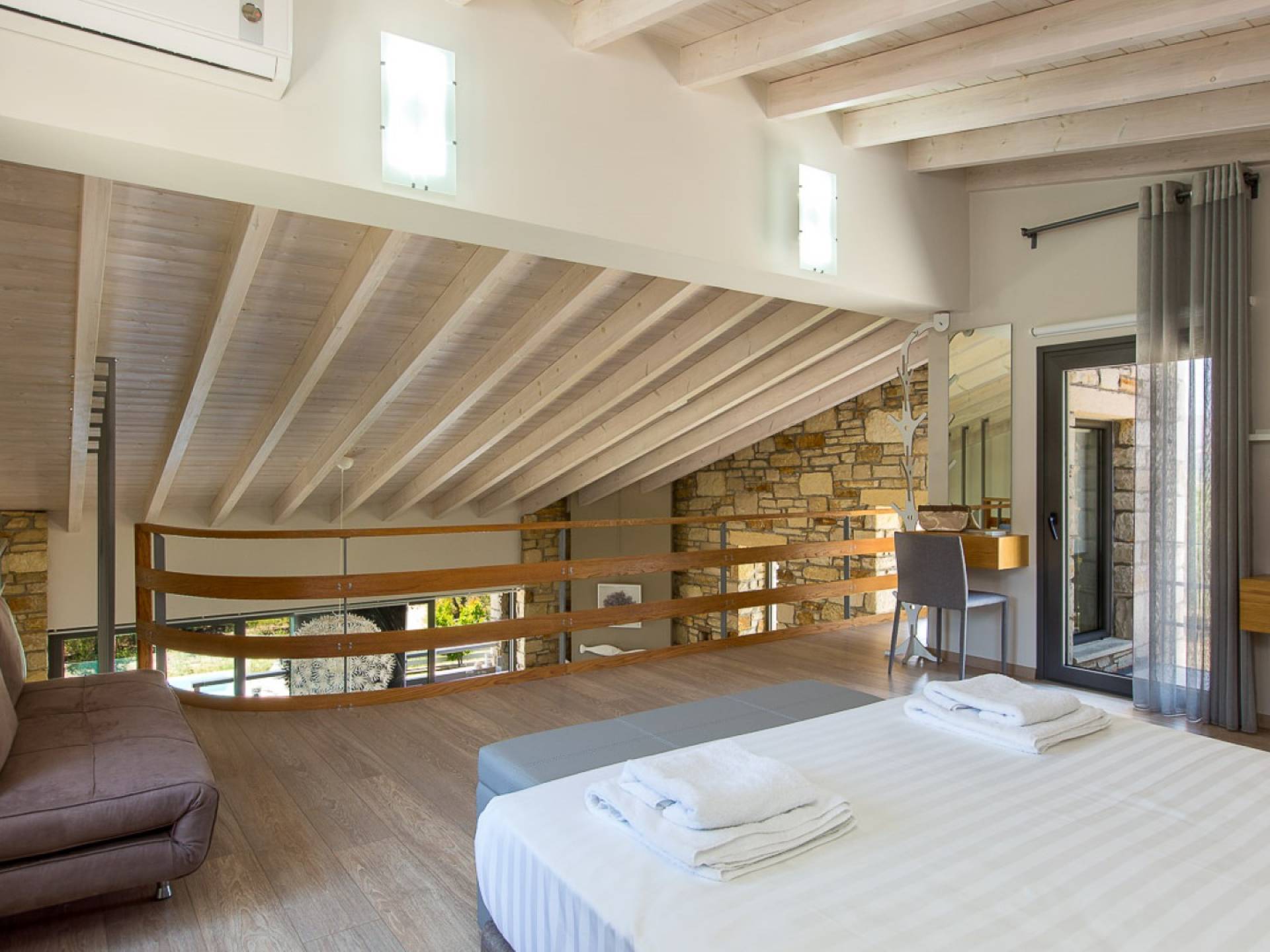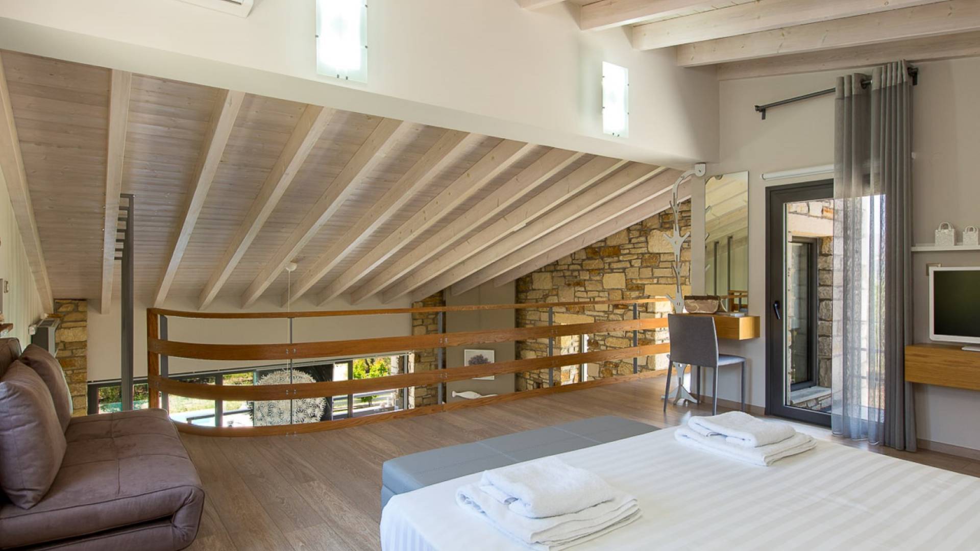 Φτάνοντας στον πρώτο όροφο (που είναι στην πραγματικότητα μια μεγάλη σοφίτα πάνω από το σαλόνι) από τις σκάλες, υπάρχει ένα υπνοδωμάτιο με ενιαίο χώρο με διπλό κρεβάτι και ένα WC περίβλημα. Αυτό το υπνοδωμάτιο περιλαμβάνει επίσης τηλεόραση HD, κλιματισμό και μπαλκόνι με μικρό τραπεζάκι.
