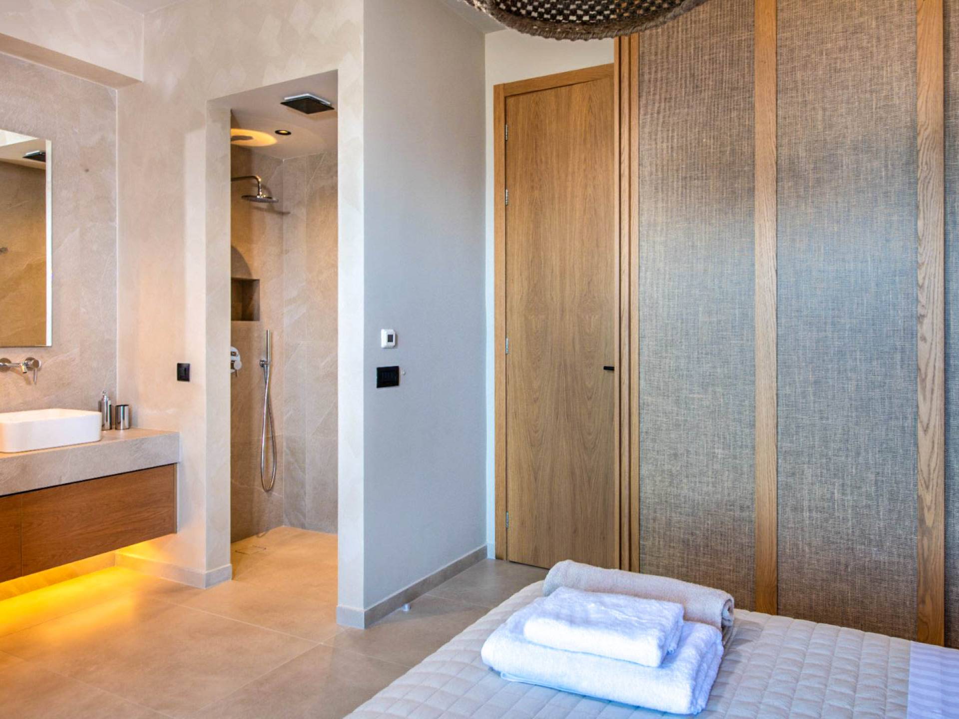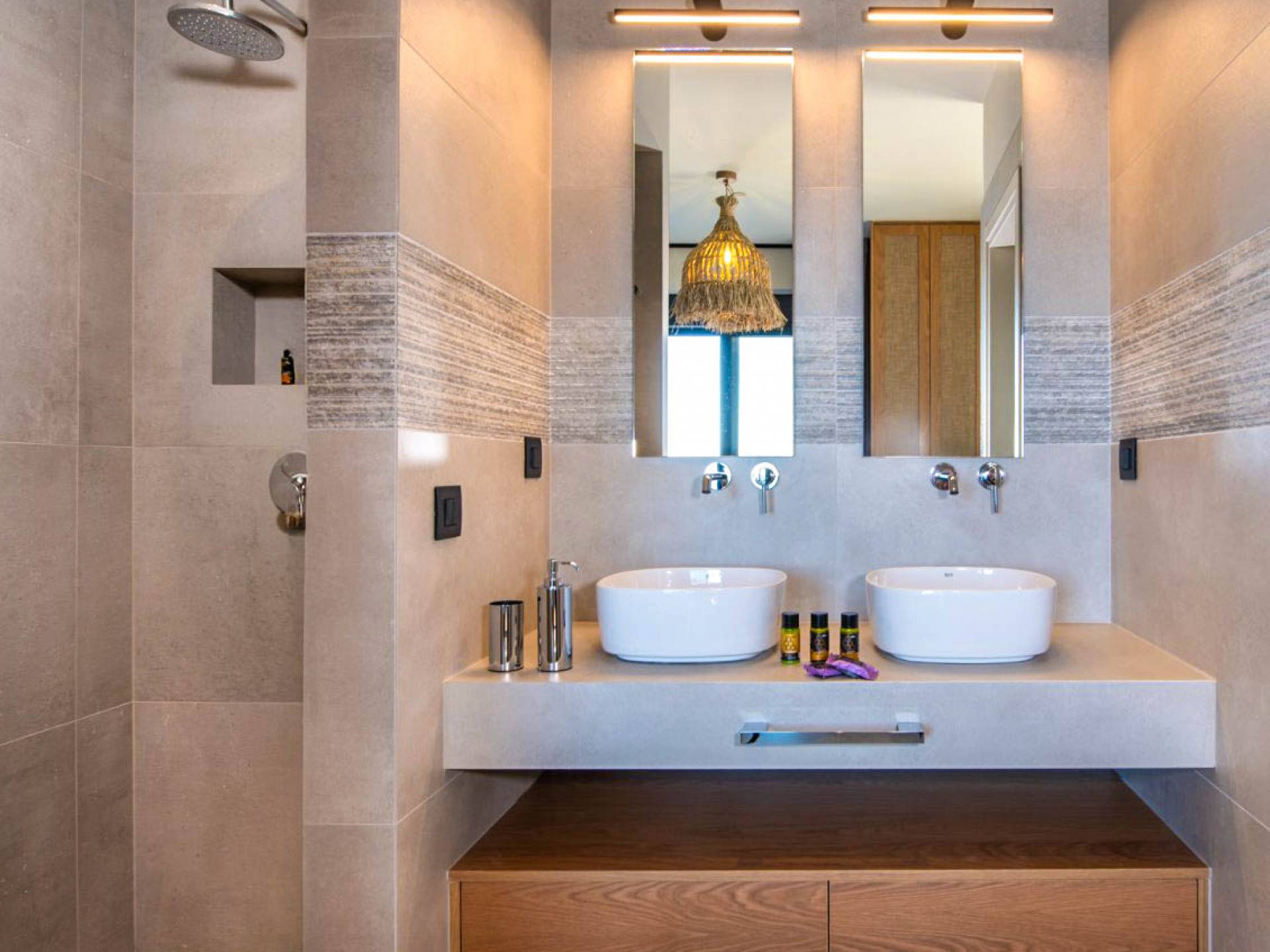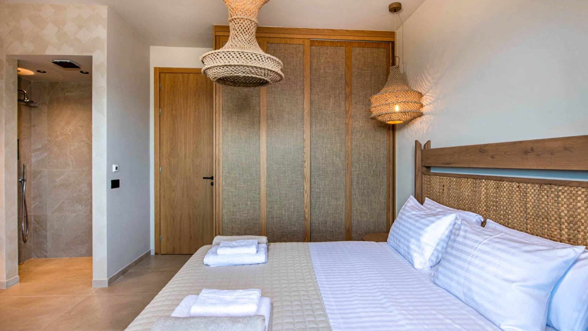 Το κατάλυμα διαθέτει τέσσερα κομψά διακοσμημένα υπνοδωμάτια με ιδιωτικό μπάνιο, το καθένα προσεκτικά σχεδιασμένο με μοντέρνα φινιρίσματα και εξαιρετική άνεση. Κάθε δωμάτιο παρέχει πλήρη ιδιωτικότητα, καθιστώντας τη βίλα ιδανική επιλογή για οικογένειες, ζευγάρια ή παρέες που αναζητούν μια εξαιρετική εμπειρία διακοπών.