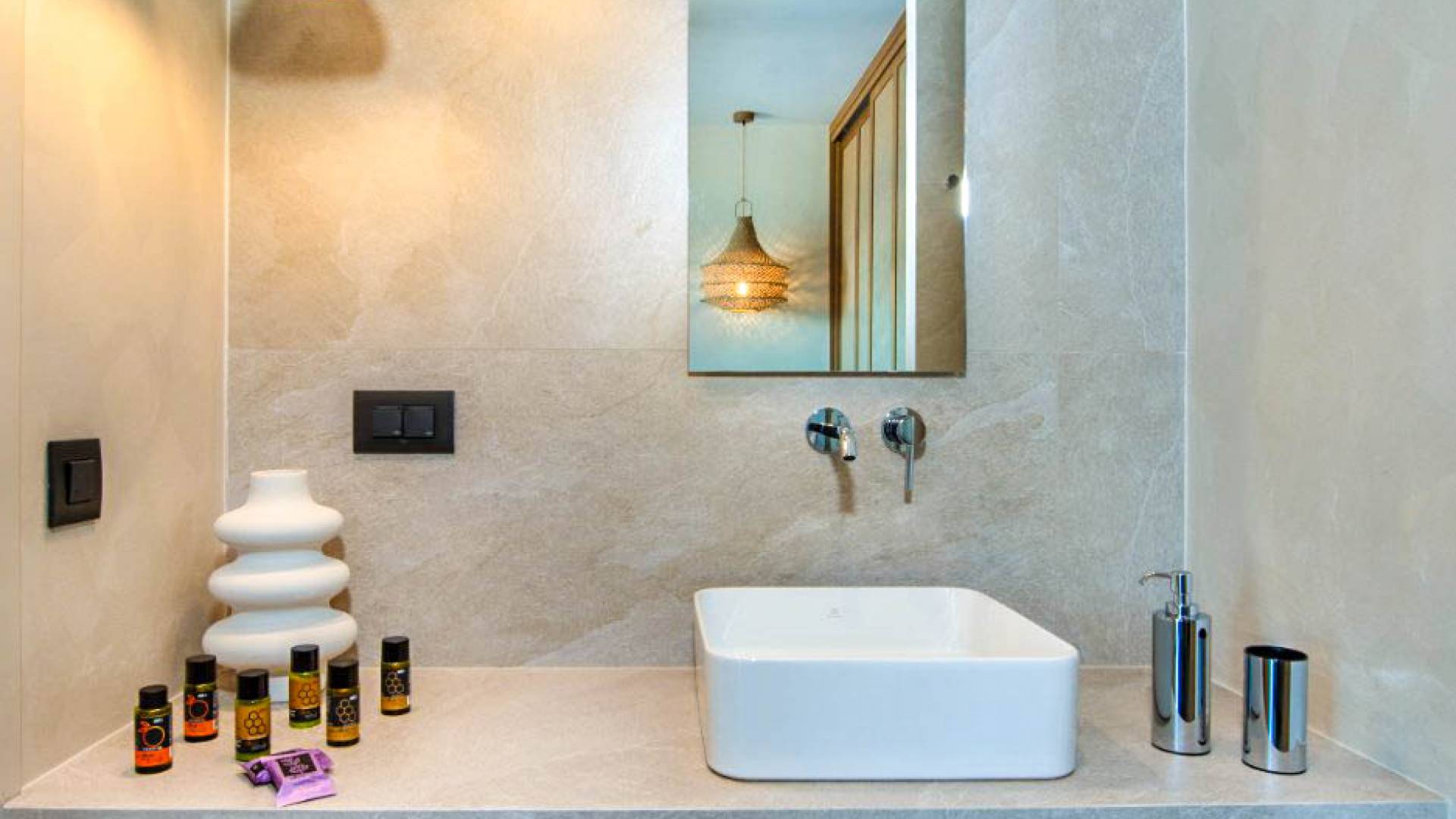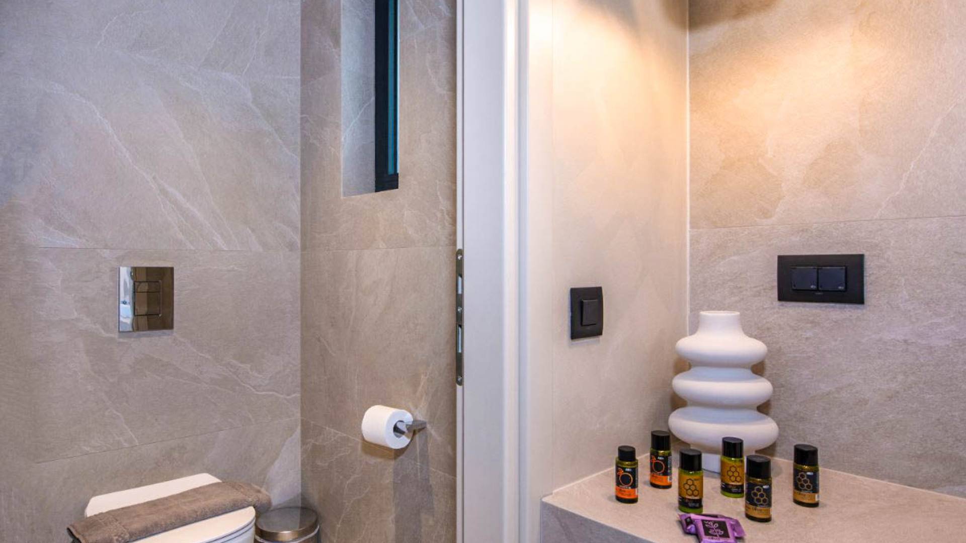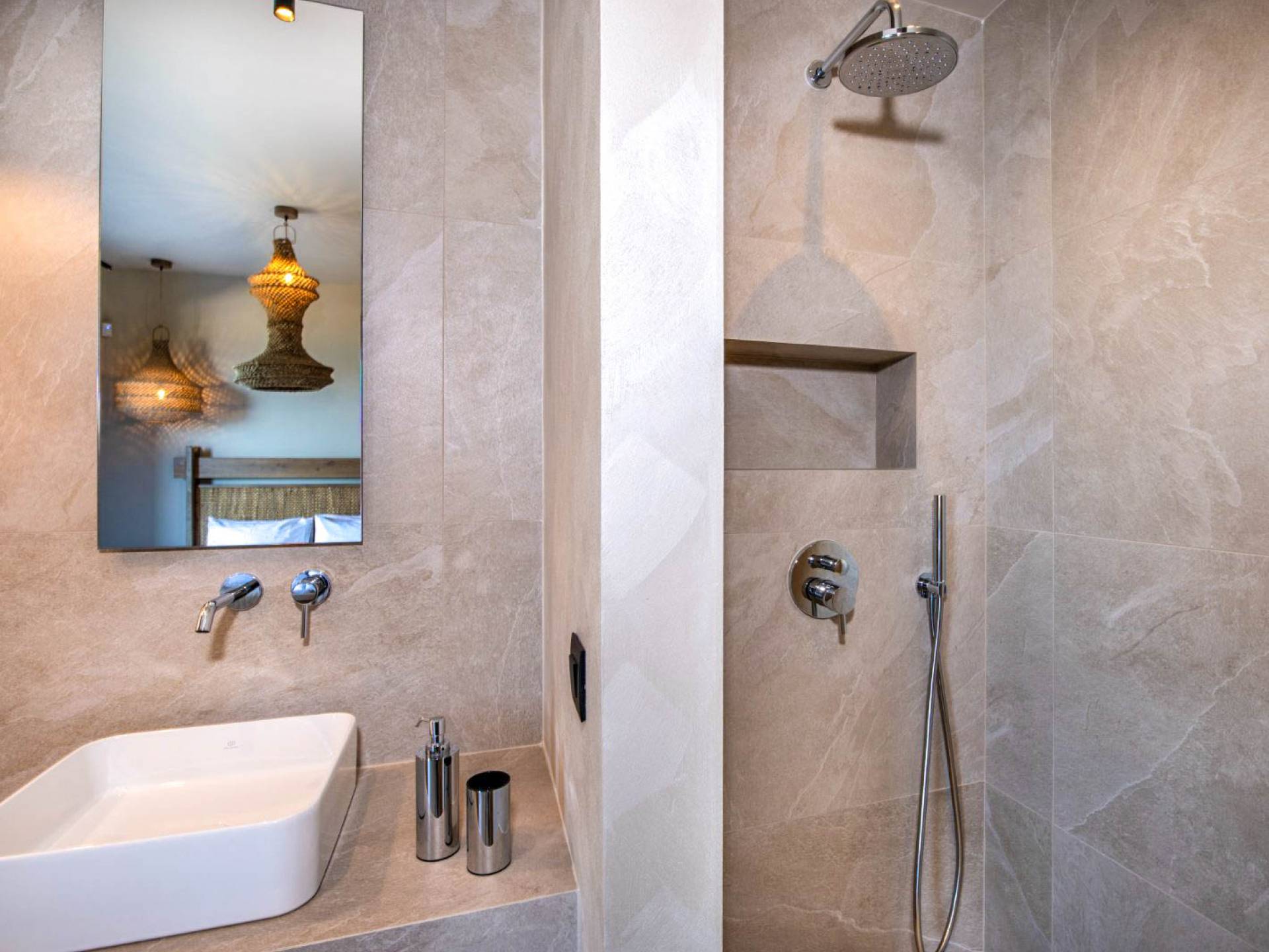 Το κατάλυμα διαθέτει τέσσερα κομψά διακοσμημένα υπνοδωμάτια με ιδιωτικό μπάνιο, το καθένα προσεκτικά σχεδιασμένο με μοντέρνα φινιρίσματα και εξαιρετική άνεση. Κάθε δωμάτιο παρέχει πλήρη ιδιωτικότητα, καθιστώντας τη βίλα ιδανική επιλογή για οικογένειες, ζευγάρια ή παρέες που αναζητούν μια εξαιρετική εμπειρία διακοπών.