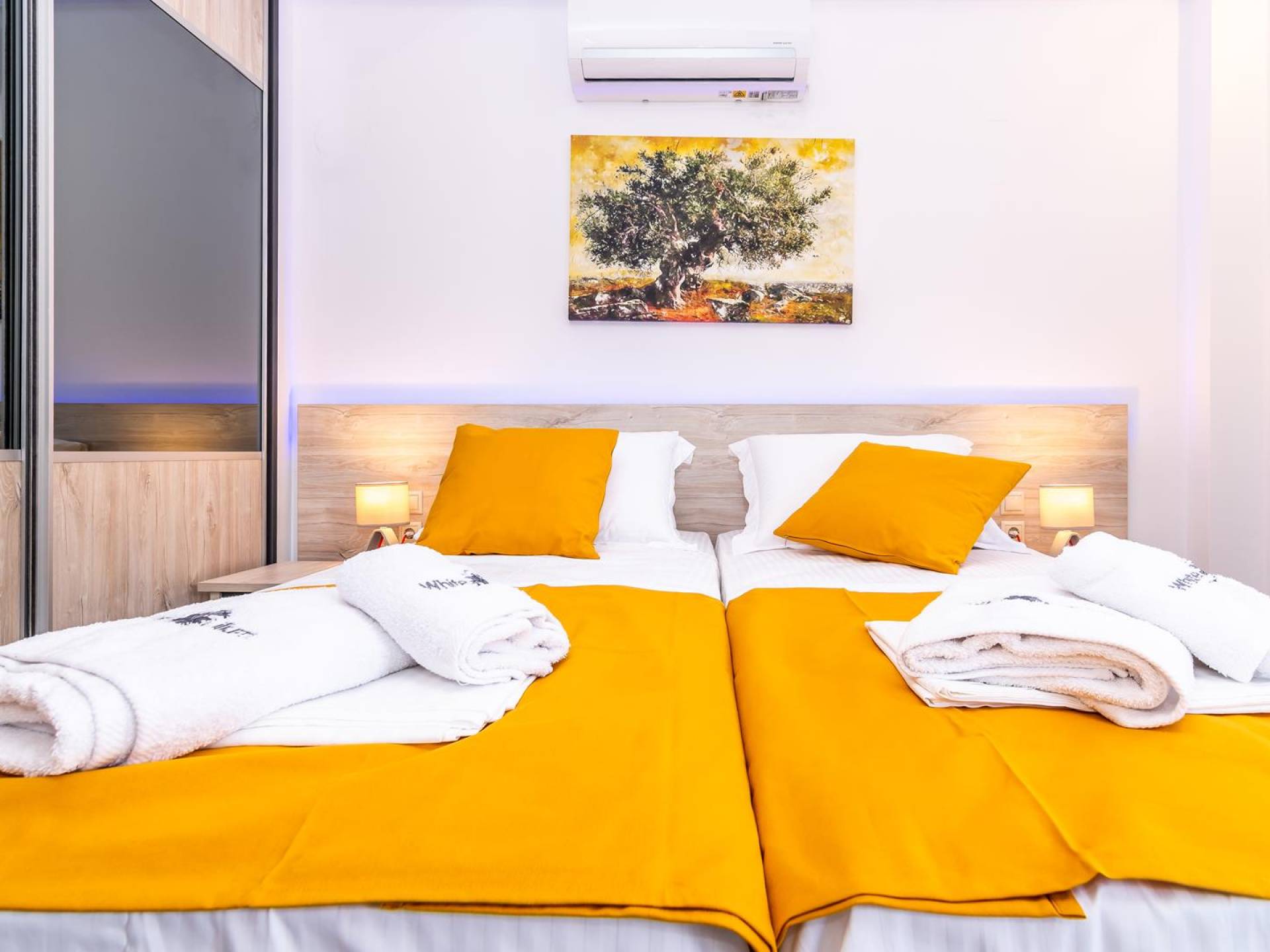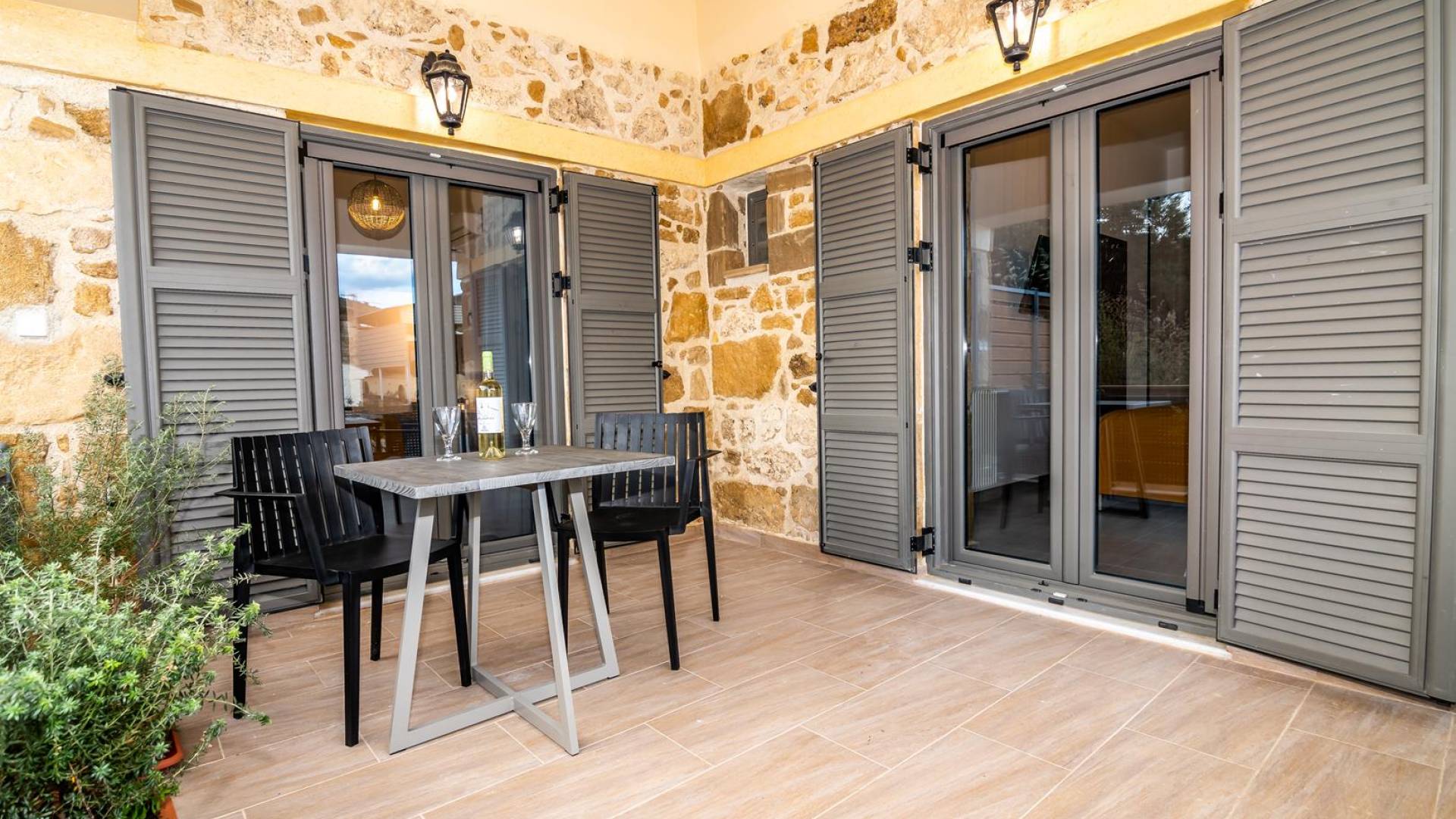 Η κύρια κατασκευή είναι χτισμένη από πέτρα, ως συνδυασμός μοντέρνας και παραδοσιακής αρχιτεκτονικής. Διαθέτει δύο υπνοδωμάτια με ιδιωτικό μπάνιο, σαλόνι και κουζίνα. Και τα δύο υπνοδωμάτια είναι εξοπλισμένα με ανεξάρτητες μονάδες κλιματισμού, smart τηλεοράσεις 42 ιντσών με επίπεδη οθόνη με σύνδεση στο internet και 3 δορυφορικές επιλογές (Hotbird, Astra). Υπάρχουν επίσης χρηματοκιβώτια, ντουλάπες, καθρέφτες και μικρά τραπέζια γραφείου με πρόσβαση Ethernet. Και τα δύο παρέχουν πρόσβαση σε ένα κοινό μπαλκόνι με θέα στο δρόμο. Το ένα από τα υπνοδωμάτια έχει ένα queen-size κρεβάτι (160 cm x 205 cm) και το άλλο έχει δύο μονά κρεβάτια (90 cm x 205 cm) που μπορούν επίσης να τακτοποιηθούν σε διπλό, όλα με κομοδίνα.