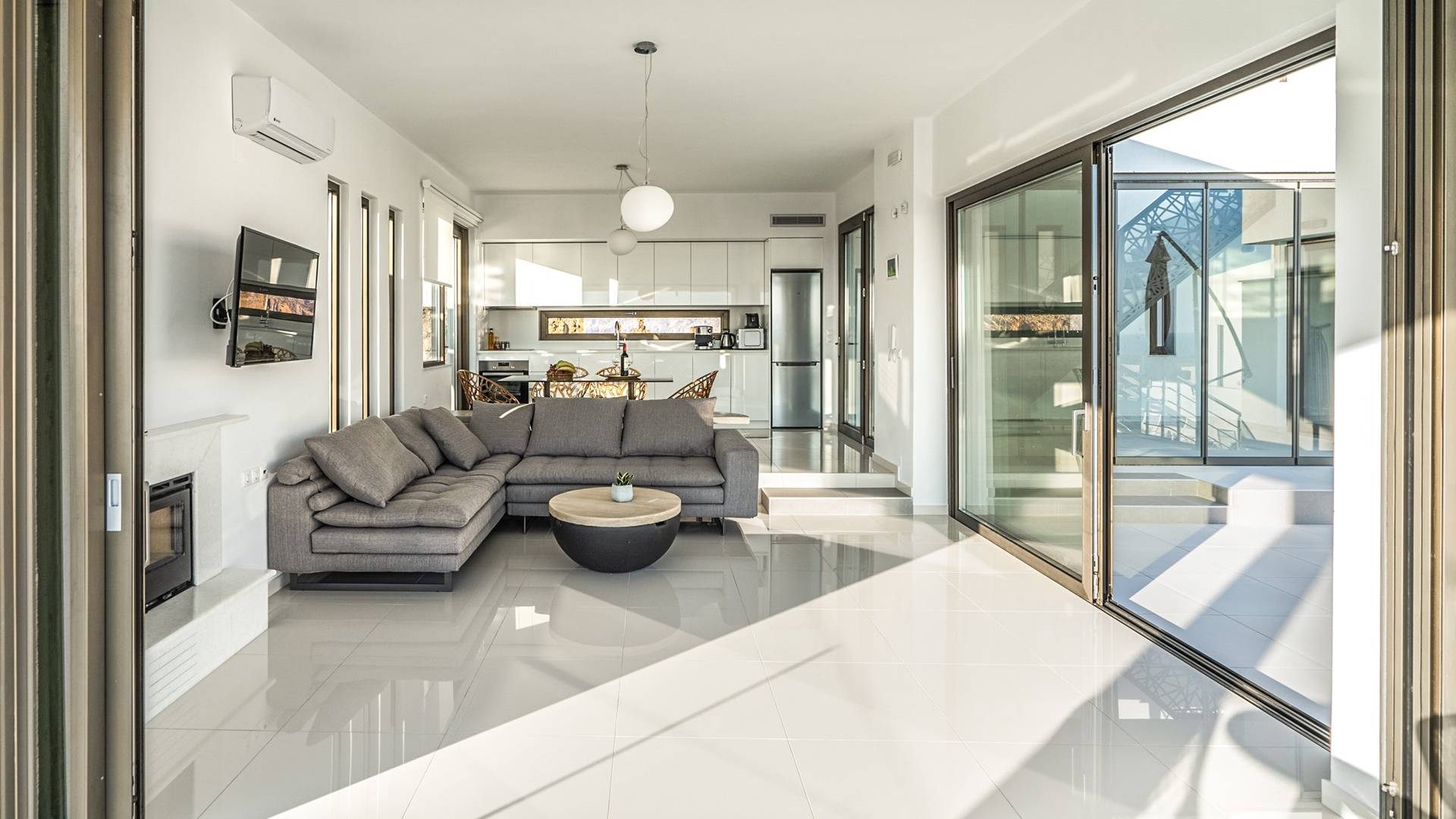 - Το ανασυρόμενο γυάλινο τοίχο ανοίγει σε ιδιωτικές βεράντες και πισίνες