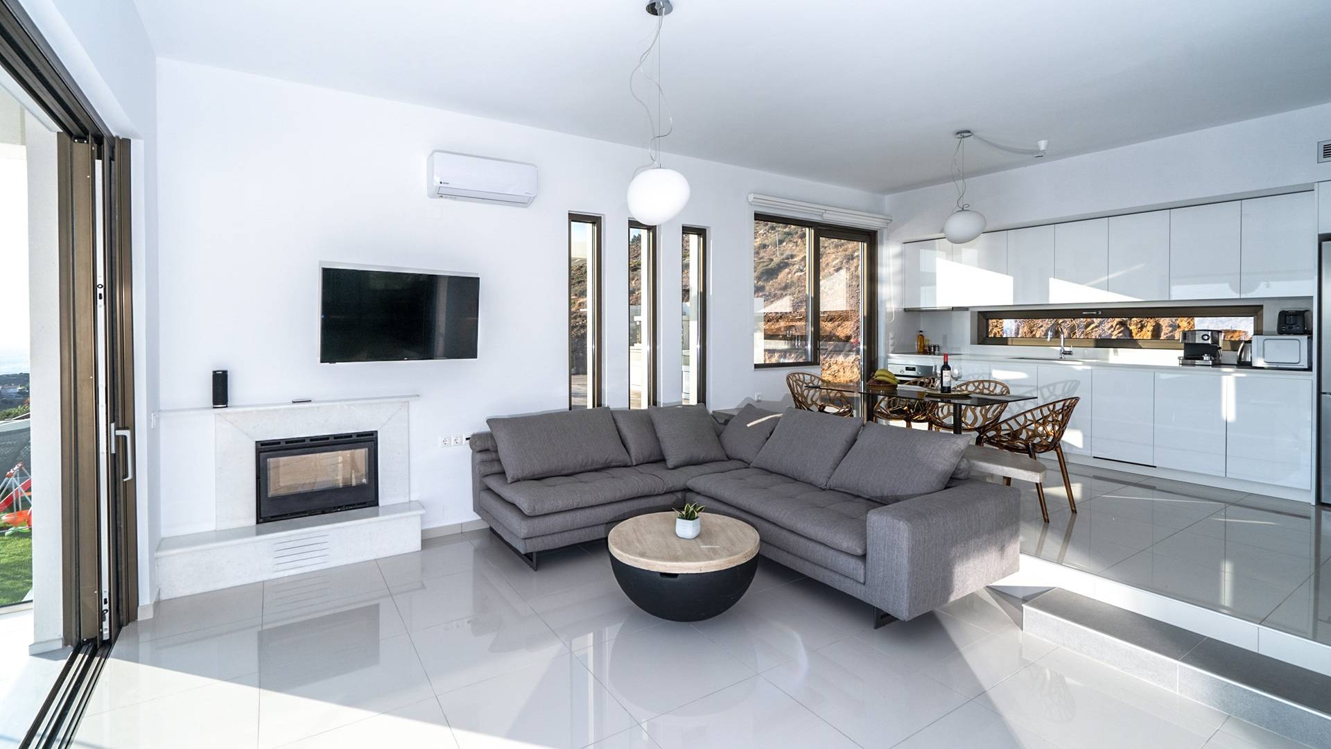- Χώρος καθιστικού ανοιχτού σχεδίου με άνετο τζάκι και δορυφορική τηλεόραση