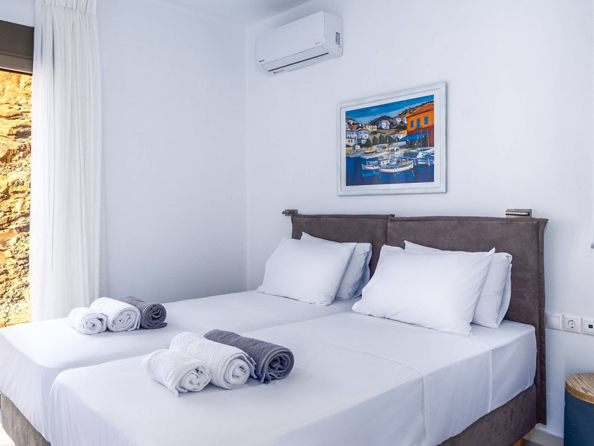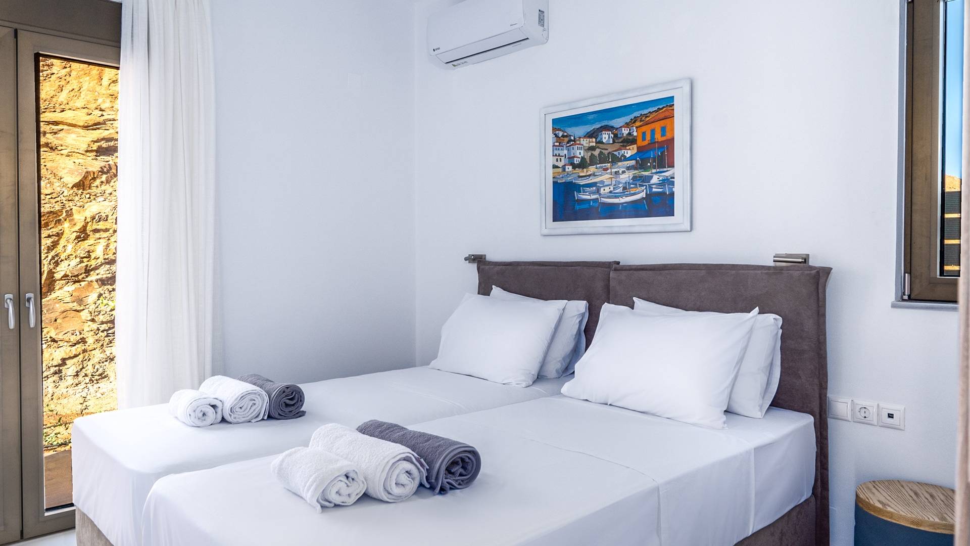 - 3 κομψά υπνοδωμάτια με βελούδινα κρεβάτια, μπάνια en-suite και θέα στη θάλασσα