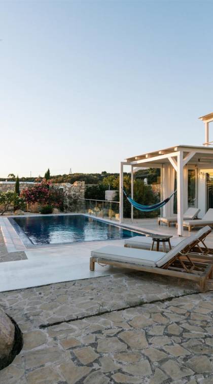 - Direct walking path to Komos Beach – wild, sandy, and rich in archaeological significance