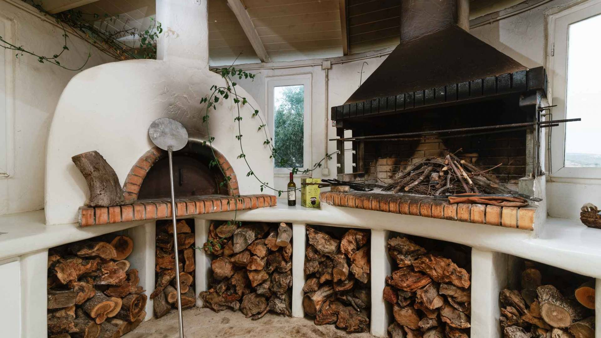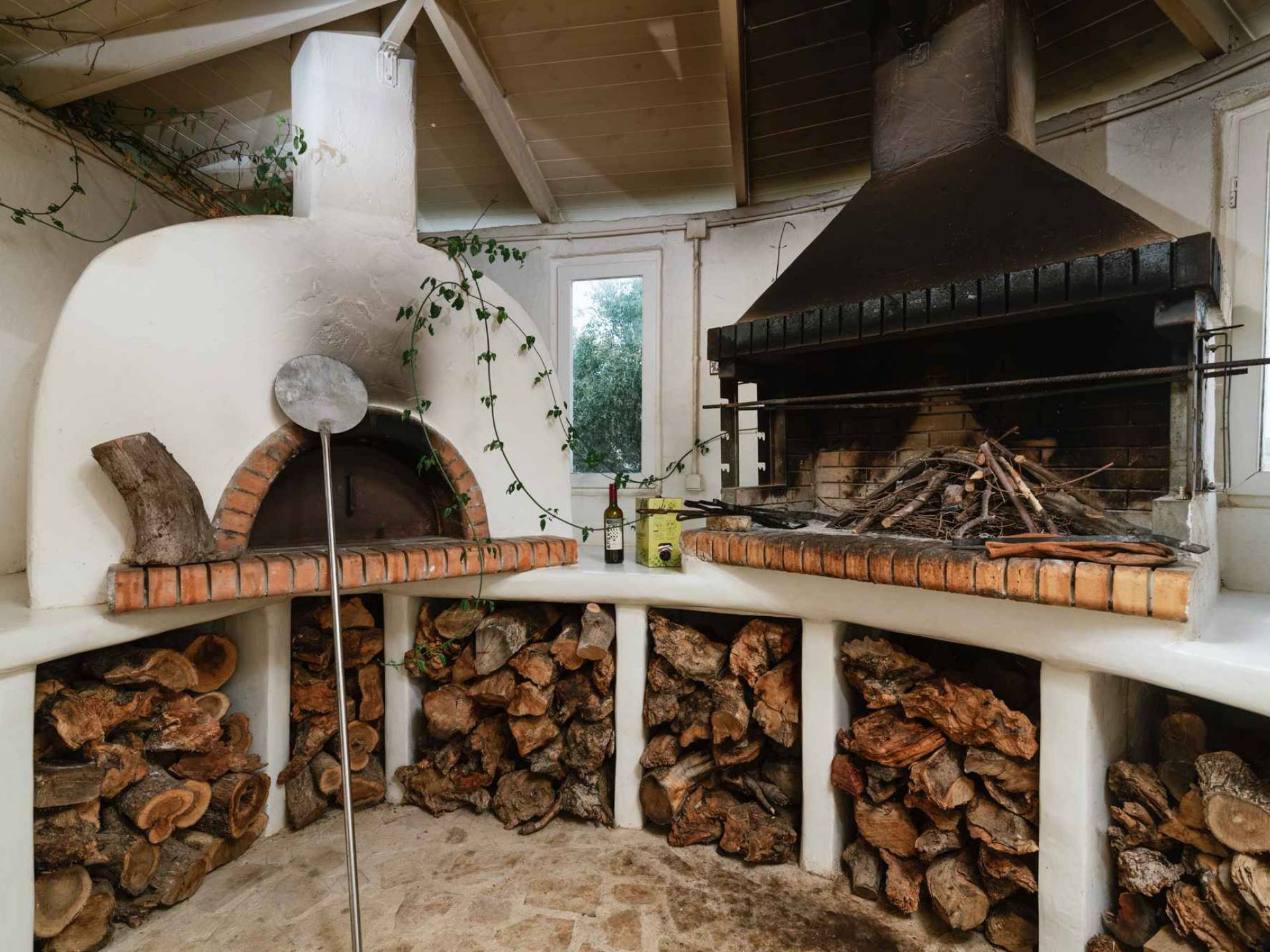 - BBQ, 5-burner gas stove, wood oven, fireplace, and coffee machine