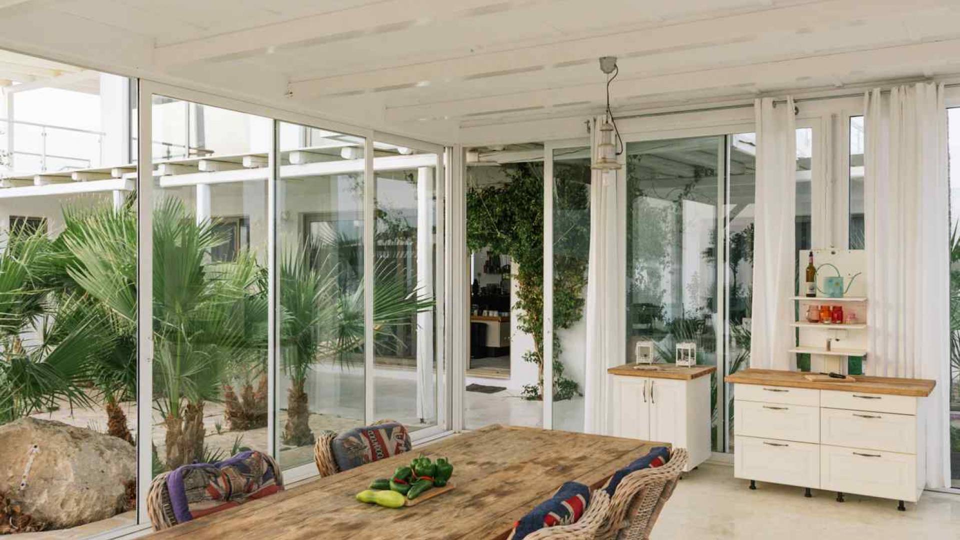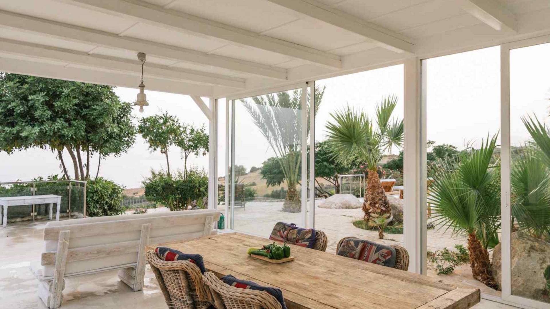 - A glass pavilion with a 3.5m dining table, perfect for al fresco meals and magical sunsets