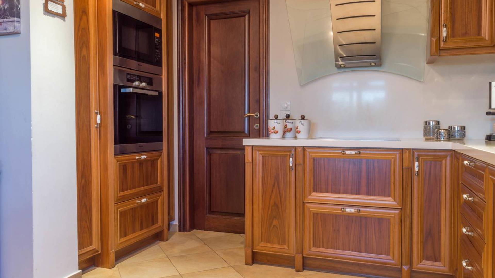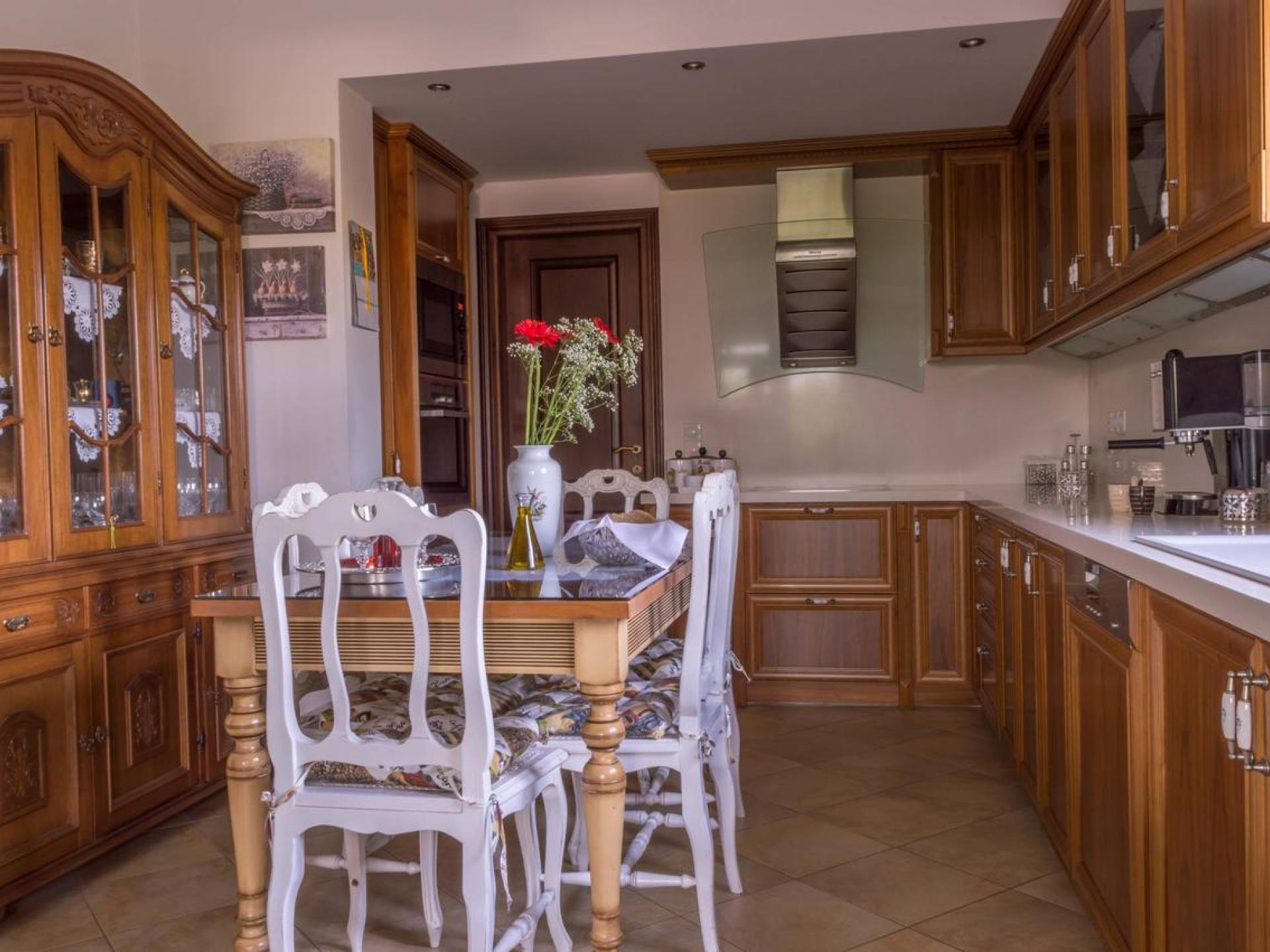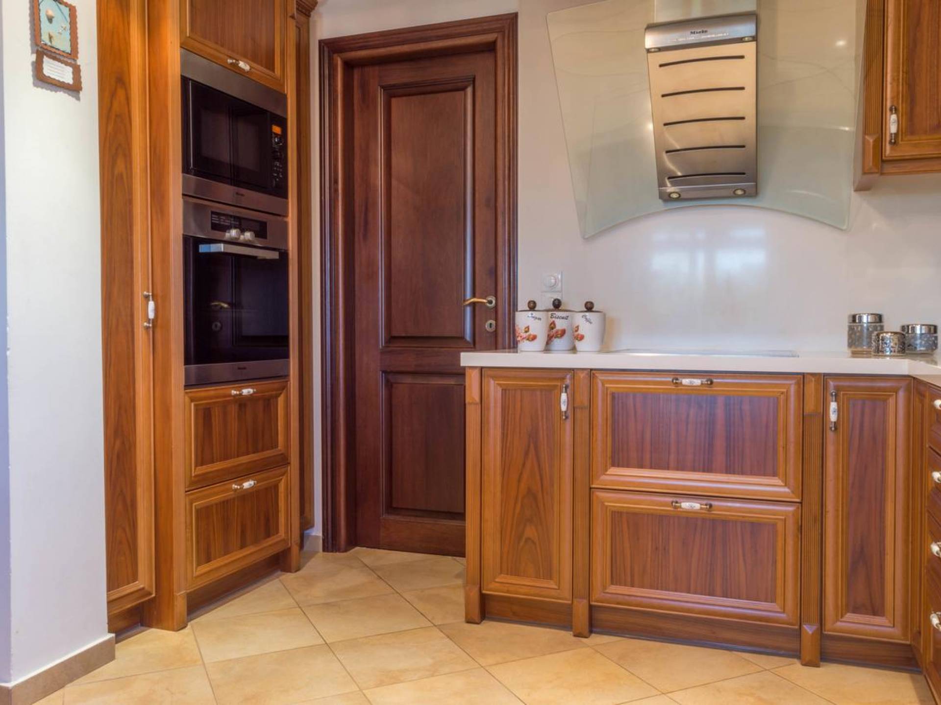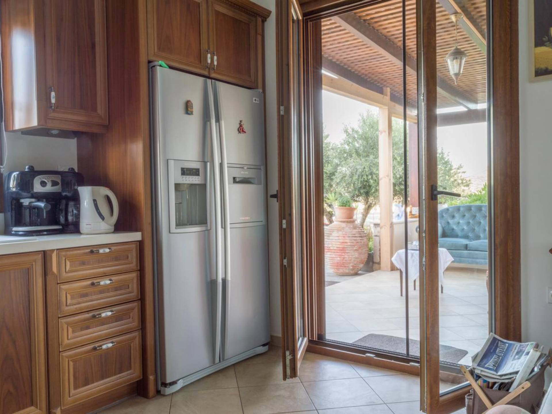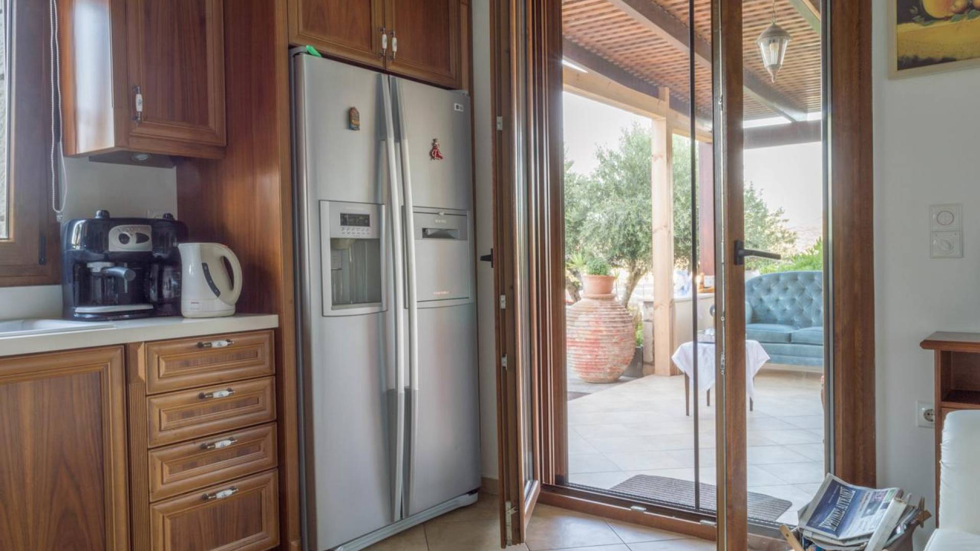 Χτισμένη στην κορυφή ενός ιδιωτικού λόφου, η πολυτελής βίλα μας προσφέρει υπέροχη πανοραμική θέα στο Αιγαίο πέλαγος και τα βουνά του Νότου και της Δύσης. Μπορείτε να απολαύσετε την όμορφη θέα στην παραλία, τον μεγάλο κήπο, την πισίνα και το υπέροχο περιβάλλον, από τις 2 μεγάλες βεράντες στον πρώτο όροφο και 2 μικρότερα μπαλκόνια στον δεύτερο όροφο. Το πλήρως εξοπλισμένο σπίτι βρίσκεται στον δεύτερο και τον τρίτο όροφο, που συνδέεται με ένα σετ ξύλινων σκαλοπατιών. Το μεγαλύτερο μέρος του δαπέδου είναι ξύλινο και περιλαμβάνει κλασικά έπιπλα υψηλής ποιότητας. Στον δεύτερο όροφο υπάρχουν 2 μεγάλα σαλόνια με τζάκι, τραπεζαρία, πλήρως εξοπλισμένη κουζίνα με όλες τις σύγχρονες ανέσεις, αίθουσα μελέτης με ένα μονό κρεβάτι και WC. Ο τρίτος όροφος διαθέτει 3 υπνοδωμάτια, δύο εκ των οποίων προσφέρουν μπαλκόνια με υπέροχη θέα. Υπάρχουν δύο μπάνια με μπανιέρες σε αυτόν τον όροφο, το ένα από αυτά είναι μέρος ενός ξεχωριστού διαμερίσματος (με το κυρίως υπνοδωμάτιο), που προσφέρει επίσης υδρομασάζ (τζακούζι).
