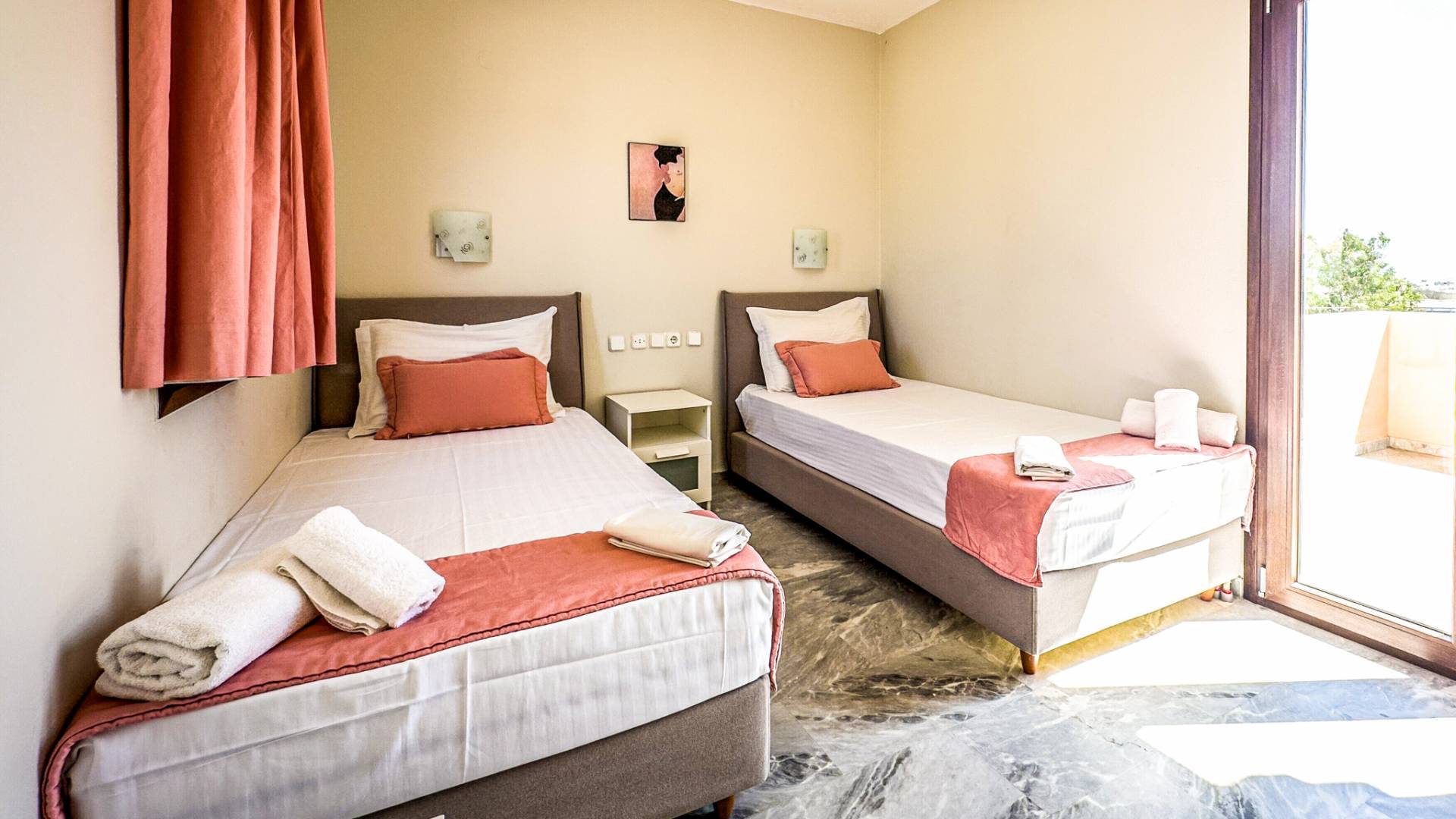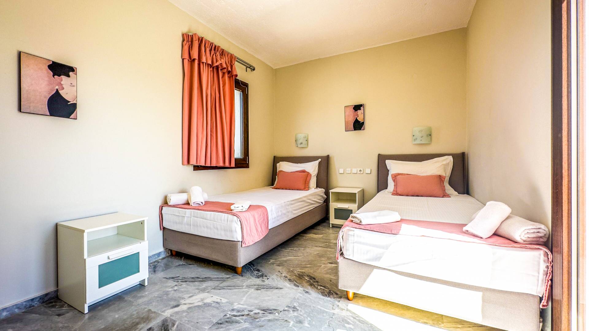 Προσφέρει 2 υπνοδωμάτια: Ένα υπνοδωμάτιο με κρεβάτι queen size, 1 υπνοδωμάτιο με δύο μονά κρεβάτια.