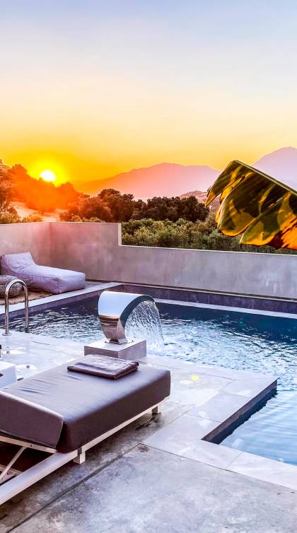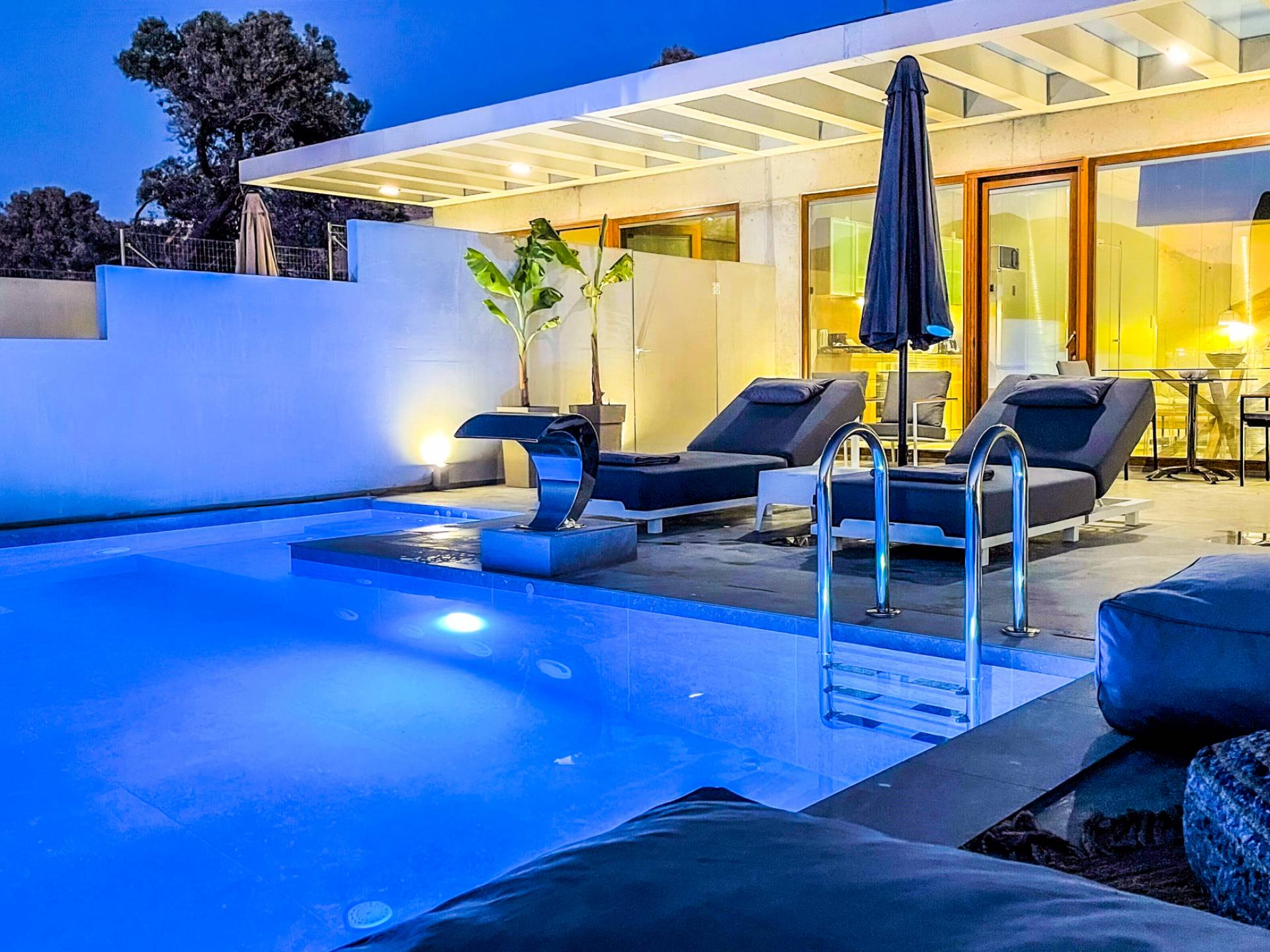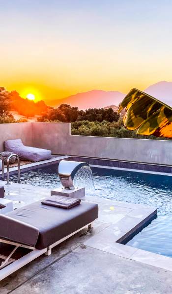 Marnos Junior Villas Crete is an exclusive luxury complex of four twin villas, each designed with identical high-end features and attention to detail. Every villa offers an elegant bedroom with ensuite bathroom, a stylish open-plan living area, and a private pool, all complemented by stunning views. Thoughtfully crafted for comfort and privacy, the villas provide an ideal setting for a refined and relaxing Cretan escape.