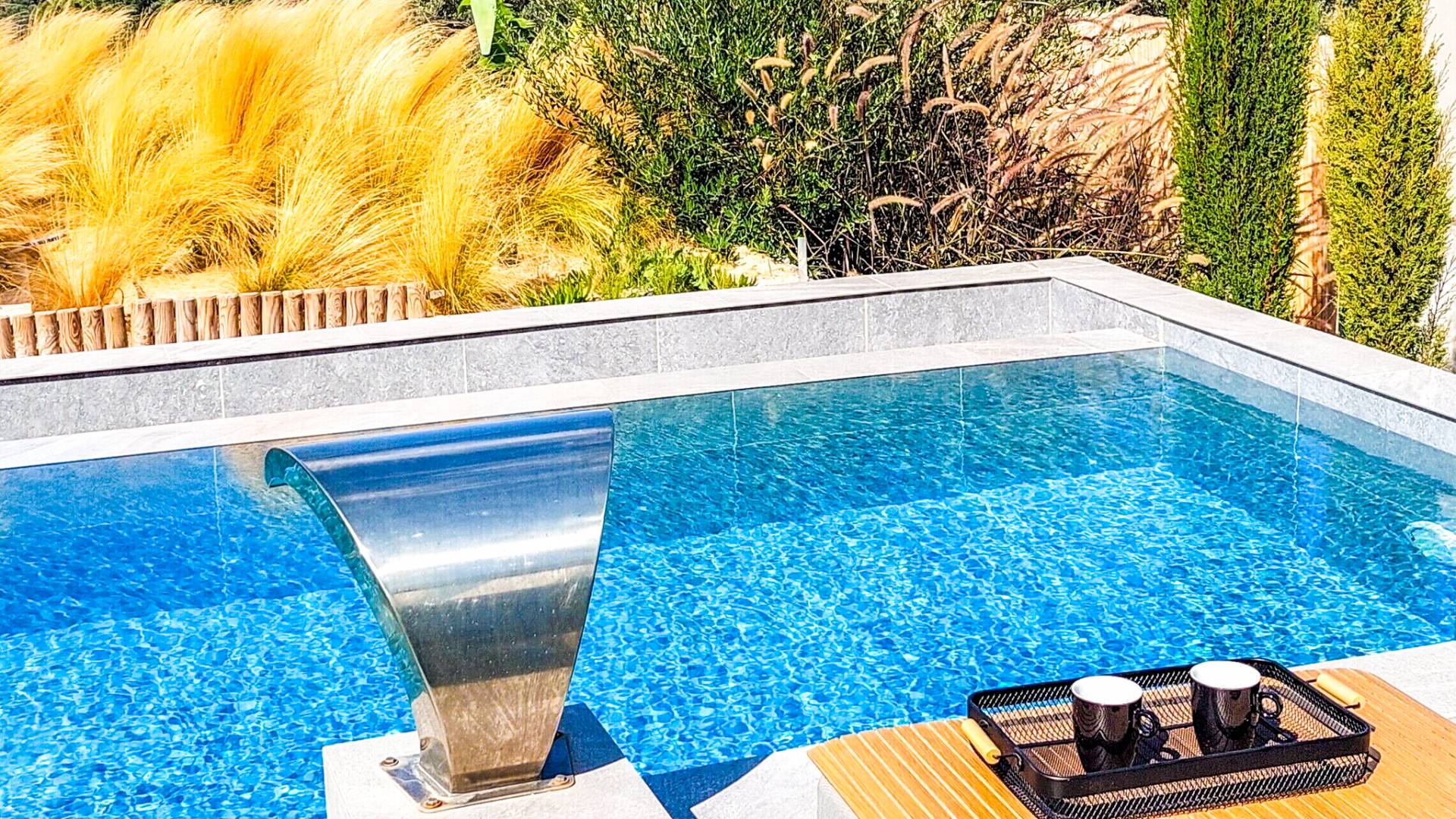 - 20 m² Private pool with hydro massage jets and a waterfall jet