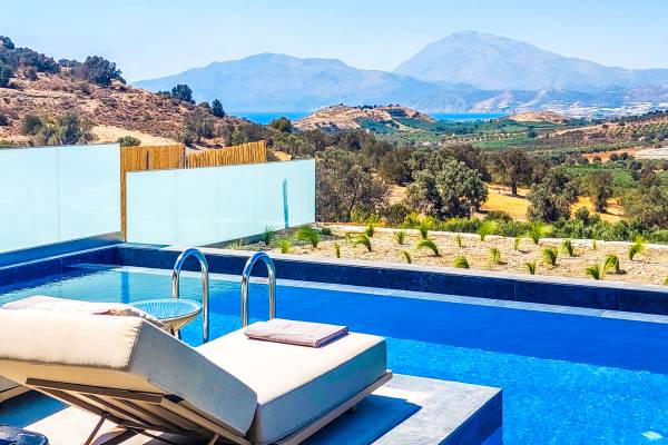 Marnos Superior Villas Crete is an exclusive luxury complex of five twin villas, each designed with identical high-end features and attention to detail. Every villa offers two elegant bedrooms with ensuite bathrooms, a stylish open-plan living area, and a private pool, all complemented by stunning views. Thoughtfully crafted for comfort and privacy, the villas provide an ideal setting for a refined and relaxing Cretan escape.