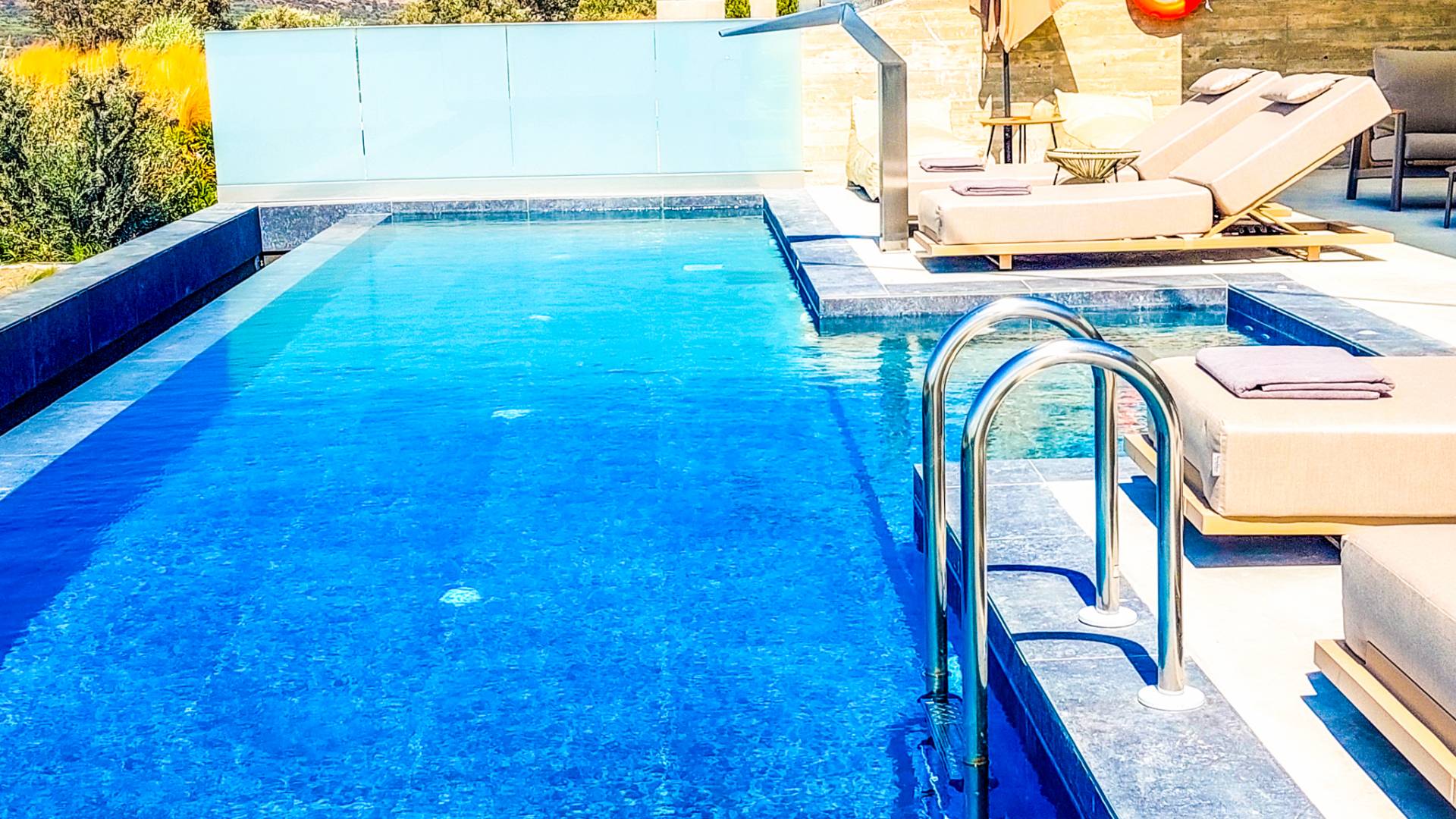 - 45 m² Private infinity pool with hydro massage jets and a waterfall jet