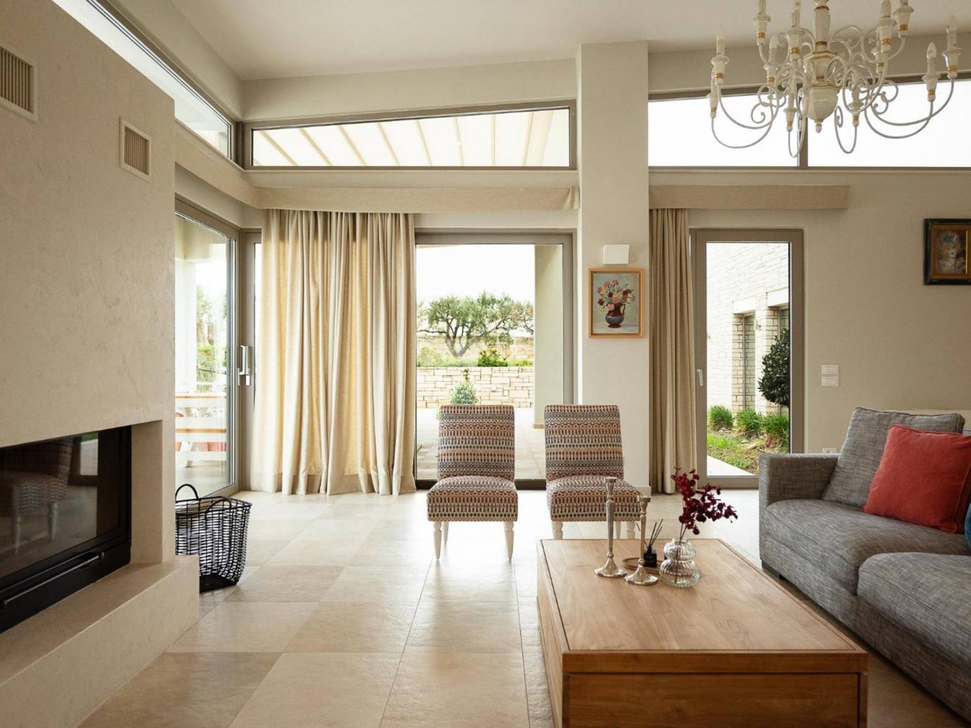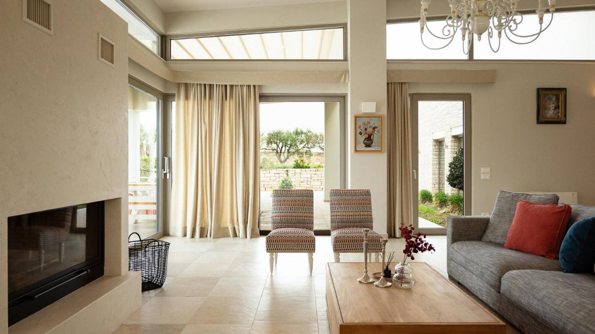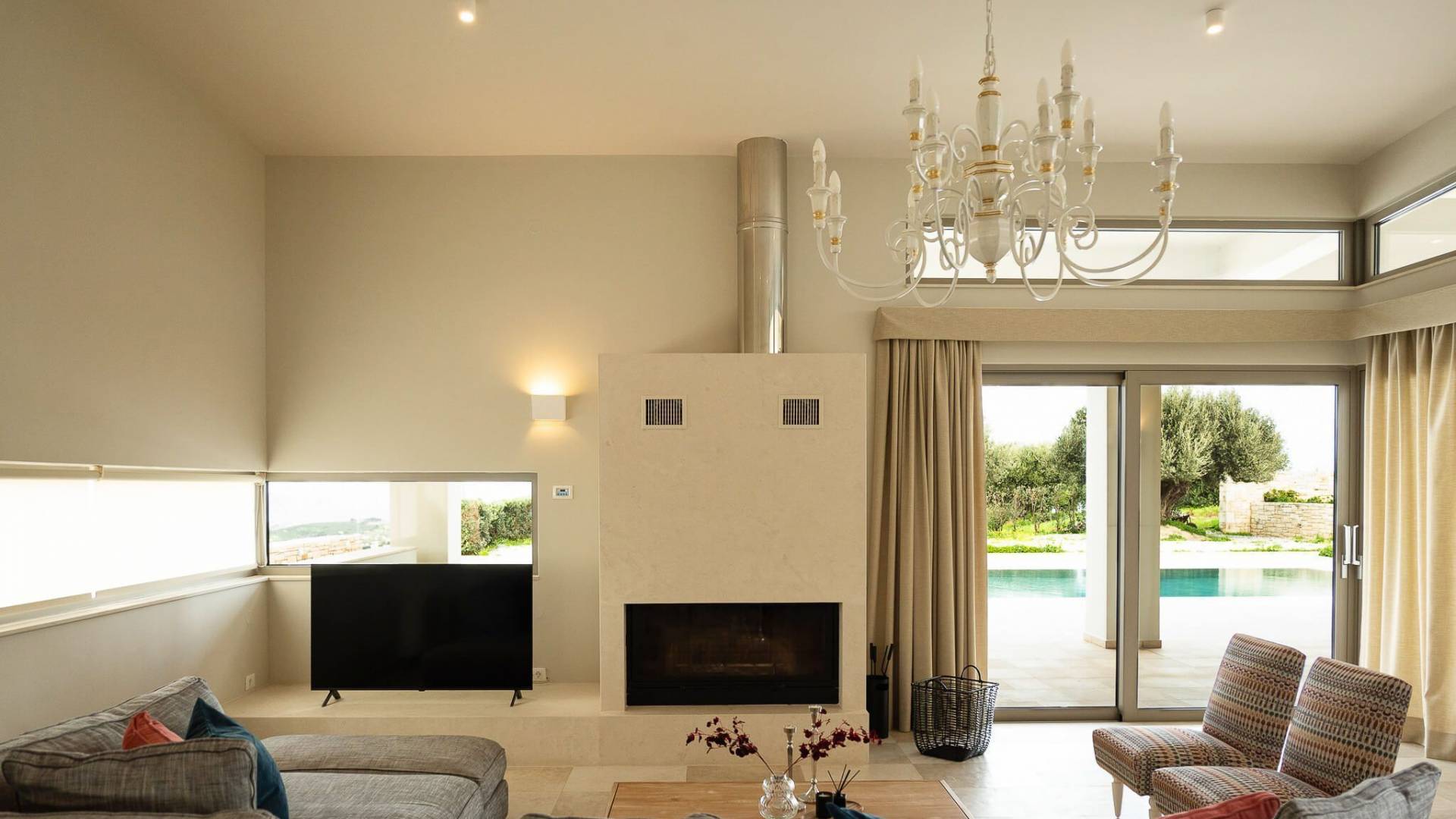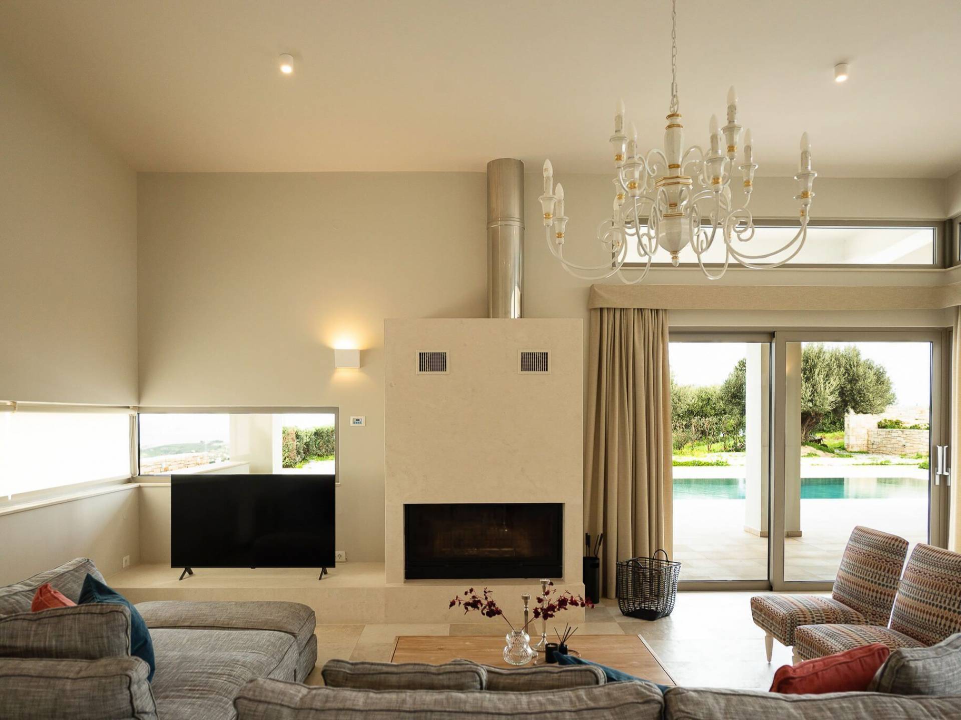 Απολαύστε τη μαγευτική θέα στη Μεσόγειο Θάλασσα και τα μαγευτικά βουνά από κάθε γωνιά της βίλας που κόβουν την ανάσα. Οι ευρύχωροι χώροι του καθιστικού διαθέτουν γήινους τόνους, πολυτελή επίπλωση και ένα άνετο τζάκι, ιδανικό για συγκέντρωση τα πιο δροσερά βράδια.