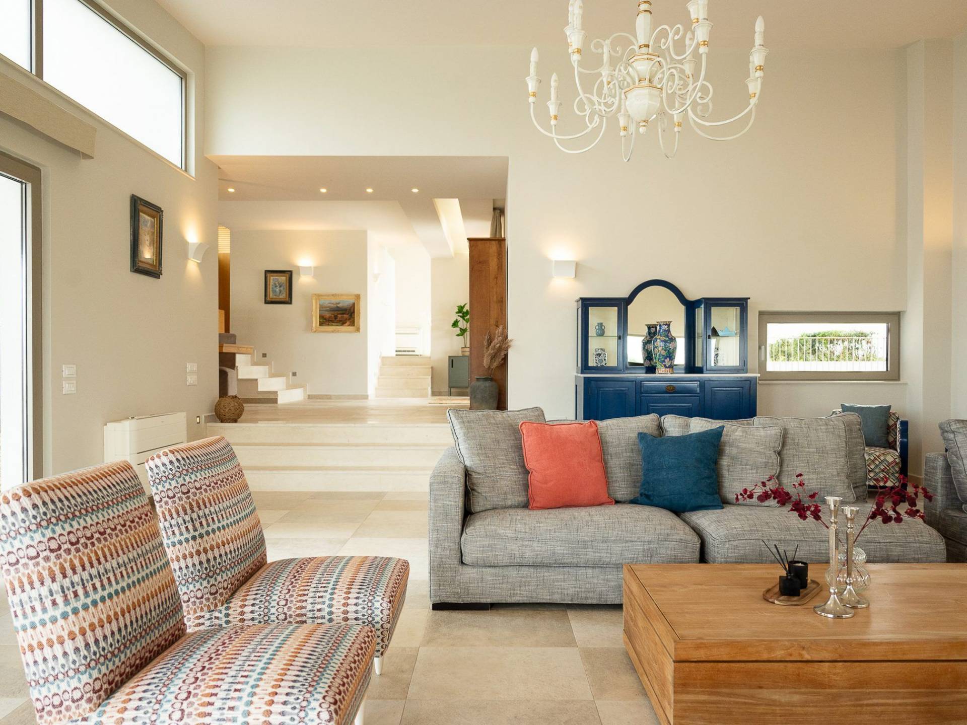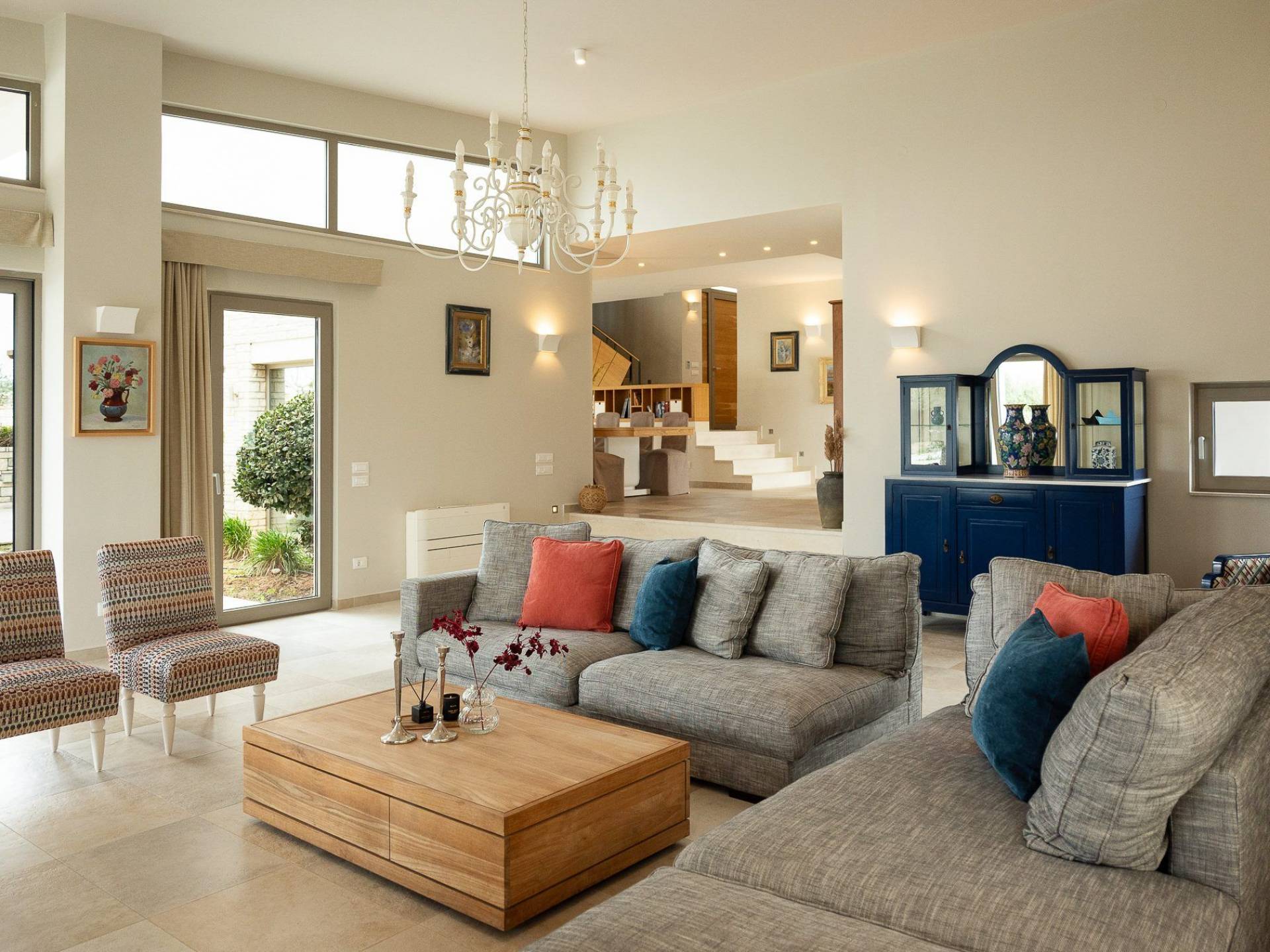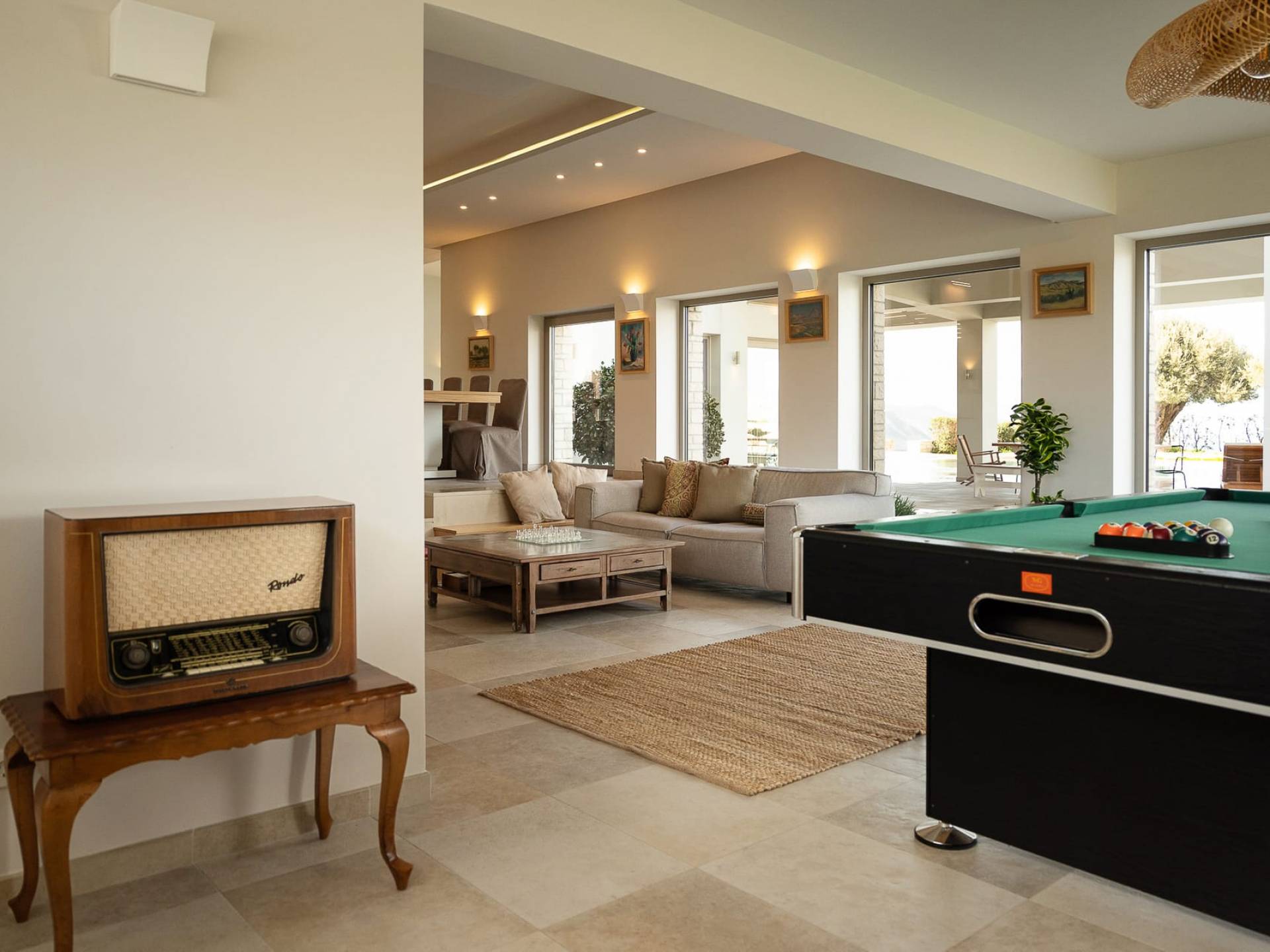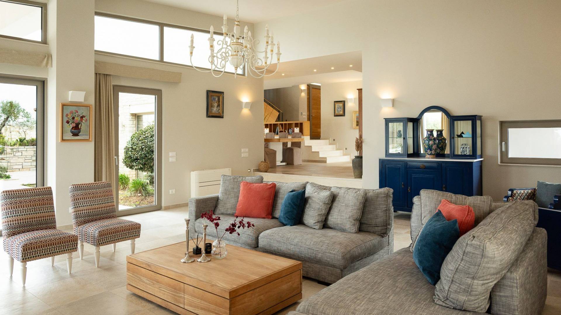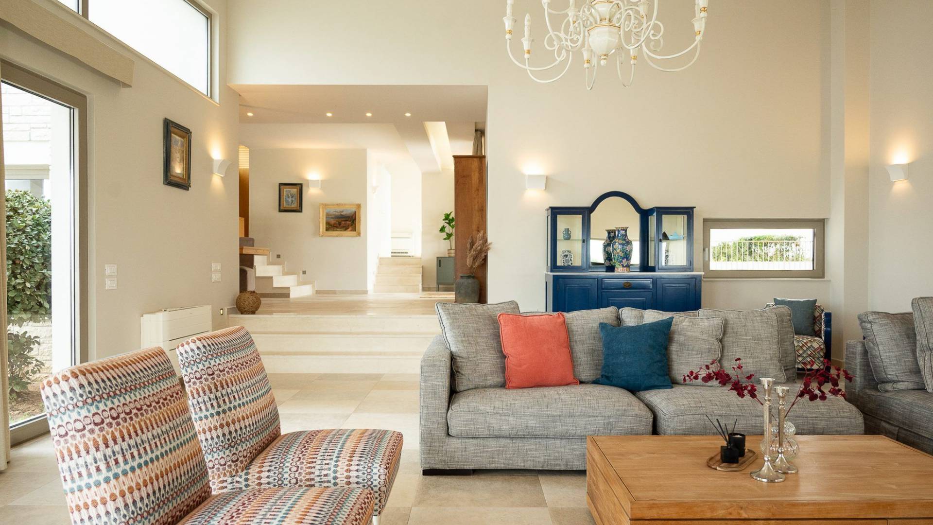 Απολαύστε τη μαγευτική θέα στη Μεσόγειο Θάλασσα και τα μαγευτικά βουνά από κάθε γωνιά της βίλας που κόβουν την ανάσα. Οι ευρύχωροι χώροι του καθιστικού διαθέτουν γήινους τόνους, πολυτελή επίπλωση και ένα άνετο τζάκι, ιδανικό για συγκέντρωση τα πιο δροσερά βράδια.