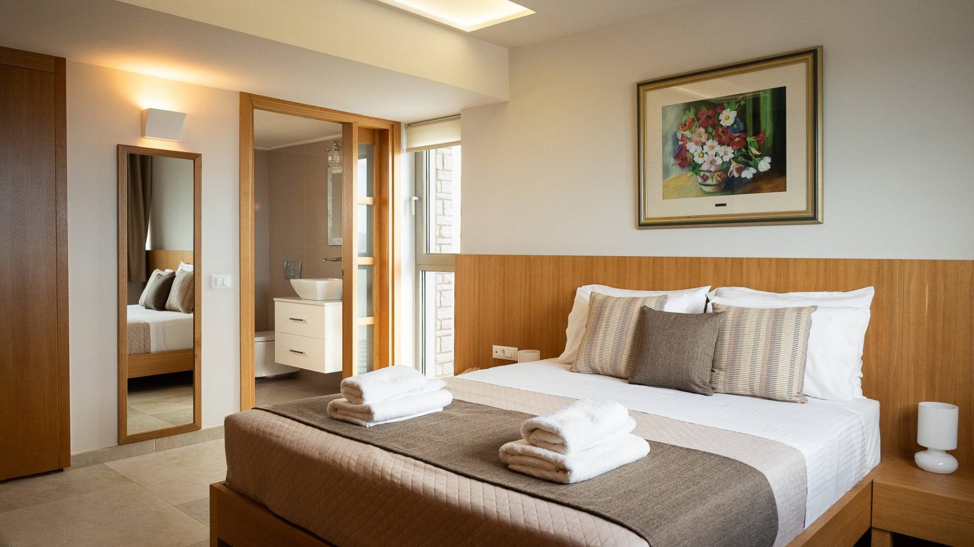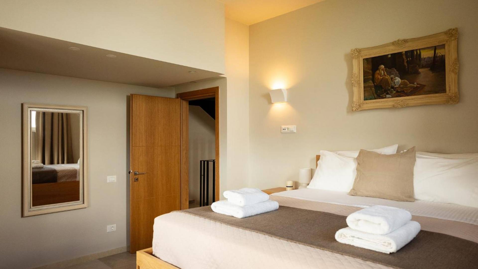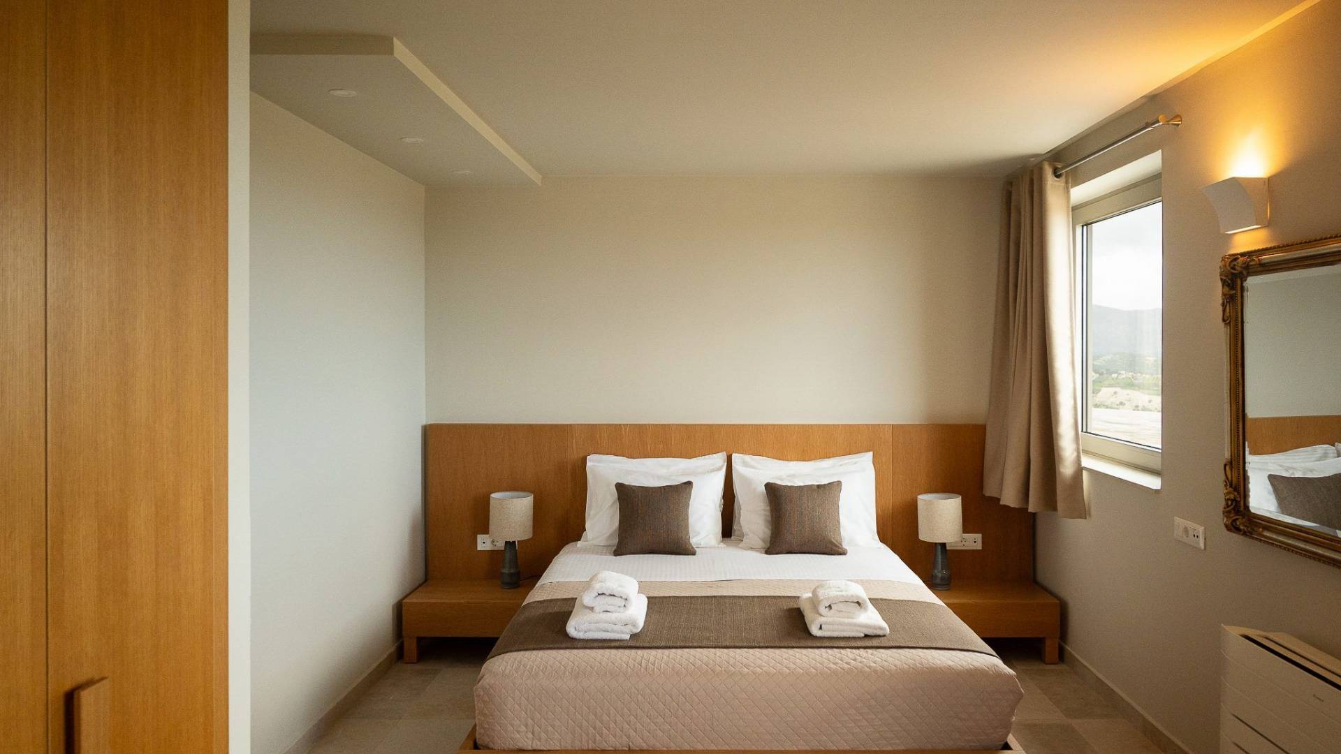 Κάθε κρεβατοκάμαρα έχει σχεδιαστεί προσεκτικά για απόλυτη άνεση, με βελούδινα κλινοσκεπάσματα, κομψή διακόσμηση και μεγάλα παράθυρα που πλαισιώνουν εκπληκτική θέα. Ξεκουραστείτε σε ένα ήρεμο περιβάλλον σχεδιασμένο για έναν τέλειο βραδινό ύπνο.