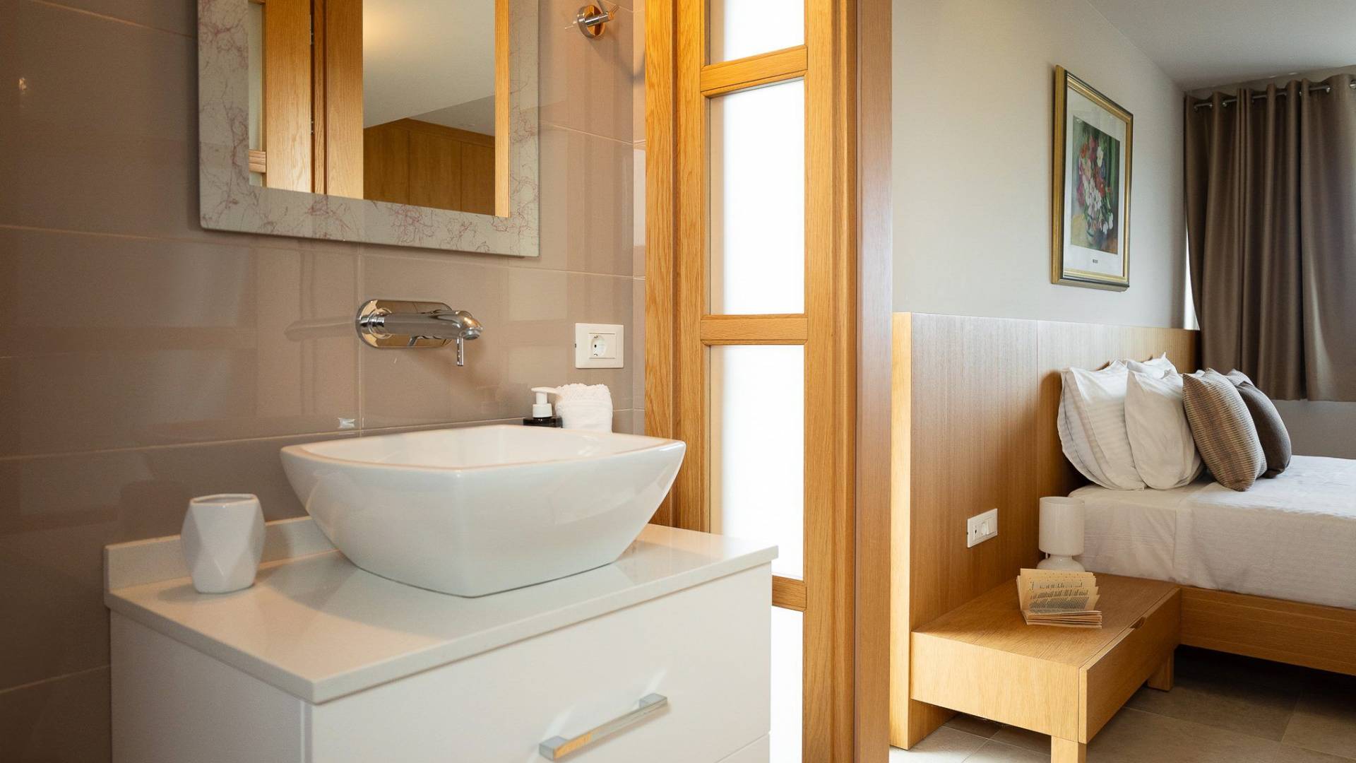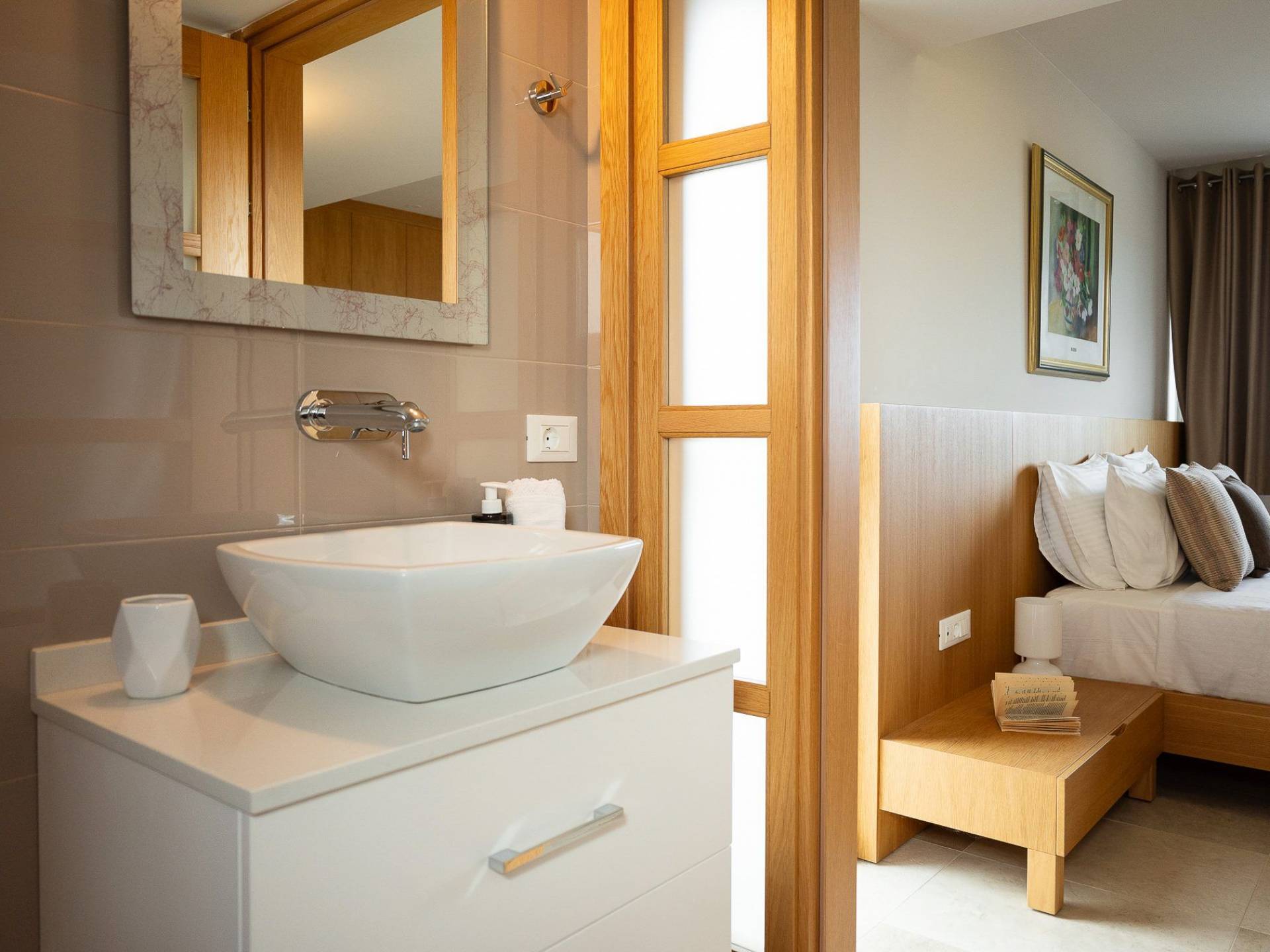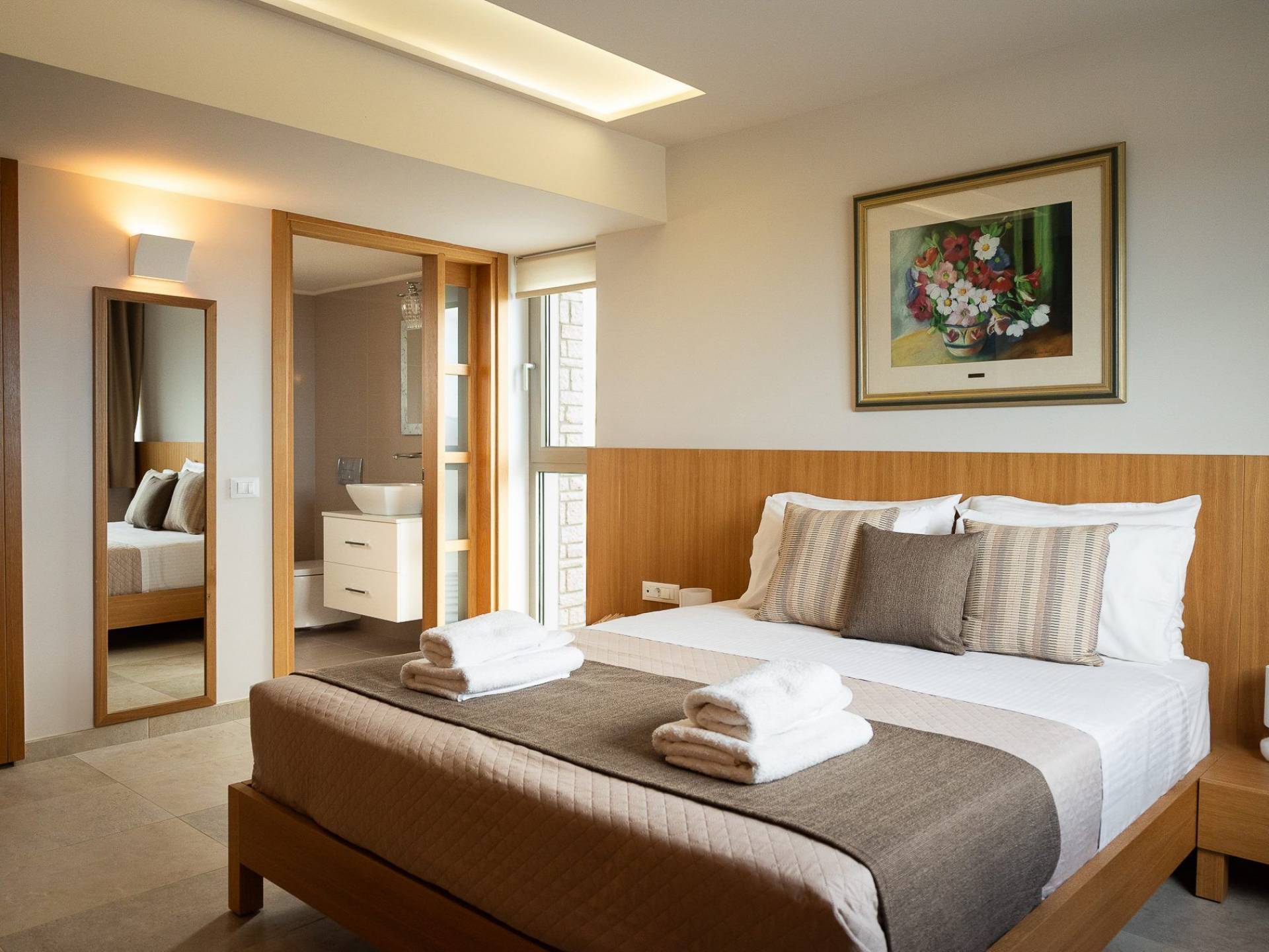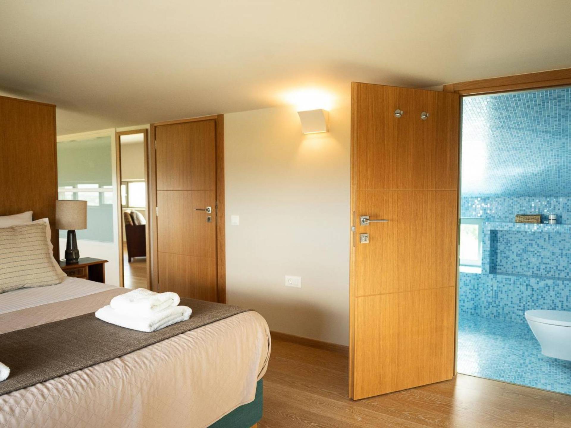 Κάθε κρεβατοκάμαρα έχει σχεδιαστεί προσεκτικά για απόλυτη άνεση, με βελούδινα κλινοσκεπάσματα, κομψή διακόσμηση και μεγάλα παράθυρα που πλαισιώνουν εκπληκτική θέα. Ξεκουραστείτε σε ένα ήρεμο περιβάλλον σχεδιασμένο για έναν τέλειο βραδινό ύπνο.