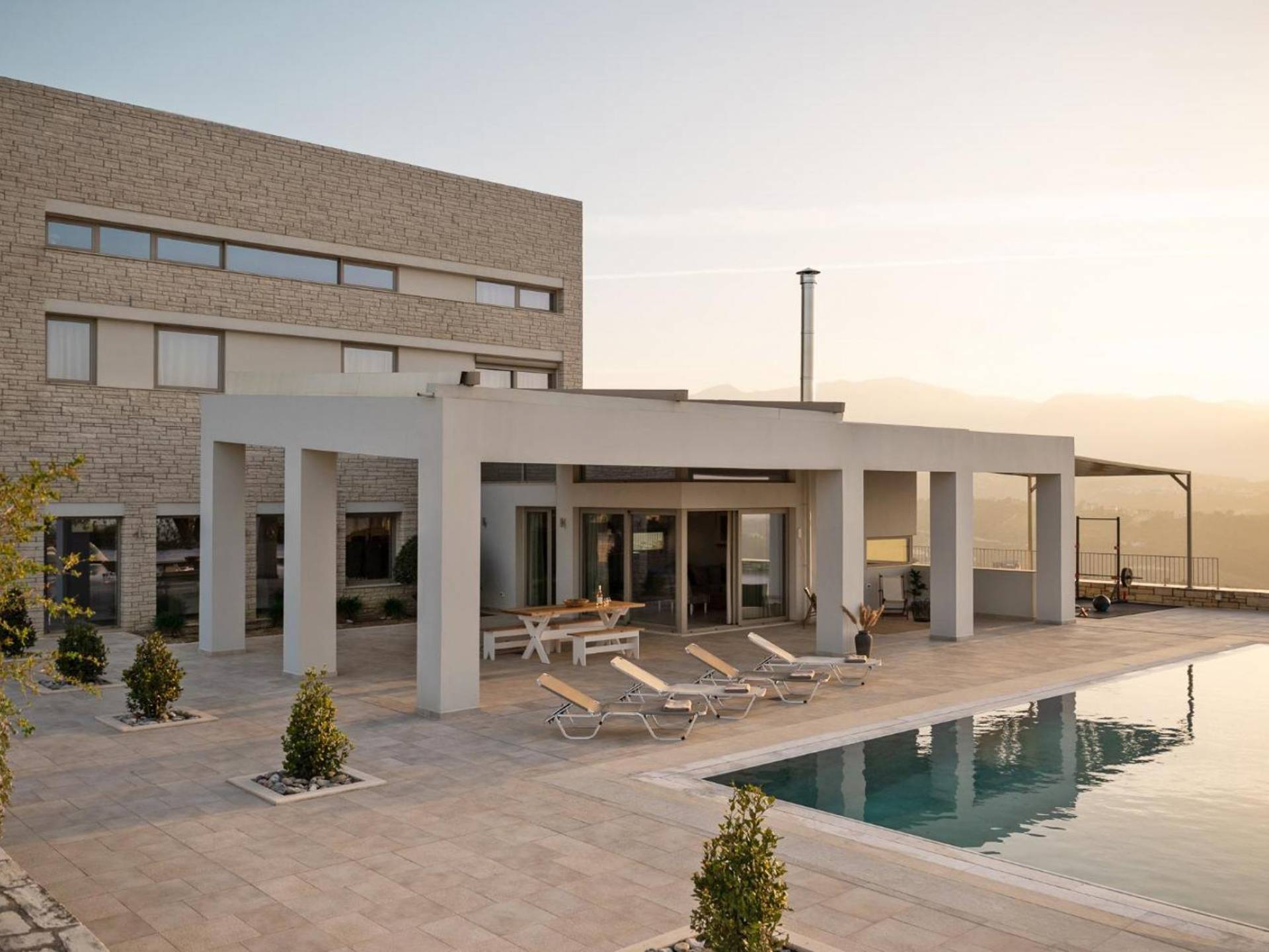 Mona Villa Crete - Η ιδιωτική σας όαση στην καρδιά της Κρήτης. Καλώς ήρθατε στη Mona Villa Κρήτης, όπου η κομψότητα συναντά τη φύση στο μαγευτικό περιβάλλον του Ηρακλείου. Ανάμεσα σε αρχαίους ελαιώνες με εκπληκτική θέα στη θάλασσα και στο βουνό, αυτή η πολυτελής απόδραση σας προσκαλεί να χαλαρώσετε, να ανανεωθείτε και να δημιουργήσετε αξέχαστες αναμνήσεις.