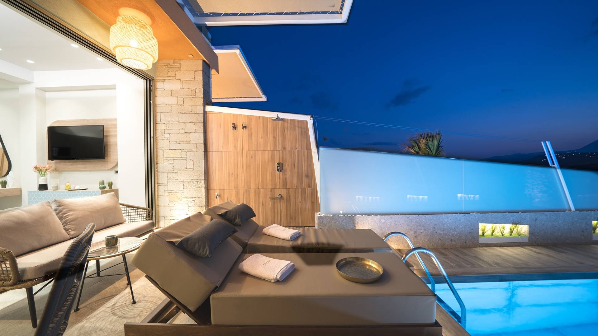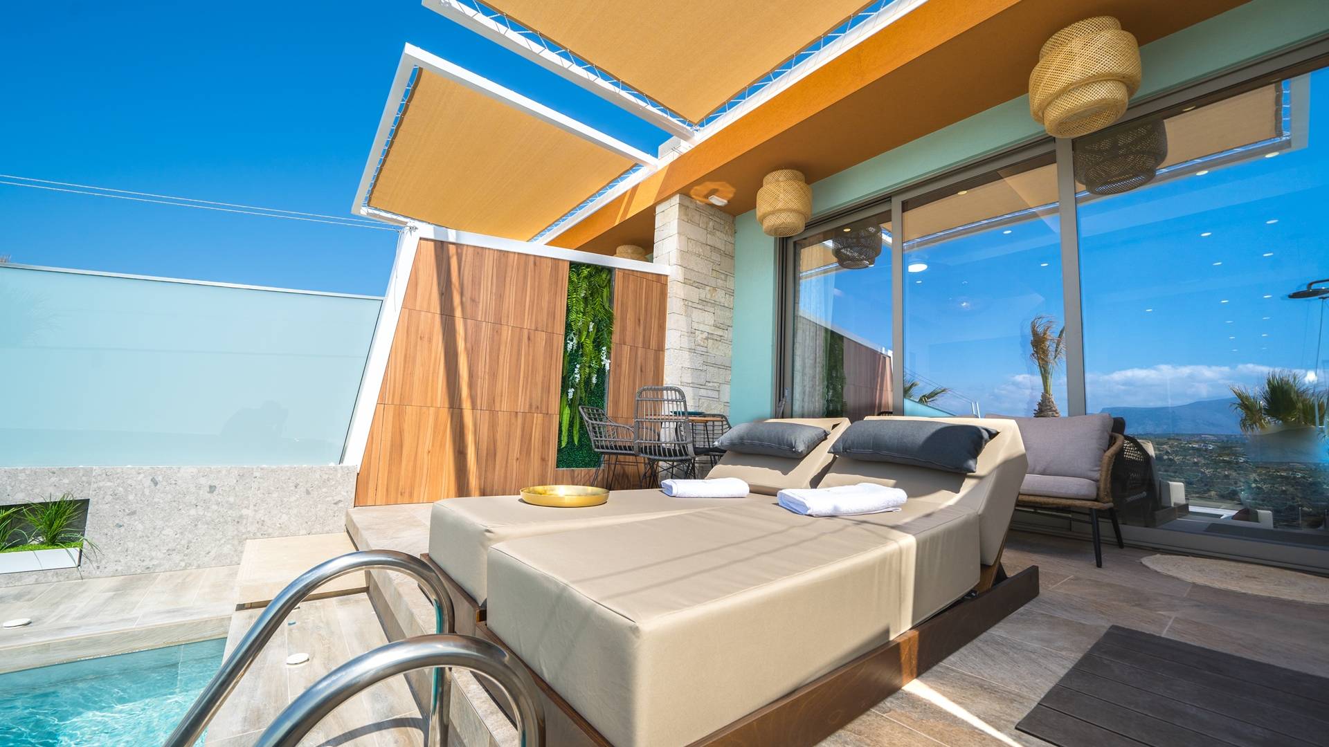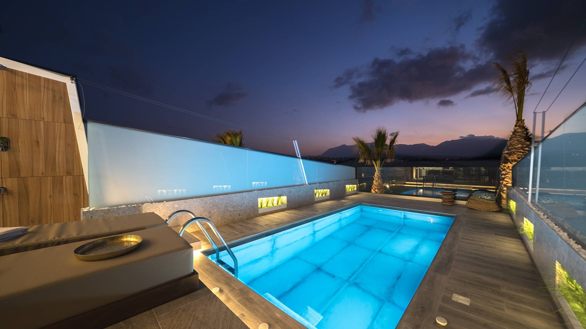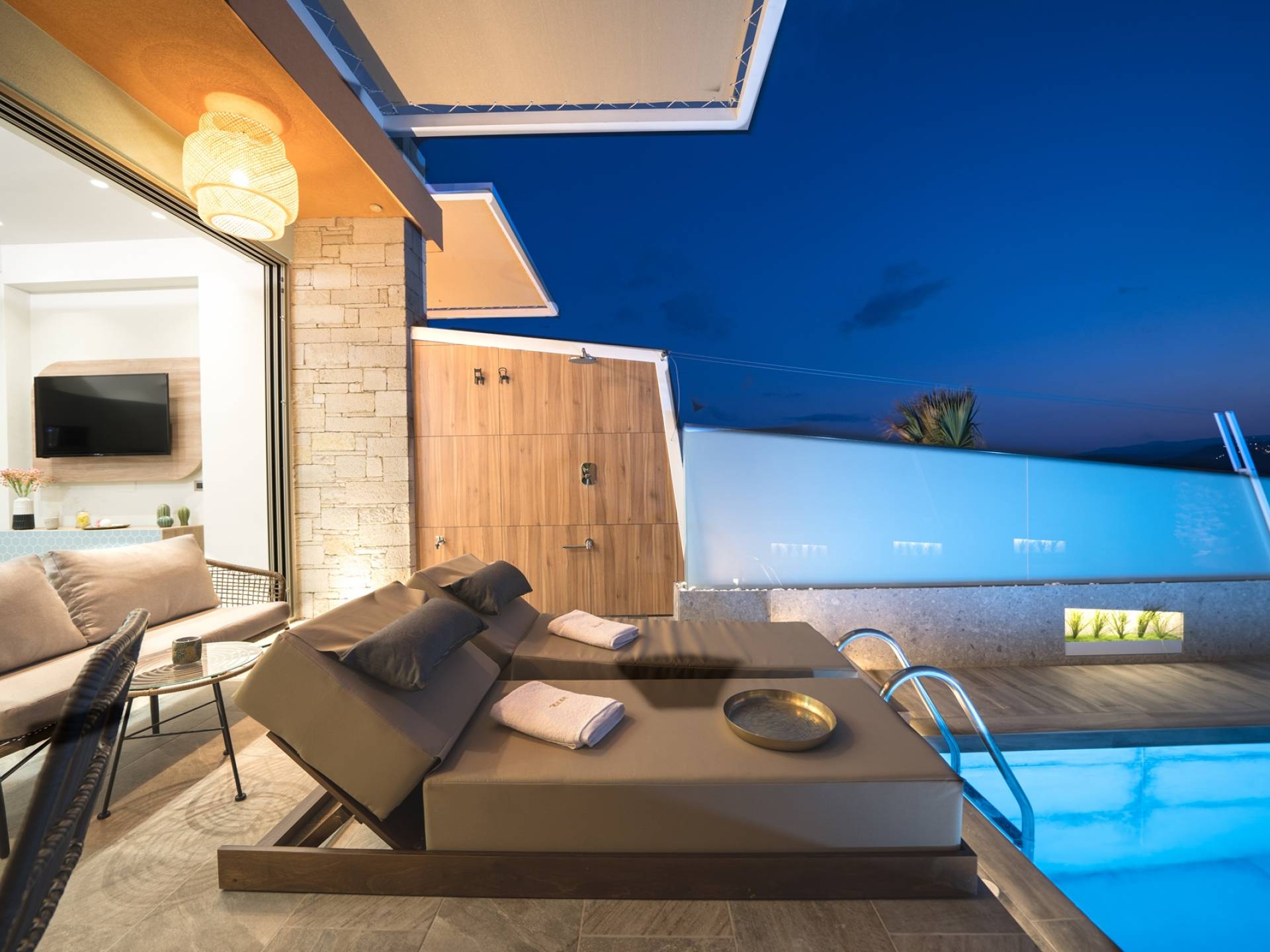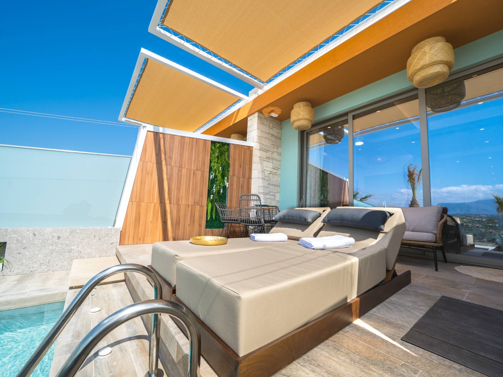 Νιώστε το άρωμα και τον ήχο της φύσης και χαλαρώστε σε ένα άνετο και πολυτελές περιβάλλον φτιαγμένο με επιλεγμένα υλικά υψηλών προδιαγραφών. Κάθε σουίτα είναι πλήρως αυτόνομη και διαθέτει ιδιωτική πισίνα με υδρομασάζ άμεσα προσβάσιμη από την ιδιωτική βεράντα καθώς και ιδιωτική είσοδο με επιπλέον βεράντα. Επίσης, κάθε σουίτα είναι εξοπλισμένη με μια ποικιλία από οικιακές/έξυπνες συσκευές και έπιπλα, αυτόνομο κλιματισμό, σύστημα ασφαλείας, ορθοπεδικά στρώματα, δωρεάν πάρκινγκ και πολλές ακόμη παροχές. Για τους λάτρεις της τεχνολογίας ή/και για όσους θέλουν να συνδυάσουν τις διακοπές τους με απομακρυσμένη εργασία, όλες οι σουίτες διαθέτουν δωρεάν internet, ιδιωτικό δίκτυο ethernet (θύρες RJ45) και ασύρματο δίκτυο (4ης, 5ης και 6ης γενιάς) διαθέσιμα σε όλους τους εσωτερικούς και εξωτερικούς χώρους του την ιδιοκτησία.