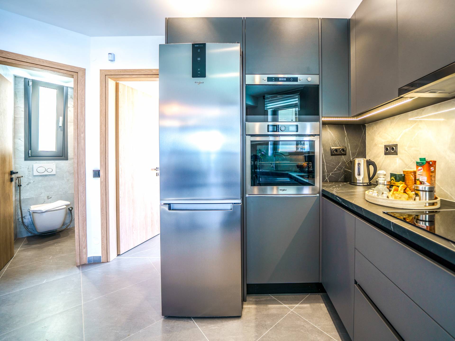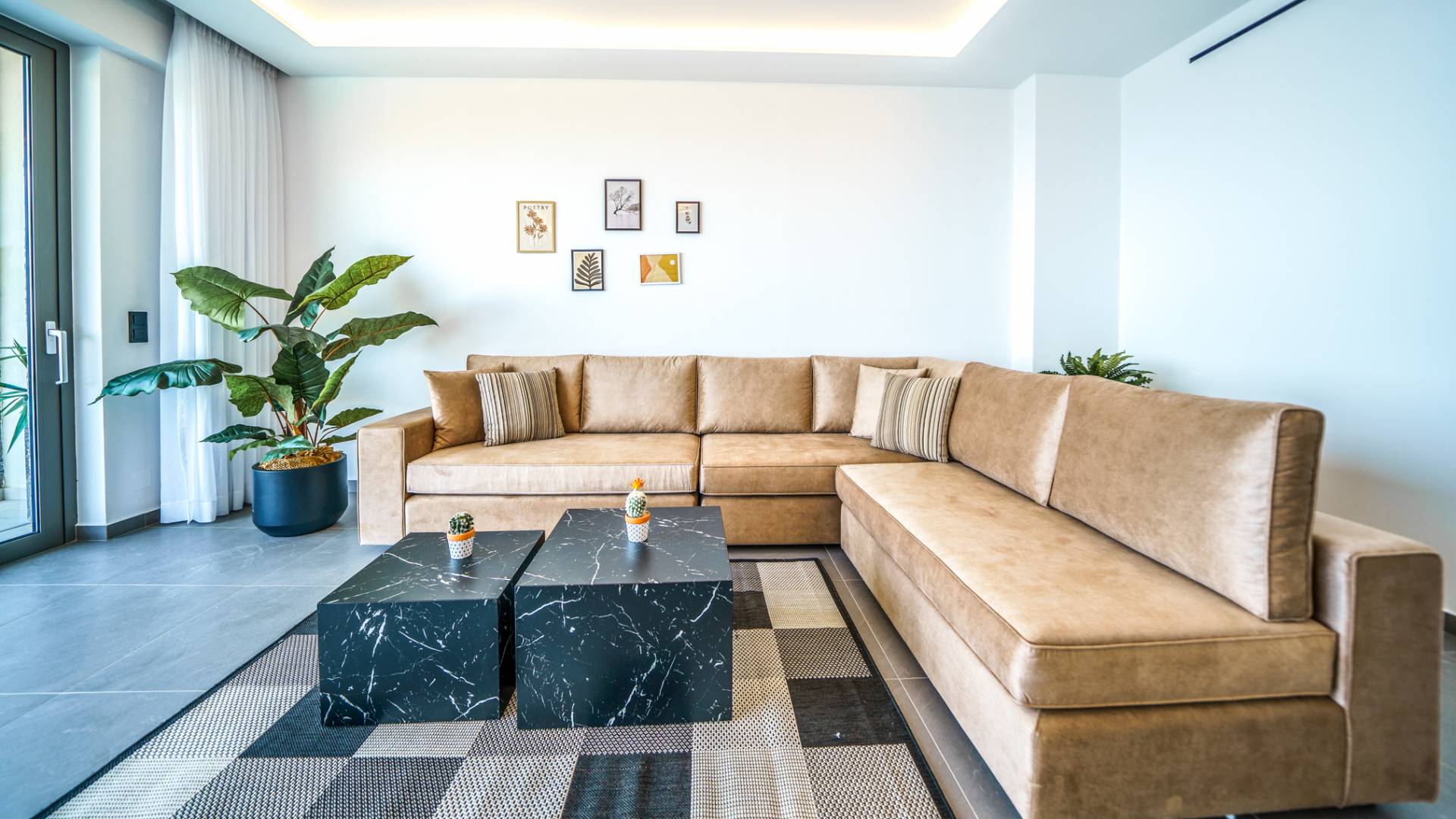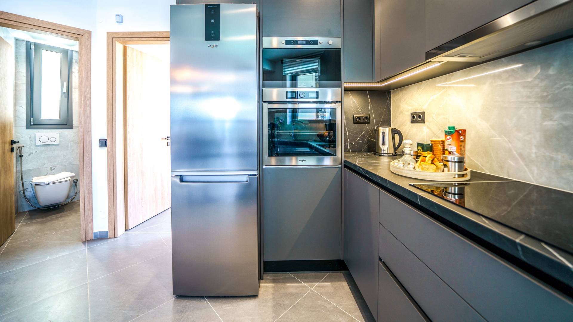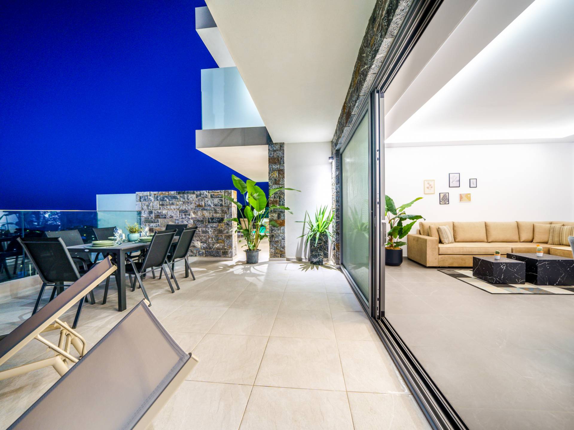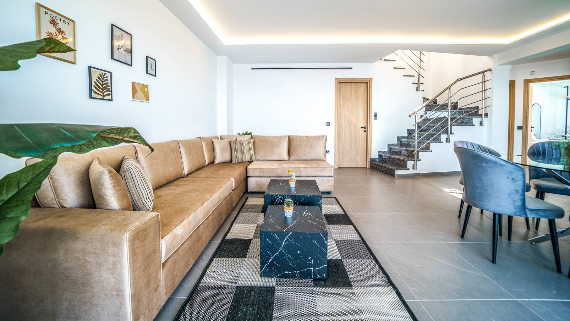 Το σαλόνι σας καλωσορίζει με ένα κομψό καθιστικό με τηλεόραση smart 50 ιντσών, ιδανικό για χαλαρωτικά βράδια καθώς εξερευνάτε περαιτέρω, θα μαγευτείτε από το κομβικό σημείο του καθιστικού: μια ευρύχωρη βεράντα με εκπληκτική θέα στη θάλασσα και σας προσκαλεί να απολαύσετε την ομορφιά της φύσης.