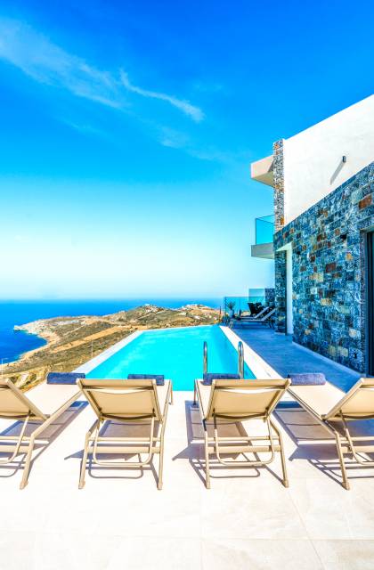 Οι βίλες κυμαίνονται από ρομαντικά καταλύματα για δύο έως μεγάλες, οικογενειακές κατοικίες με πολλαπλά υπνοδωμάτια, ιδιωτικές πισίνες, κήπους και εκπληκτική θέα στη θάλασσα. Πολλές προσφέρουν επιπλέον υπηρεσίες, όπως σεφ κατ’ οίκον, μασάζ, concierge και άλλα — για διακοπές που θα σας μείνουν αξέχαστες.