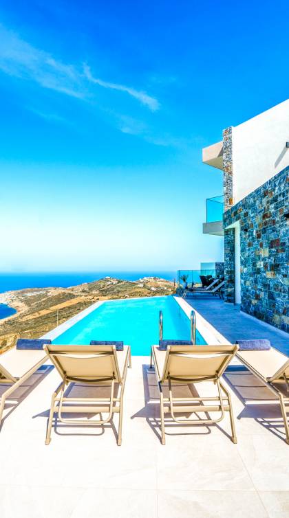 Ιδιαίτερα δημοφιλείς είναι οι πολυτελείς βίλες, πολλές από τις οποίες βρίσκονται στους λόφους με πανοραμική θέα στο πέλαγος. Διαθέτουν ιδιωτικές πισίνες, μεγάλες βεράντες με σκιά, απόλυτη ιδιωτικότητα και όλες τις ανέσεις για μια ξεχωριστή διαμονή.