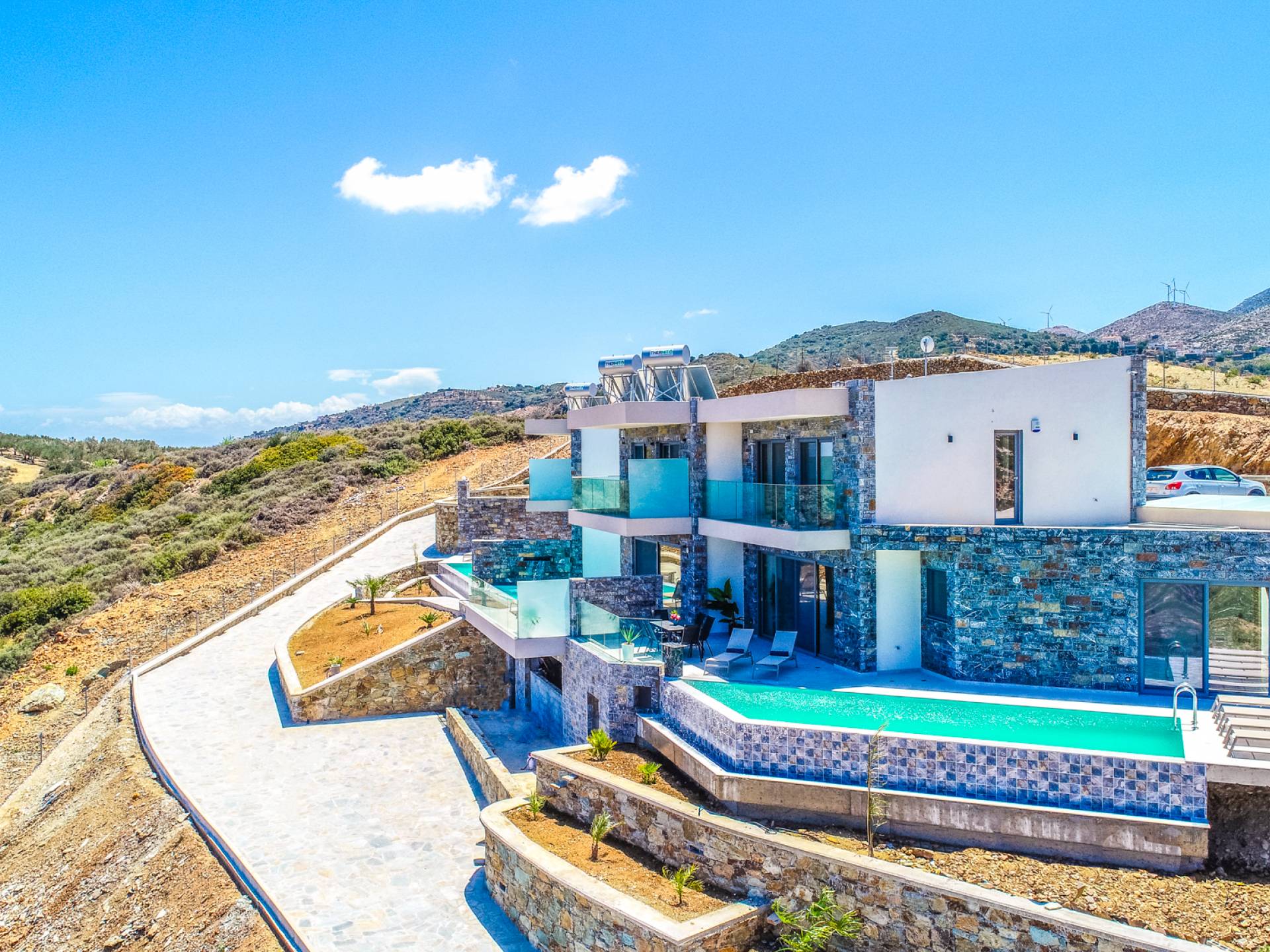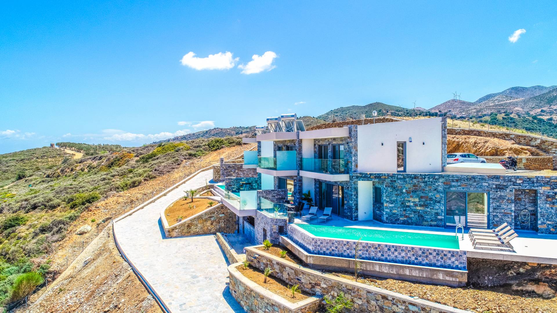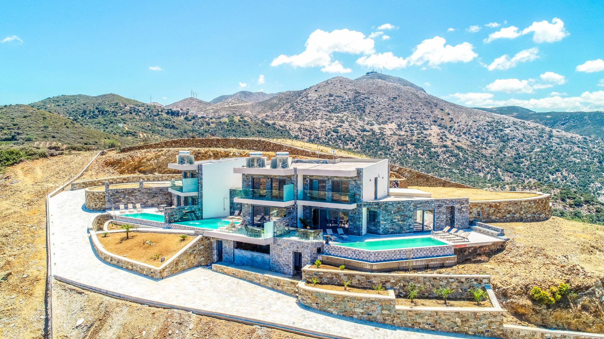 Ζήστε την επιτομή της αποκλειστικότητας και της πολυτέλειας στο Hilltop Villas. Σκαρφαλωμένα στις γαλήνιες πλαγιές της Κρήτης, οι βίλες μας προσφέρουν εκπληκτική θέα στην παρθένα παραλία από κάτω και στα μαγευτικά βουνά.