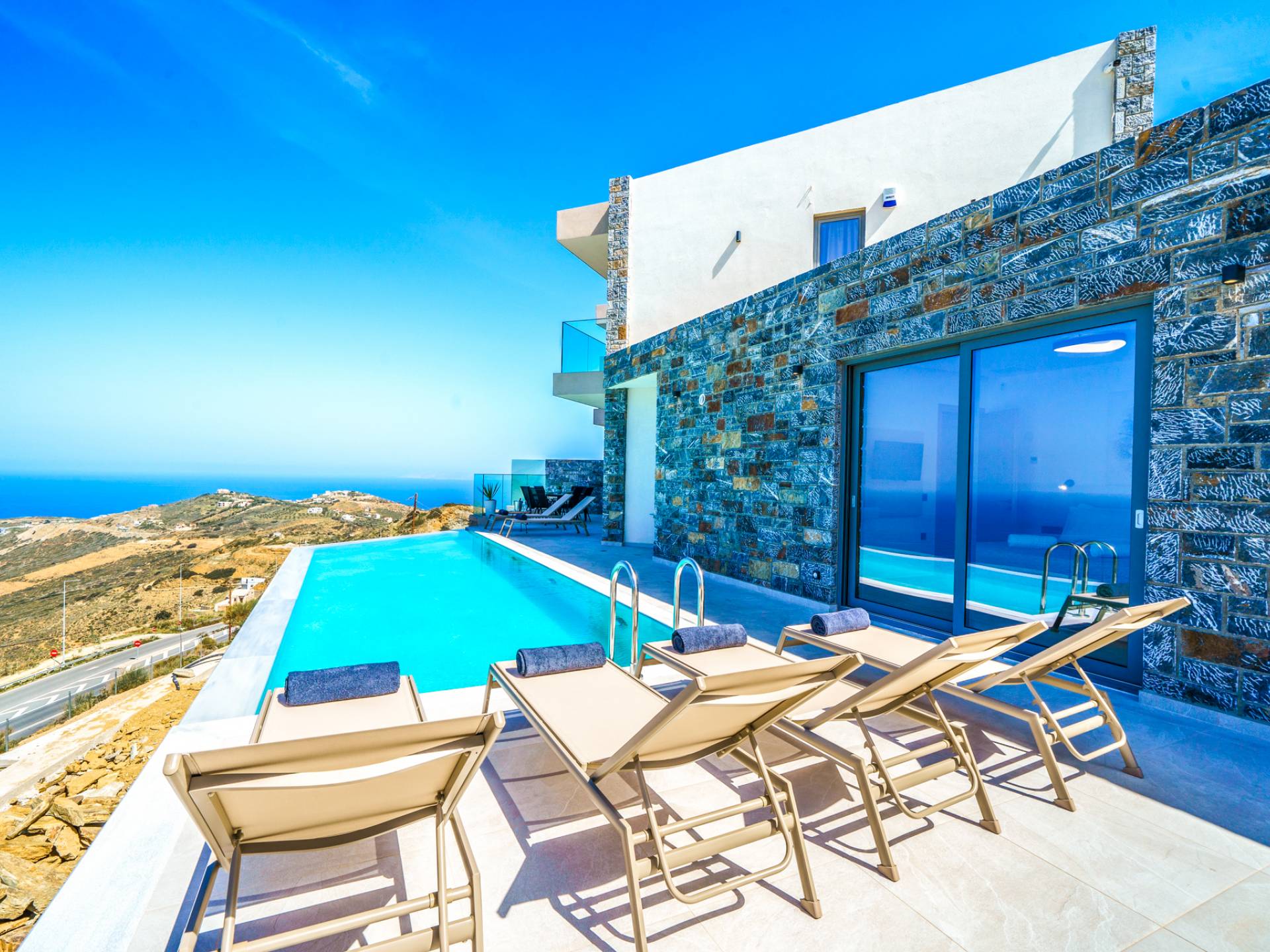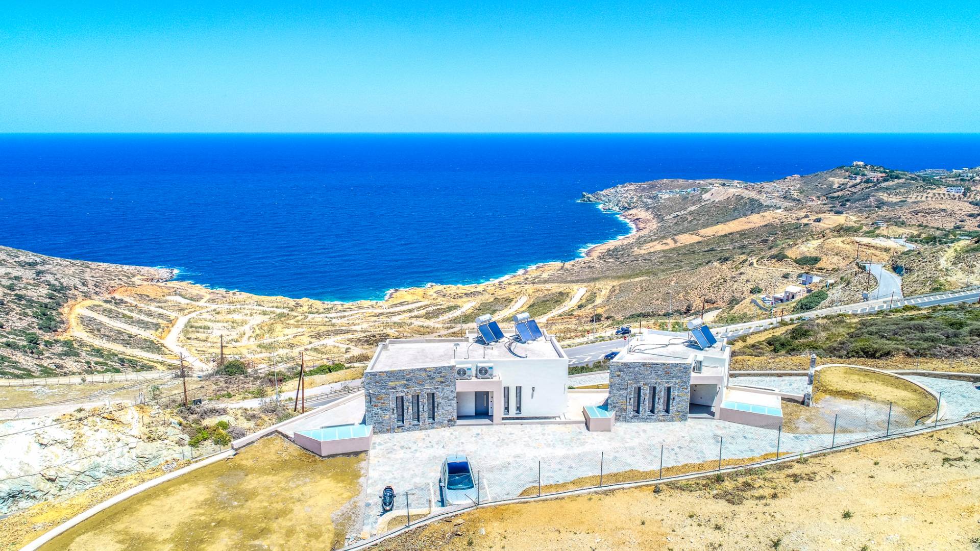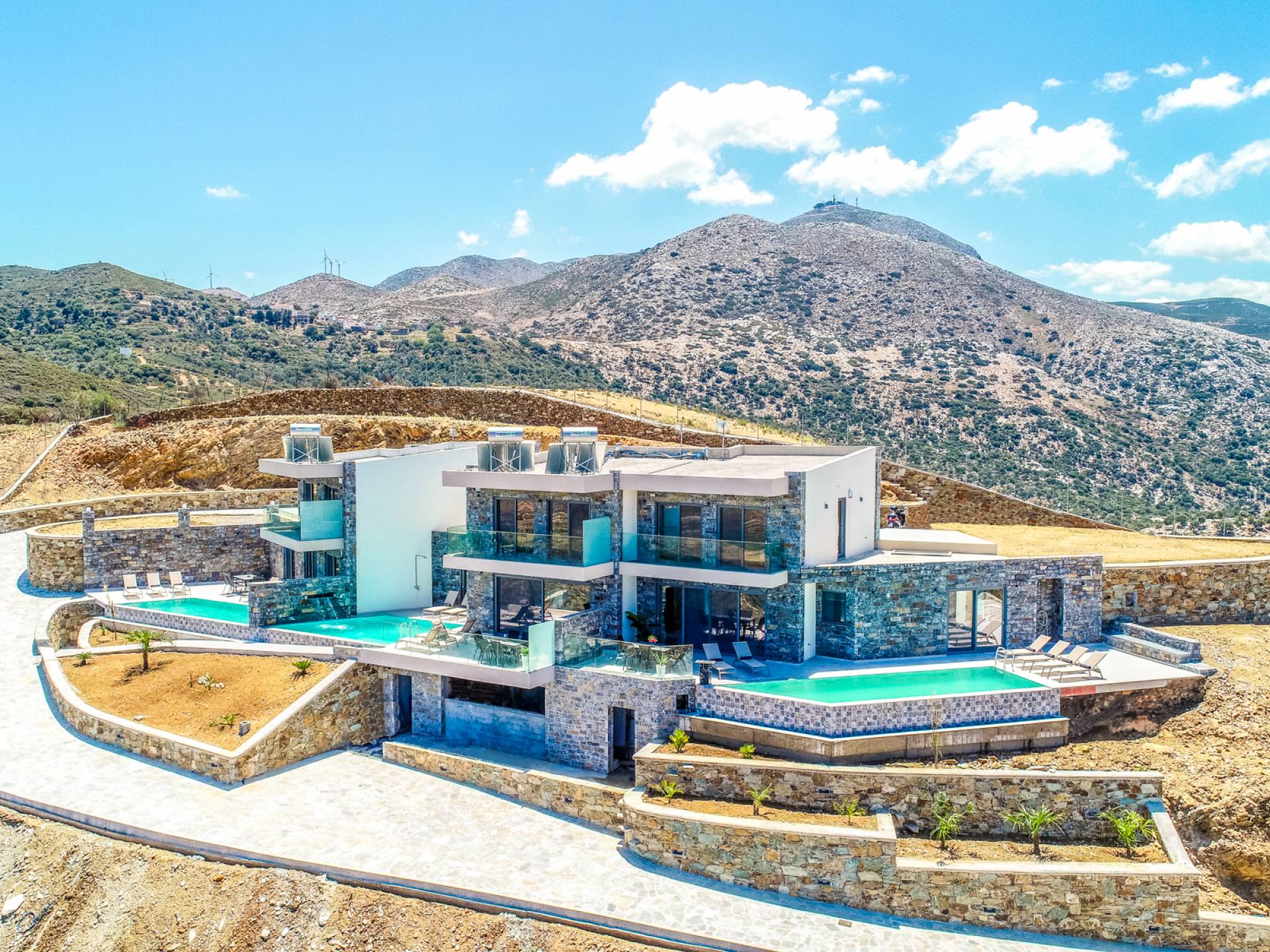 Ζήστε την επιτομή της αποκλειστικότητας και της πολυτέλειας στο Hilltop Villas. Σκαρφαλωμένα στις γαλήνιες πλαγιές της Κρήτης, οι βίλες μας προσφέρουν εκπληκτική θέα στην παρθένα παραλία από κάτω και στα μαγευτικά βουνά.