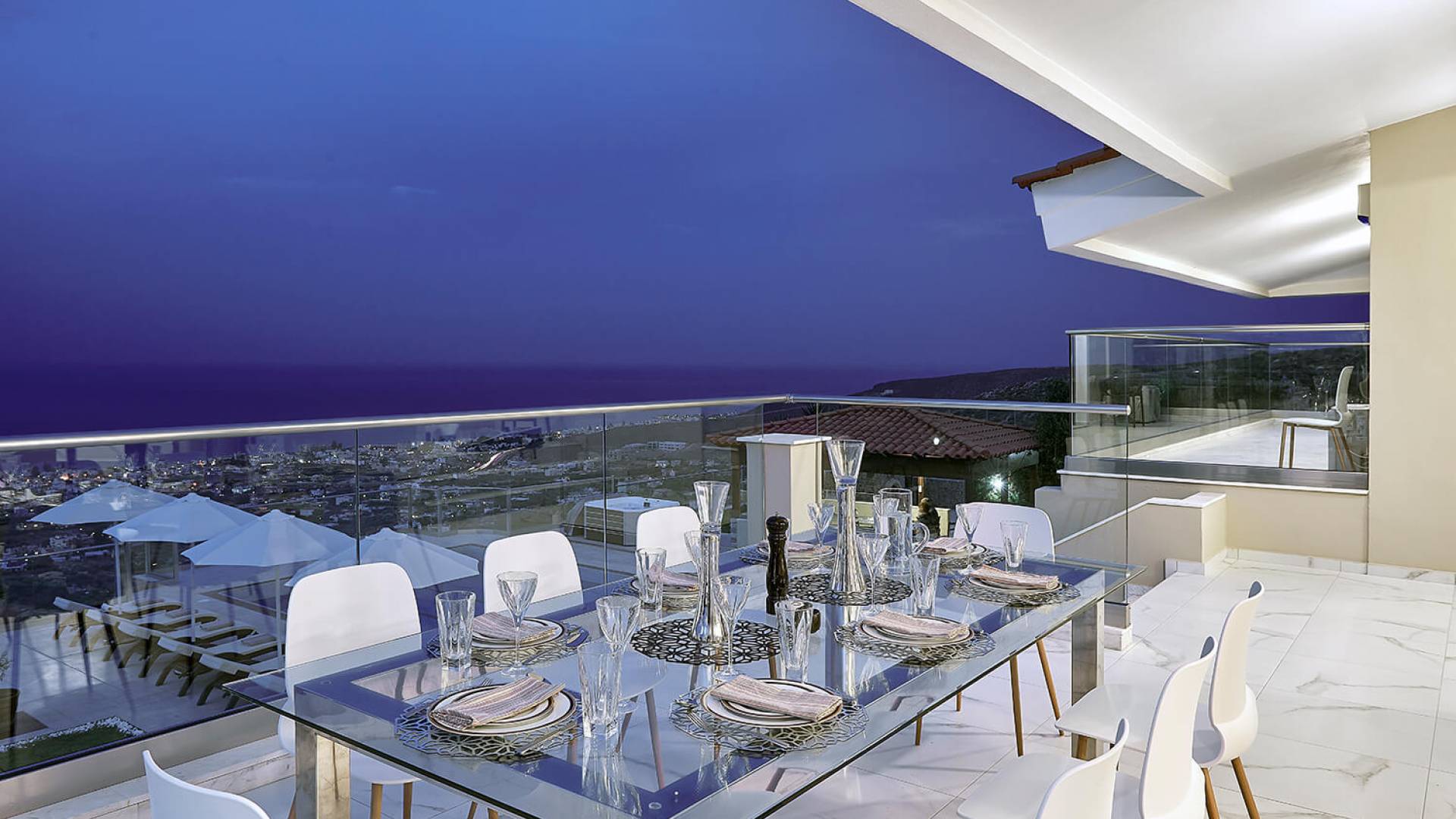 Η θέα στη θάλασσα είναι μοναδική και κόβει την ανάσα. Μπορεί να συγκριθεί μόνο με τη διάσημη θέα της Καλντέρας στη Σαντορίνη. Παρέχει γραφική θέα στο νησί Ντιά απέναντι, που κατοικείται από άγριες κρητικές αίγες γνωστές ως Κρι-Κρι, που βρίσκονται μόνο σε αυτό το νησί και στο φαράγγι της Σαμαριάς. Η βίλα βρίσκεται μόλις 2,5 χλμ. Από τις χρυσές, αμμώδεις παραλίες Κοκκίνη Χάνι και Γούρνες. Σε αυτές τις χαλαρωτικές παραλίες, μπορείτε να απολαύσετε τον καφέ ή το ποτό σας σε ένα από τα πολλά καφέ μπαρ, καθώς και να λάβετε μέρος στα συναρπαστικά διαθέσιμα θαλάσσια σπορ.