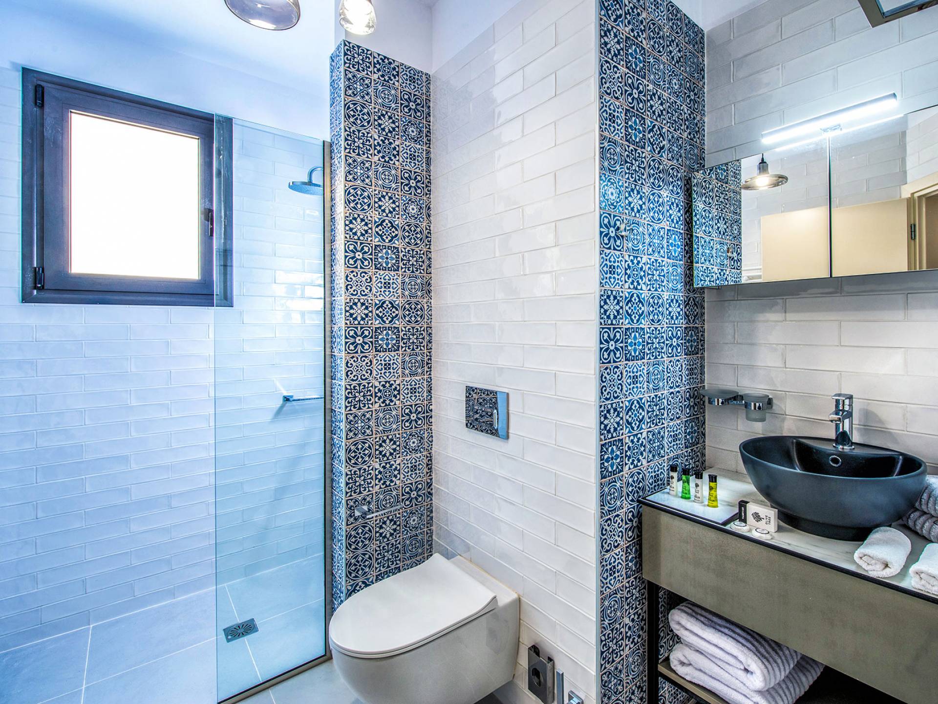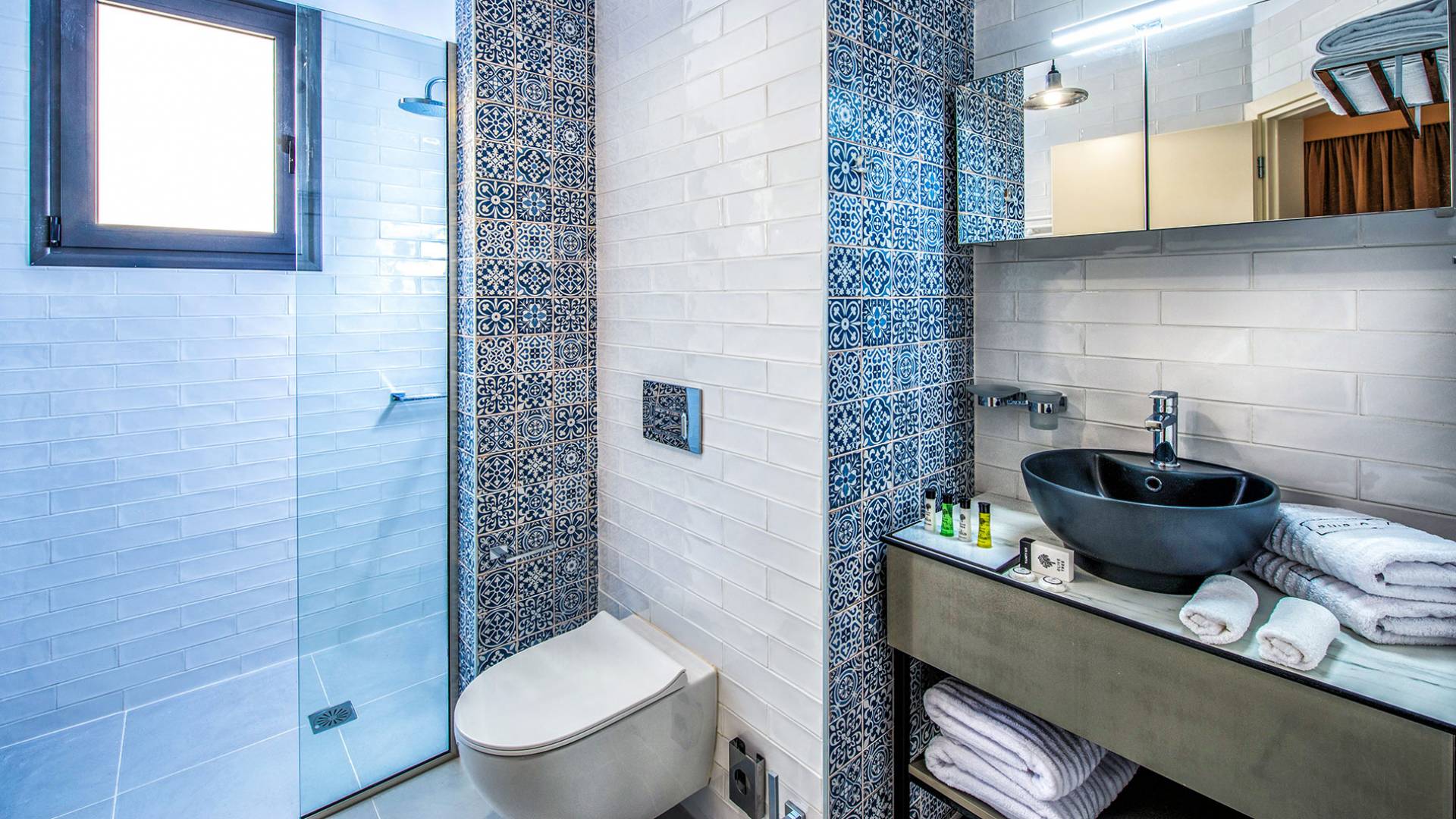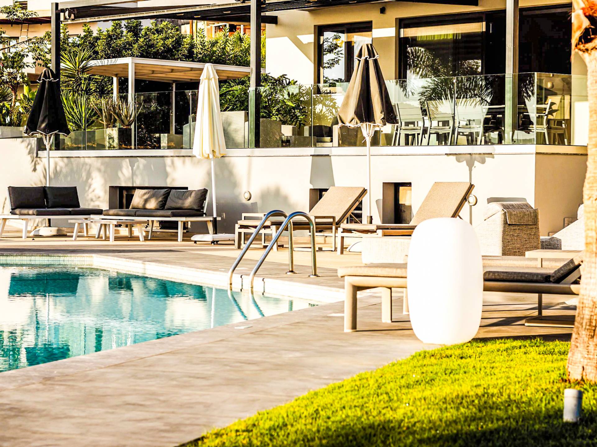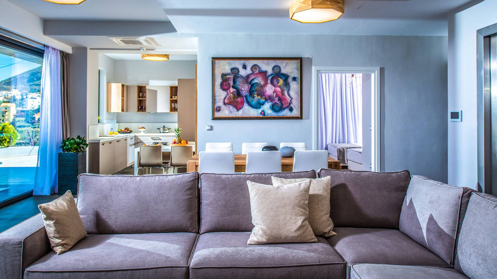 Η βίλα με πολυτελή διακόσμηση σε μίνιμαλ στυλ είναι χτισμένη σε τρεις ορόφους, ενώ ένας ανελκυστήρας σας παρέχει εύκολη πρόσβαση σε όλους τους ορόφους. Το γυμναστήριο, η σάουνα, το τζακούζι, η πρόσβαση Wi-Fi, οι τηλεοράσεις Smart σε όλα τα δωμάτια, είναι μερικές από τις ανέσεις του ξενοδοχείου που μπορείτε να απολαύσετε. Η βίλα βρίσκεται στο ισόγειο, το οποίο διαθέτει ενιαίο χώρο καθιστικού/τραπεζαρίας/κουζίνας και ένα υπνοδωμάτιο με δύο μονά κρεβάτια με ιδιωτικό μπάνιο (κάτω νιπτήρας, ψηλότερη τουαλέτα με λαβές στήριξης, ντους roll-in, κάθισμα ντους), προσβάσιμο σε αναπηρικά αμαξίδια, με αυτόνομο κλιματισμό και θέρμανση, τηλεόραση Smart και άνετα κλινοσκεπάσματα. Τα δύο μονά κρεβάτια μπορούν να μετατραπούν σε διπλό κρεβάτι με κάλυμμα στρώματος.