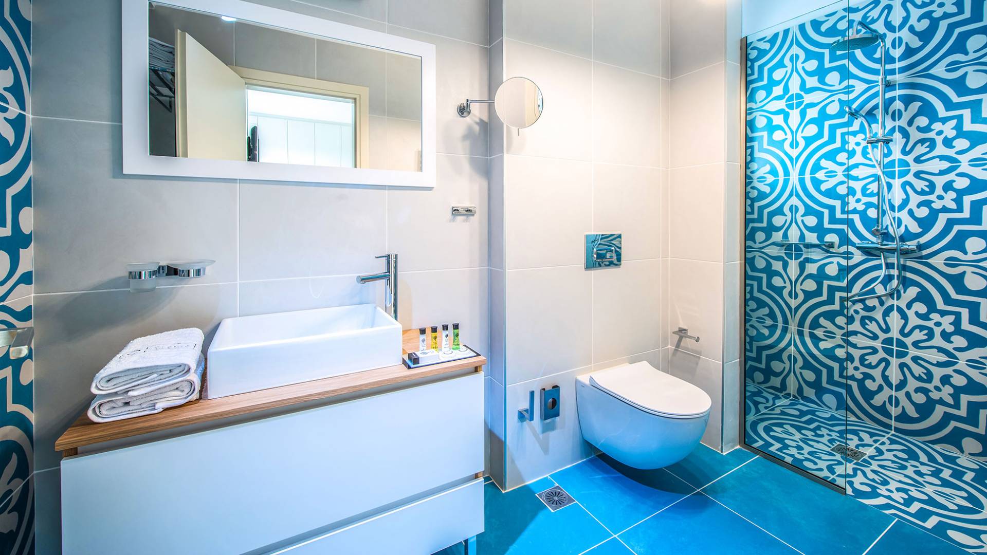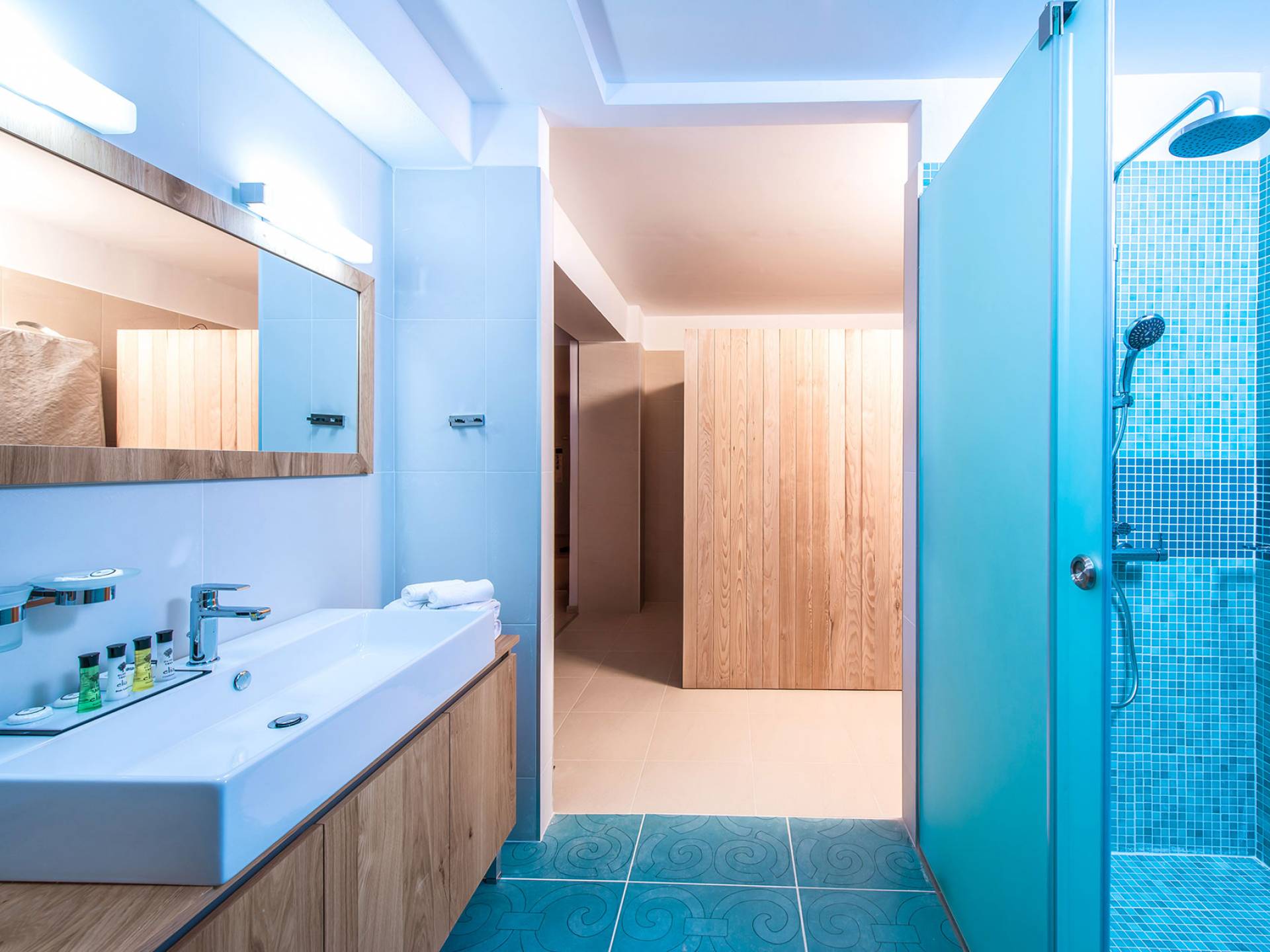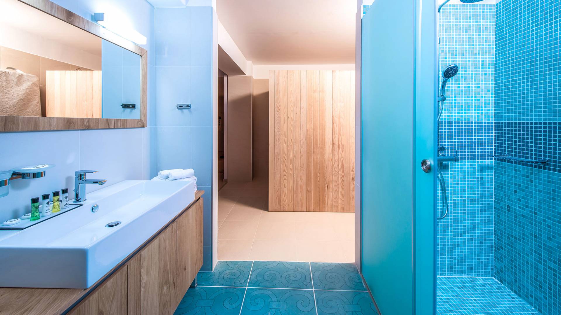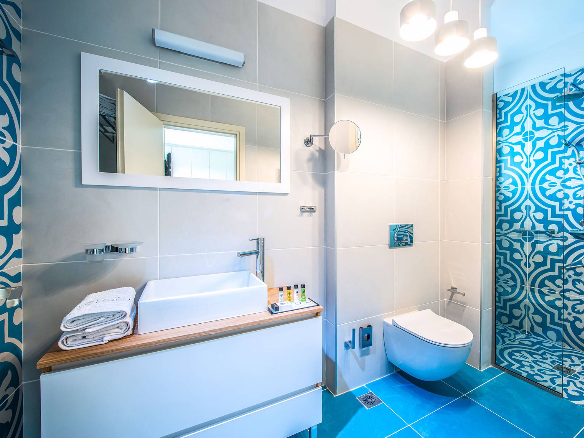 Η βίλα με πολυτελή διακόσμηση σε μίνιμαλ στυλ είναι χτισμένη σε τρεις ορόφους, ενώ ένας ανελκυστήρας σας παρέχει εύκολη πρόσβαση σε όλους τους ορόφους. Το γυμναστήριο, η σάουνα, το τζακούζι, η πρόσβαση Wi-Fi, οι τηλεοράσεις Smart σε όλα τα δωμάτια, είναι μερικές από τις ανέσεις του ξενοδοχείου που μπορείτε να απολαύσετε. Η βίλα βρίσκεται στο ισόγειο, το οποίο διαθέτει ενιαίο χώρο καθιστικού/τραπεζαρίας/κουζίνας και ένα υπνοδωμάτιο με δύο μονά κρεβάτια με ιδιωτικό μπάνιο (κάτω νιπτήρας, ψηλότερη τουαλέτα με λαβές στήριξης, ντους roll-in, κάθισμα ντους), προσβάσιμο σε αναπηρικά αμαξίδια, με αυτόνομο κλιματισμό και θέρμανση, τηλεόραση Smart και άνετα κλινοσκεπάσματα. Τα δύο μονά κρεβάτια μπορούν να μετατραπούν σε διπλό κρεβάτι με κάλυμμα στρώματος.