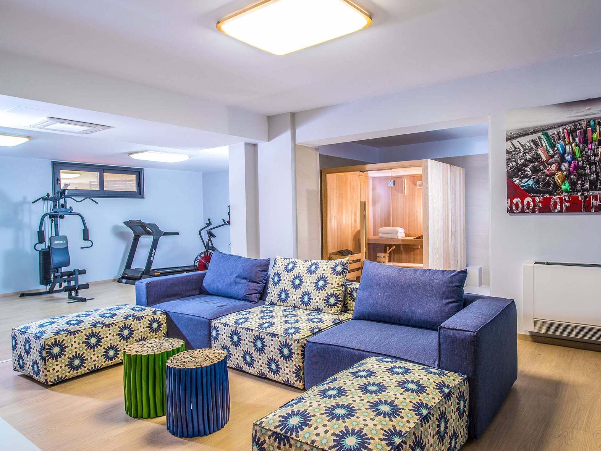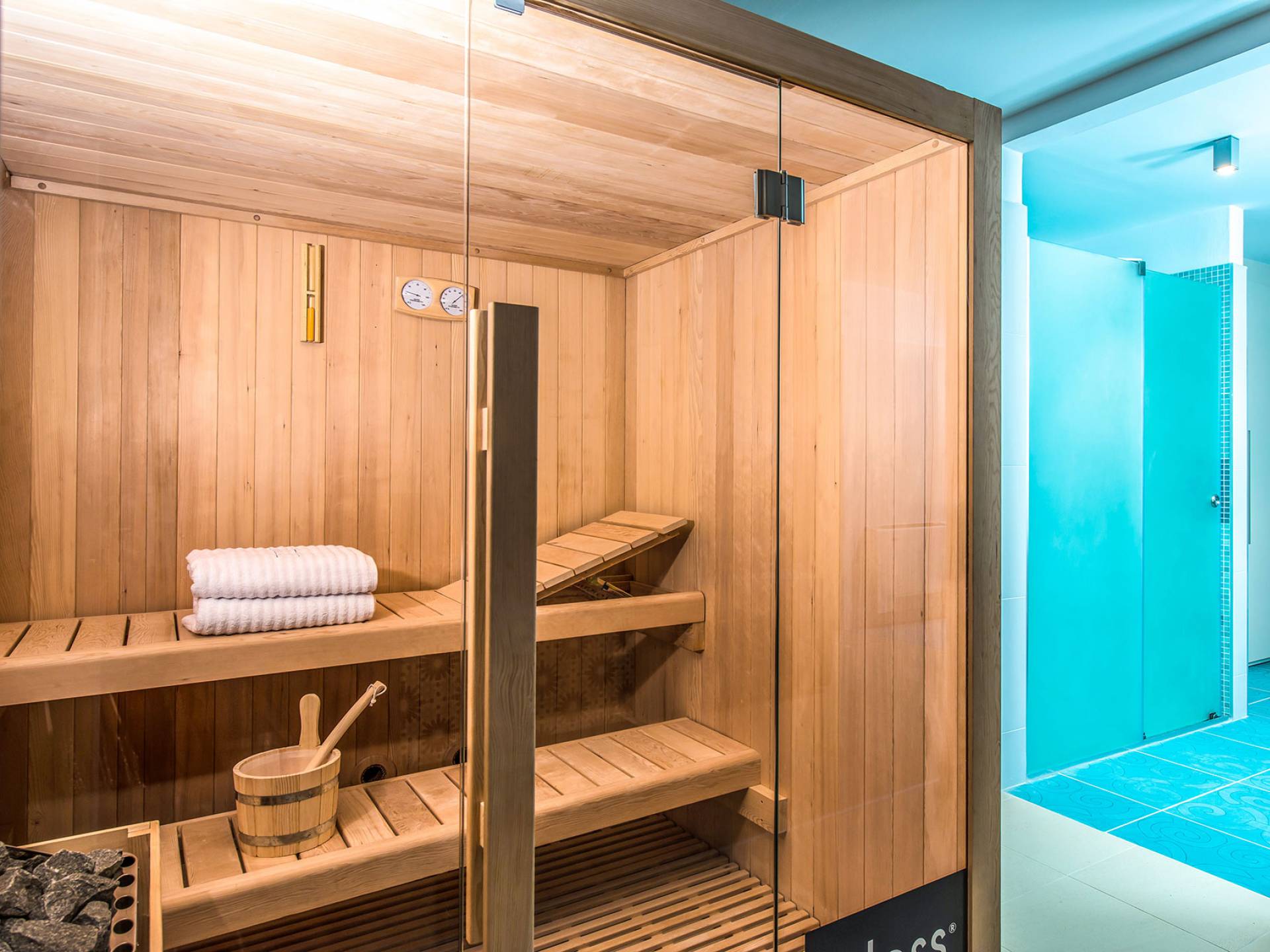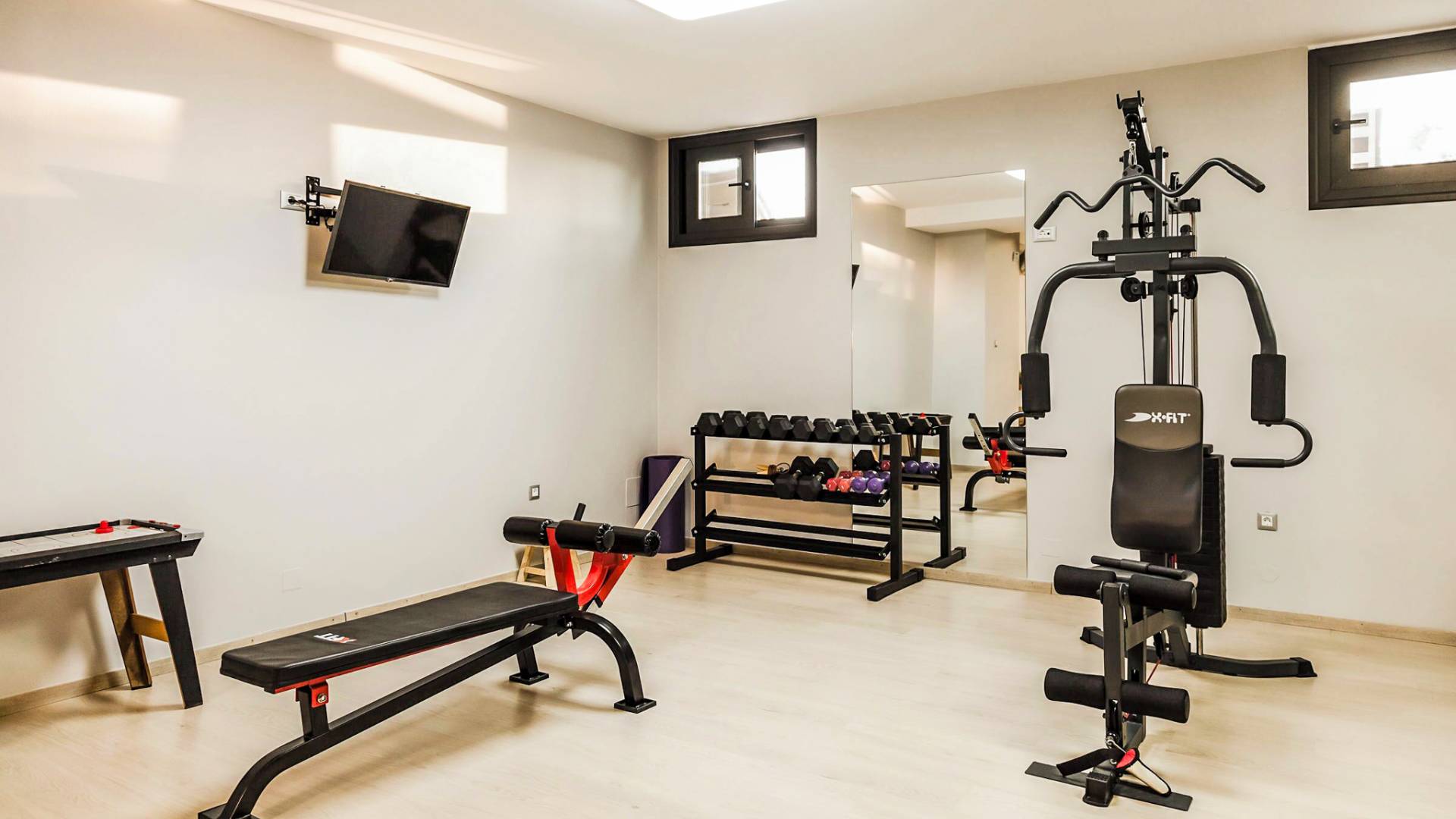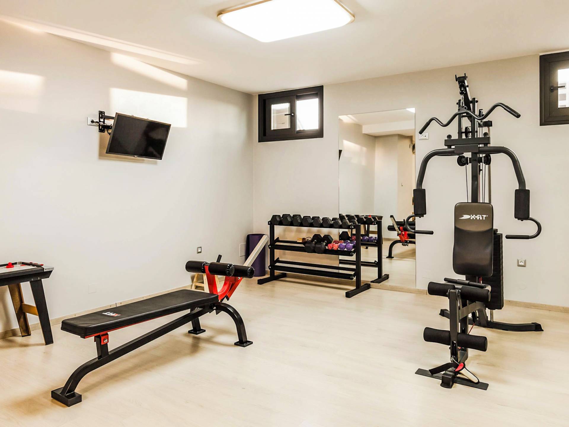 Από το ισόγειο, το ασανσέρ ή η σκάλα οδηγεί στον κάτω όροφο της βίλας και είναι ένα μεγάλο πλεονέκτημα για αυτήν. Διαθέτει σουηδική σάουνα για 4 άτομα και τζακούζι με υδρομασάζ για 4 άτομα. Επιπλέον, μπορείτε να απολαύσετε το πρόγραμμα της γυμναστικής σας στο πλήρως εξοπλισμένο ιδιωτικό γυμναστήριο. Υπάρχει ένα ντους και τουαλέτα με πλυντήριο ρούχων, ενώ ένα σαλόνι περιμένει κάποιους από εσάς που απλά θέλετε να χαλαρώσετε ή να παίξετε ένα βιντεοπαιχνίδι στην Smart TV.
