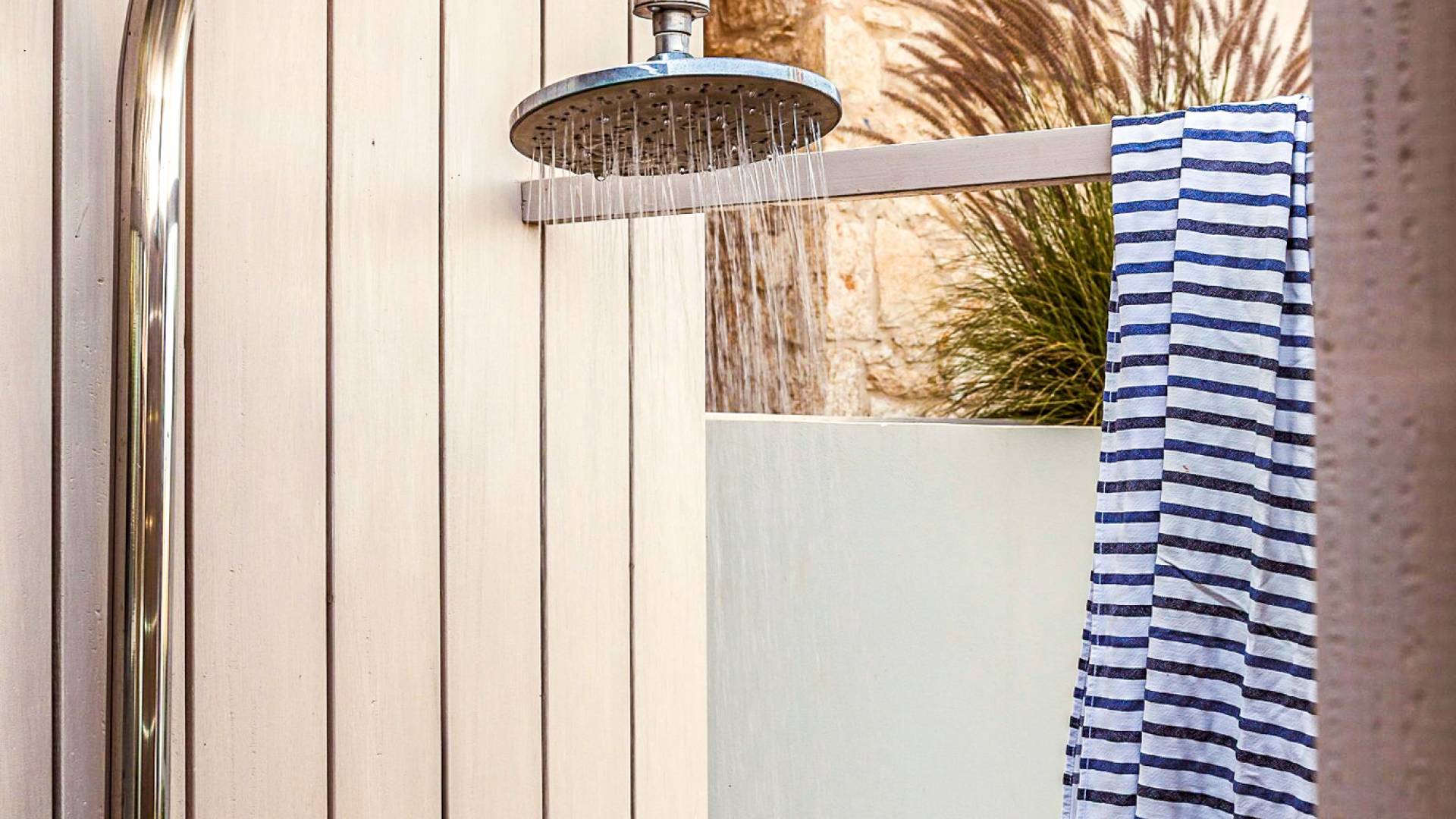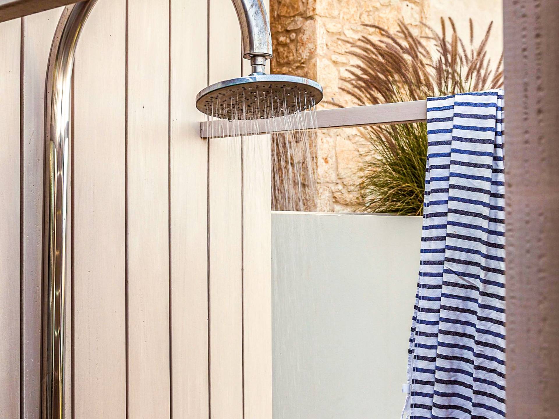 Μια σκάλα ή ο ανελκυστήρας οδηγεί στον πρώτο όροφο, ο οποίος διαθέτει το κύριο υπνοδωμάτιο με ένα king-size κρεβάτι με ιδιωτικό μπάνιο με ντους, ένα υπνοδωμάτιο με διπλό κρεβάτι με ιδιωτικό μπάνιο με ντους και ένα υπνοδωμάτιο με δύο μονά κρεβάτια με ιδιωτικό μπάνιο με ντους. Όλα τα υπνοδωμάτια διαθέτουν αυτόνομο κλιματισμό και θέρμανση, τηλεόραση Smart, άνετα κλινοσκεπάσματα και επιπλωμένα μπαλκόνια με θέα στη θάλασσα και στο βουνό. Τα δύο μονά κρεβάτια μπορούν να μετατραπούν σε διπλό κρεβάτι με κάλυμμα στρώματος. Για να κάνετε τη διαμονή σας πιο άνετη, υπάρχει επίσης ένα ψυγείο στο διάδρομο για να αποθηκεύετε τα δροσερά ποτά σας.