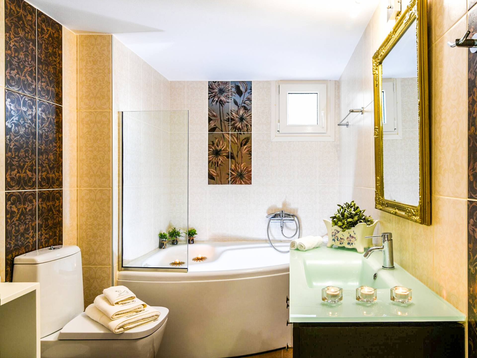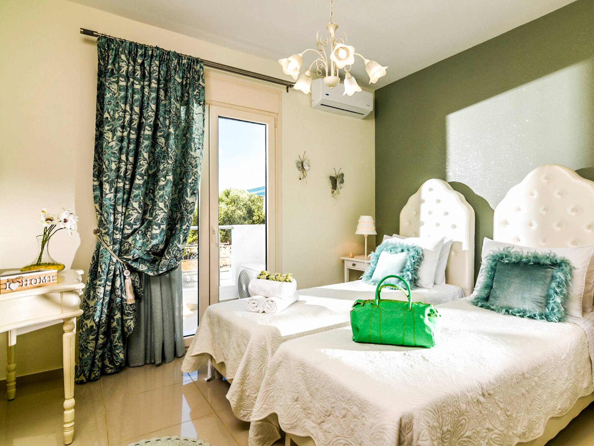 Δεύτερη κρεβατοκάμαρα με δύο μονά κρεβάτια και μπαλκόνι με θέα στον κήπο. 3ο υπνοδωμάτιο με 2 μονά κρεβάτια και μπαλκόνι με θέα στον κήπο. Το 2ο και το 3ο υπνοδωμάτιο έχουν μεγάλο μπάνιο με μπανιέρα. Μια πλήρως εξοπλισμένη κουζίνα με ηλεκτρικές συσκευές και μια δεύτερη μικρότερη κουζίνα απαραίτητη για κάθε είδους εκδηλώσεις. Το σαλόνι είναι εξοπλισμένο με έπιπλα τελευταίας τεχνολογίας που περιλαμβάνουν σαλόνι και τραπεζαρία, τηλεόραση 3D 50, τζάκι και δύο μπαλκόνια για να απολαύσει ο επισκέπτης ένα ποτό ή ένα γεύμα. Ο κήπος μπορεί να νιώσει τη δροσιά της ιδιωτικής πισίνας και τον ζεστό ήλιο. Στην ταράτσα ο επισκέπτης ατενίζει ατενίζοντας που συνδυάζει βουνό και θάλασσα. Η τέλεια επιλογή για ρομαντικές διακοπές με την οικογένεια και τους φίλους.