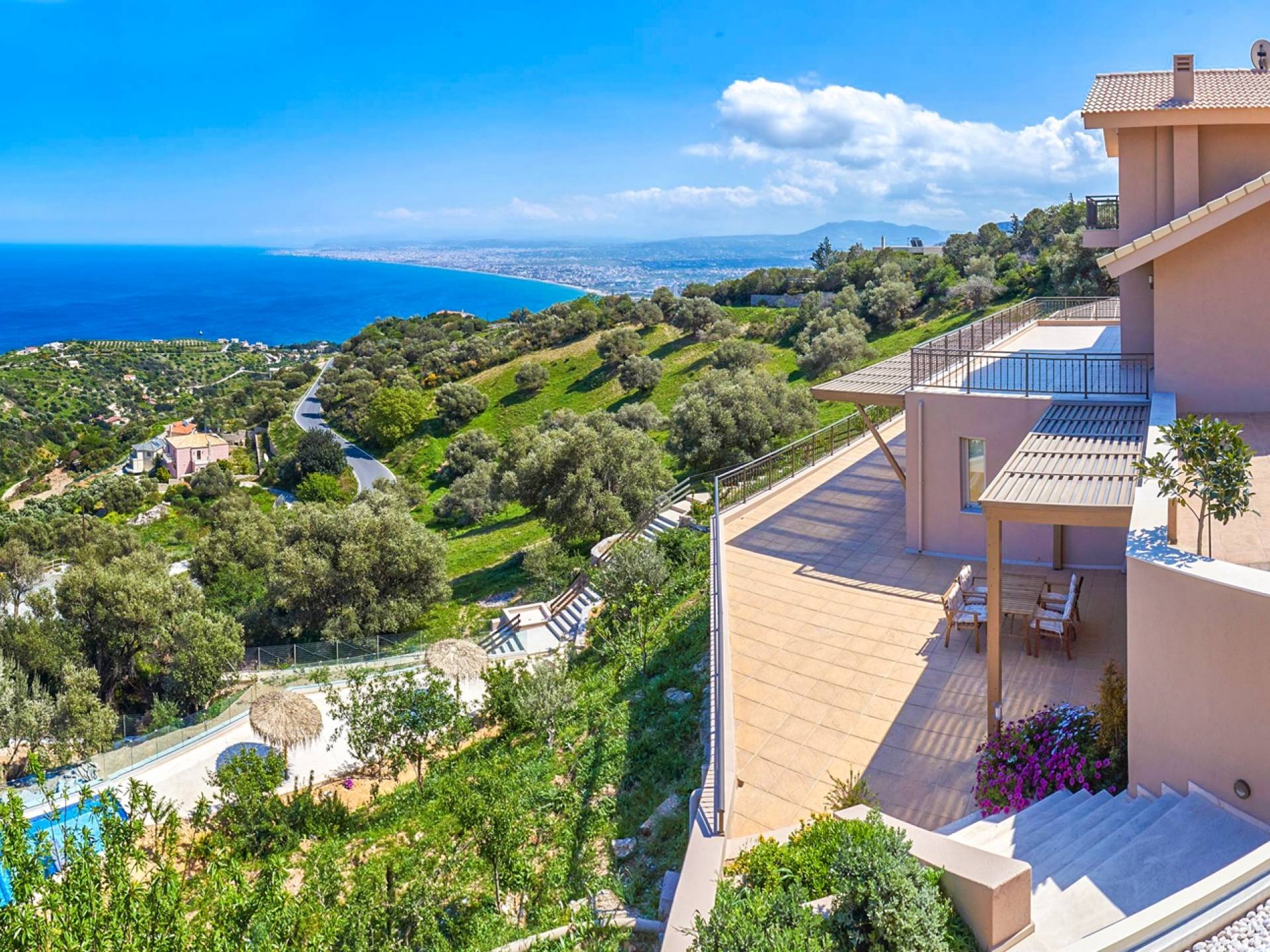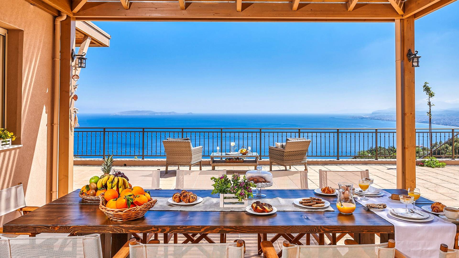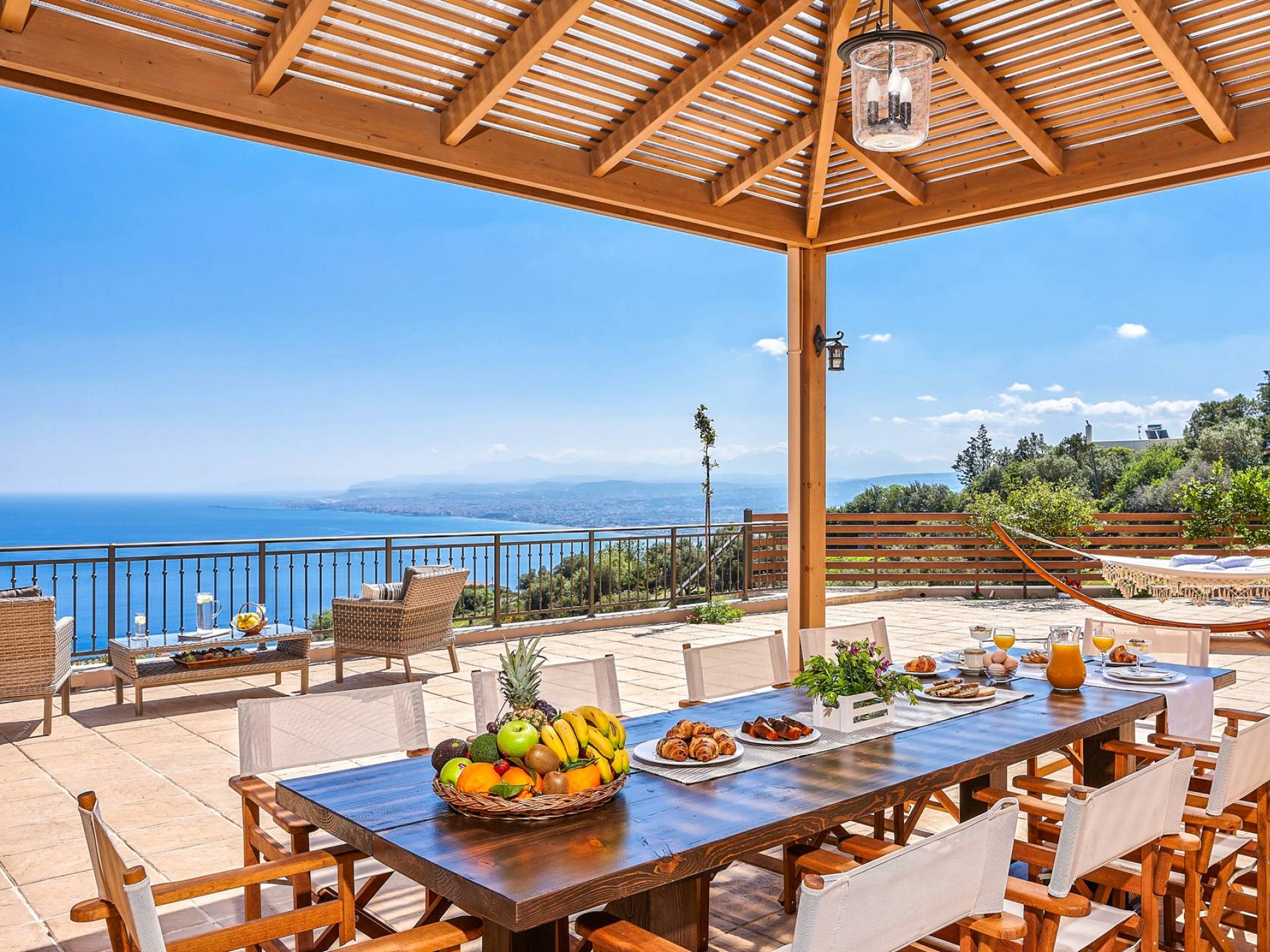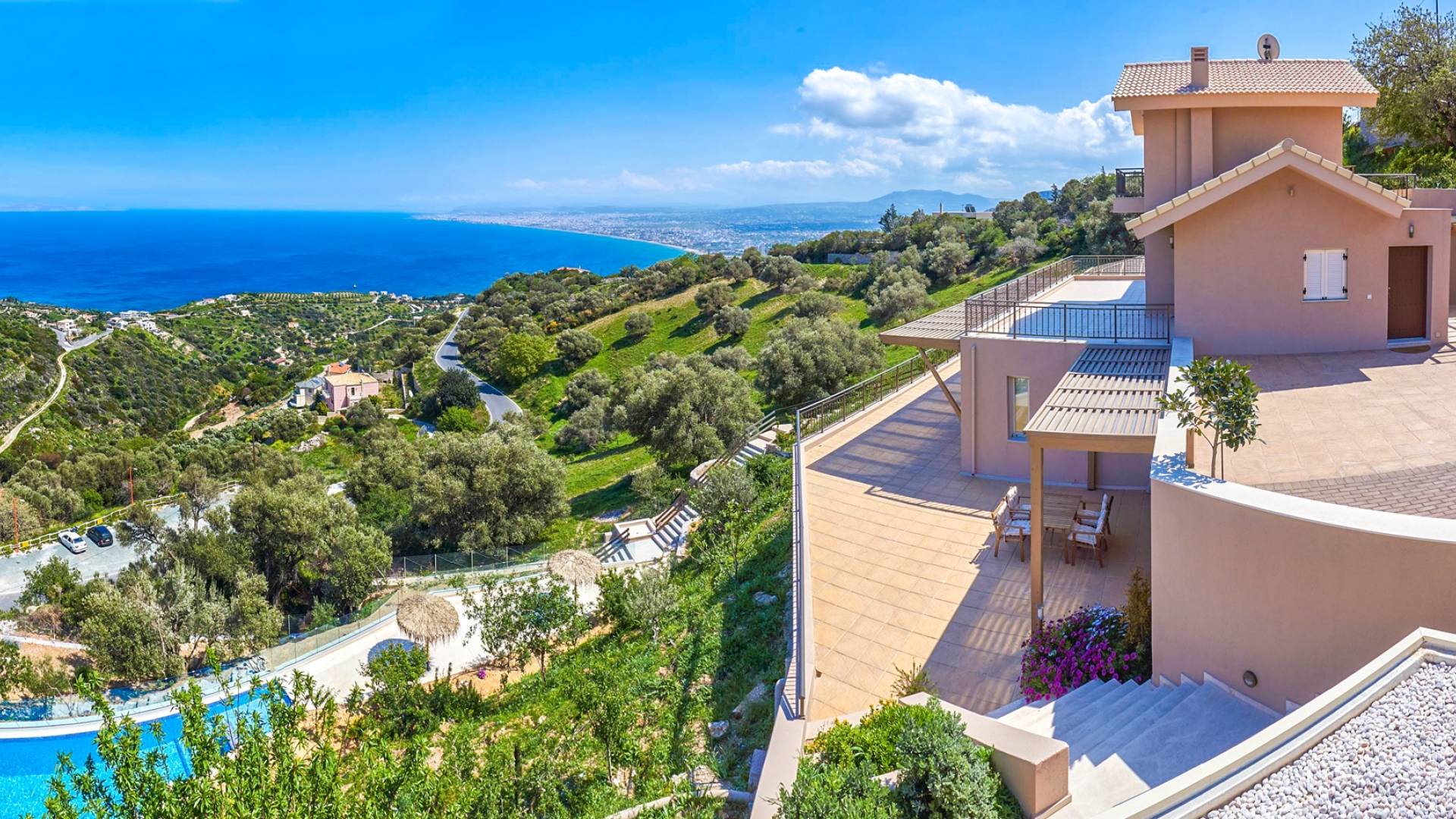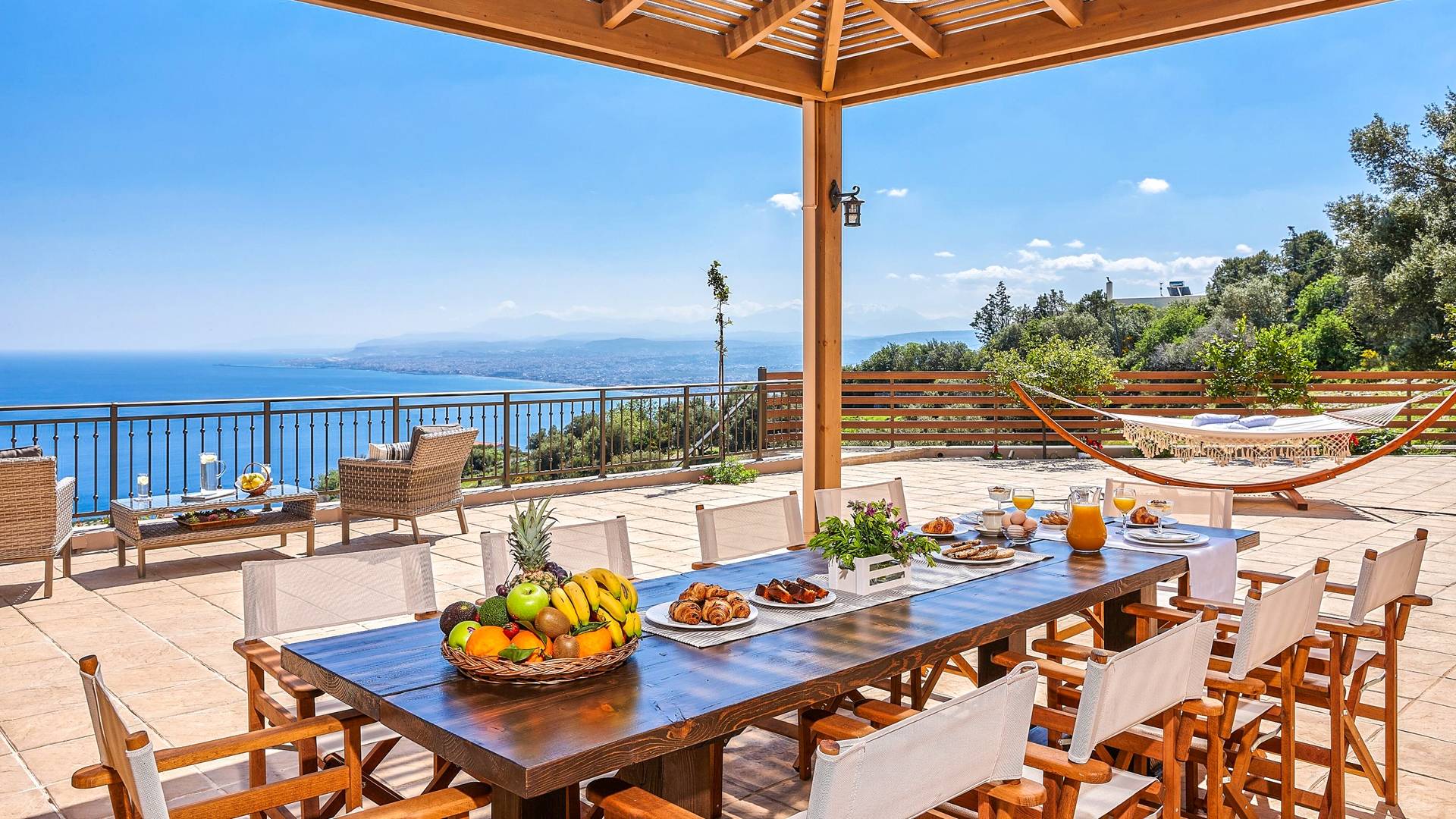 Villa Sealo Crete - Σκαρφαλωμένη στην κορυφή του λόφου πάνω από την Παντάνασσα, στις πλαγιές του όρους Ρόδια, η Villa Sealo Crete προσφέρει εκπληκτική πανοραμική θέα στο Αιγαίο, στον κόλπο του Ηρακλείου, στο νησί Ντία και στα γύρω βουνά, καθώς και πολύχρωμη θέα στο ηλιοβασίλεμα. Βρίσκεται σε οικόπεδο 2700 τ.μ. κοντά στο γραφικό χωριό Ροδιά και σε μικρή απόσταση με το αυτοκίνητο από την πόλη του Ηρακλείου μπορεί να είναι η αφετηρία σας για να εξερευνήσετε όλα όσα έχει να προσφέρει το νησί της Κρήτης ή να χρησιμεύσει ως ο ιδιωτικός σας παράδεισος για αναψυχή και αναψυχή.