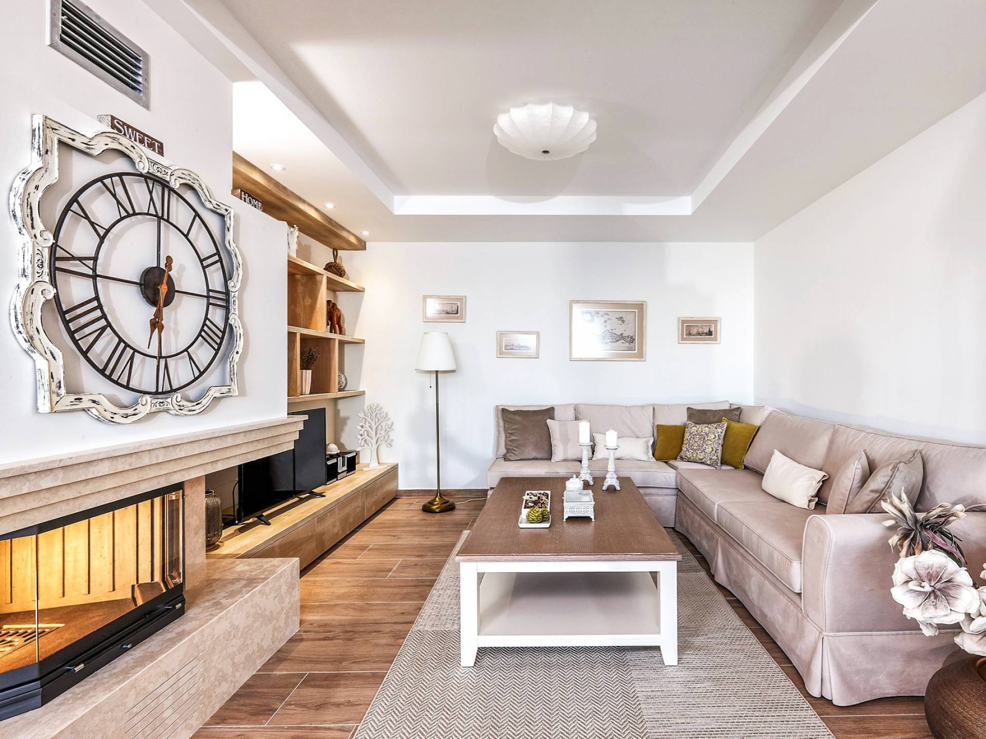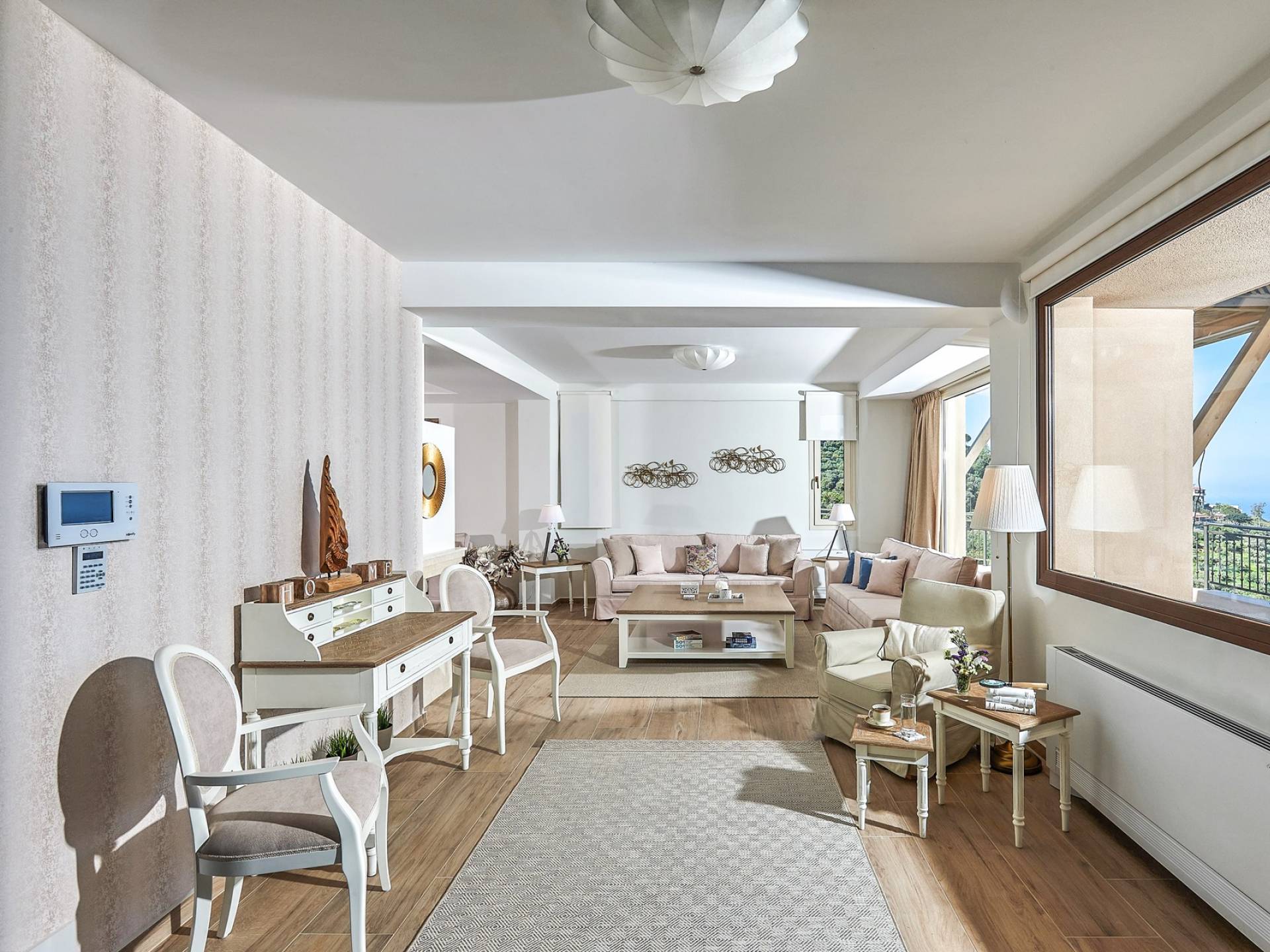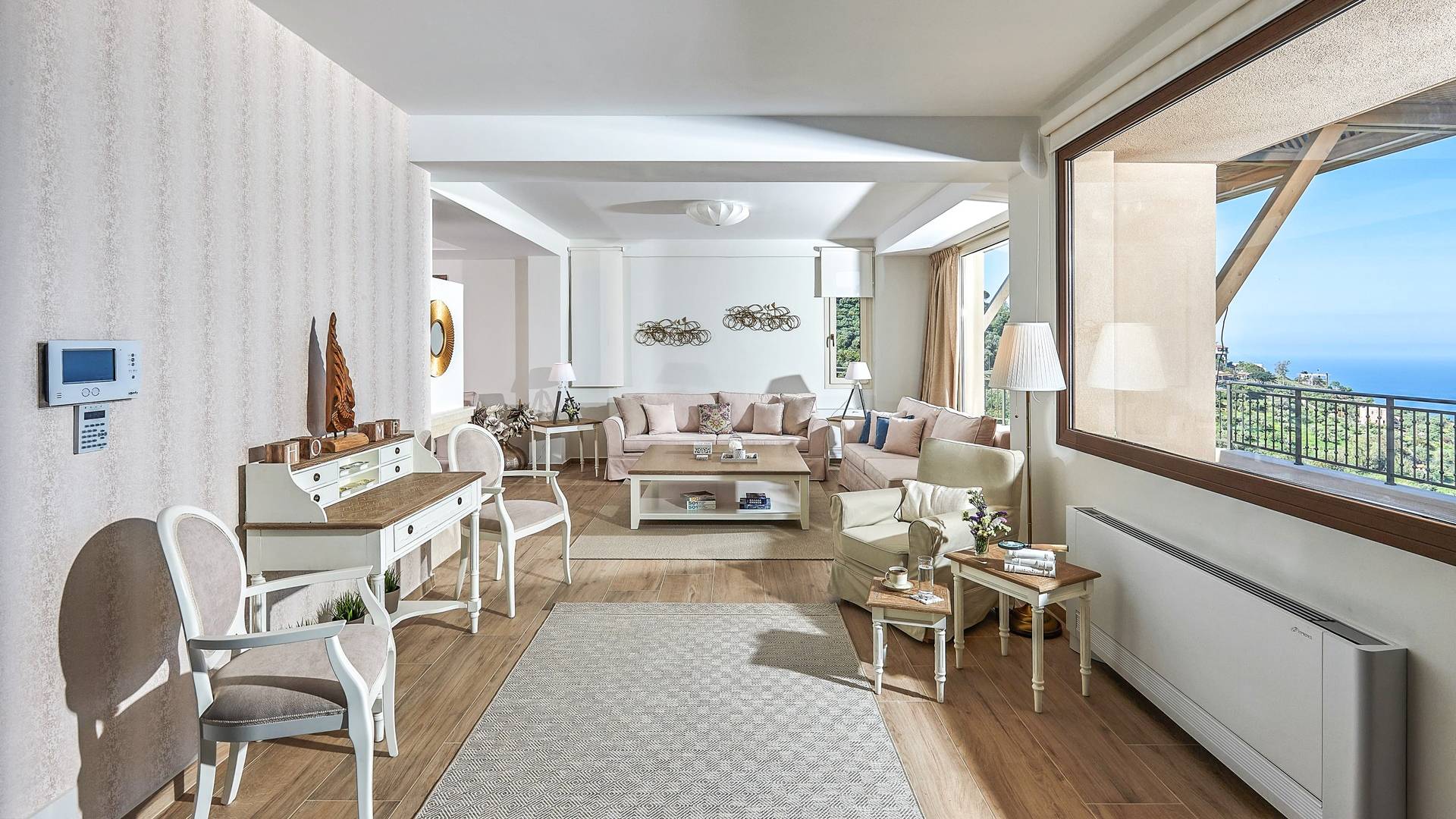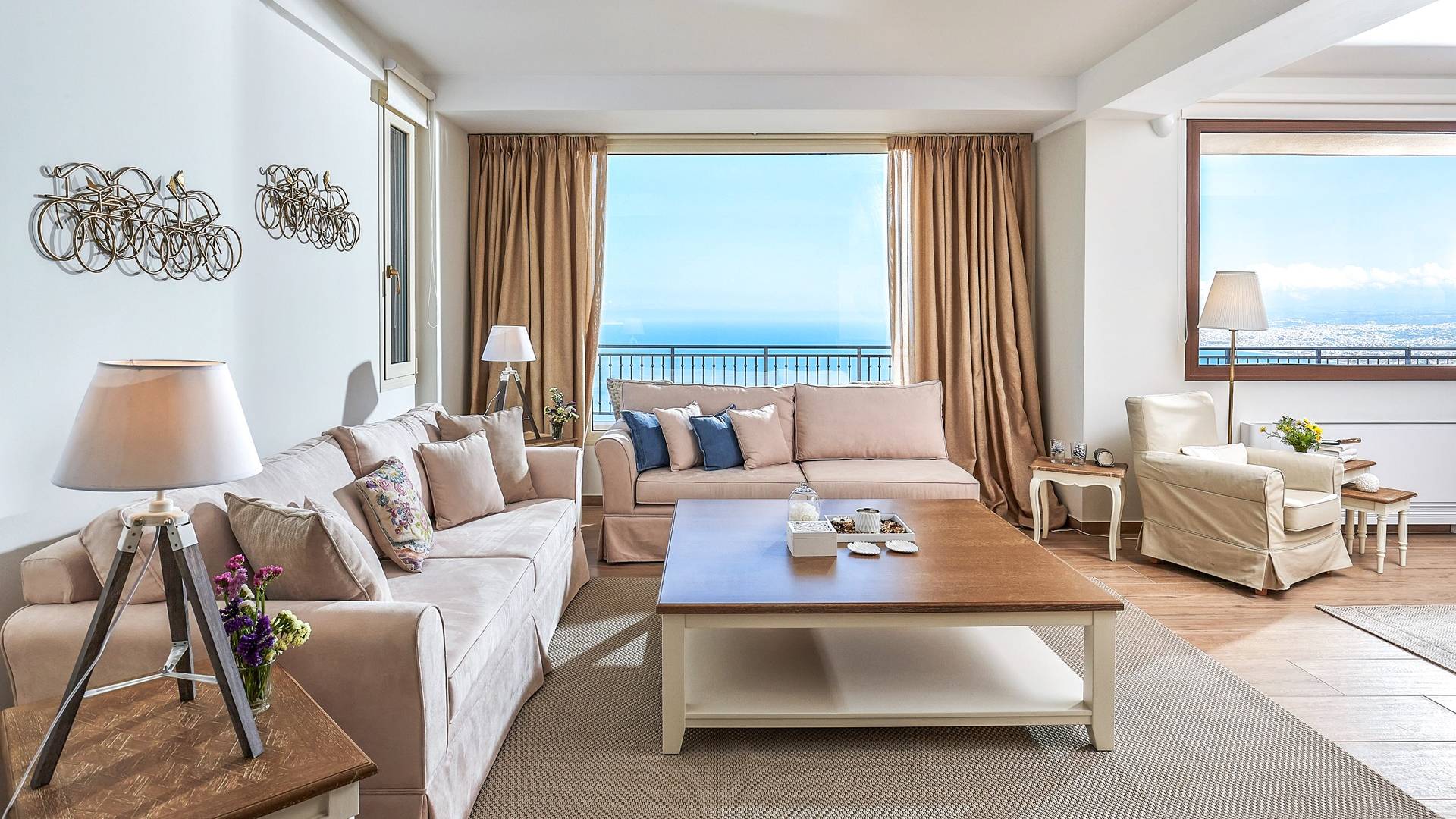 Η μοντέρνα αρχιτεκτονική της βίλας είναι σε απόλυτη αρμονία με το φυσικό τοπίο, χτισμένη αμφιθεατρικά, δίνοντας ένα εξαιρετικό παράδειγμα αποκλειστικού στυλ σε συνδυασμό με τα φυσικά στοιχεία της Κρήτης! Κάθε λεπτομέρεια έχει σχεδιαστεί με προσοχή, με σκοπό να δημιουργήσει έναν γαλήνιο όρμο που προσφέρει πλήρη ιδιωτικότητα. Οι εσωτερικοί χώροι είναι πλήρως εξοπλισμένοι και όμορφα διακοσμημένοι σε γήινους τόνους ώστε να δίνουν μια επιπλέον νότα χαλάρωσης, κομψότητας και πολυτέλειας. Η κατοικία 250 m2 χωρίζεται σε 3 ορόφους και διαθέτει 5 υπνοδωμάτια και μπορεί να φιλοξενήσει 10 άτομα και έως 11 αν χρειαστεί! Μπαίνοντας στο ισόγειο, οι επισκέπτες μπορούν να βρουν το σαλόνι στα δεξιά τους και την κουζίνα και την τραπεζαρία στα αριστερά τους. Το καθιστικό συμπληρώνεται από 3 άνετους άνετους καναπέδες με διάφορα τραπεζάκια, τζάκι, Smart TV, Playstation 5 και ηχείο Bluetooth.
