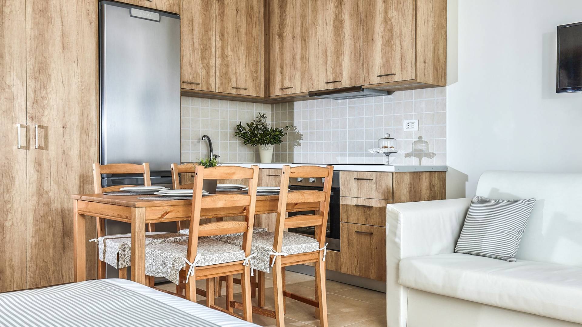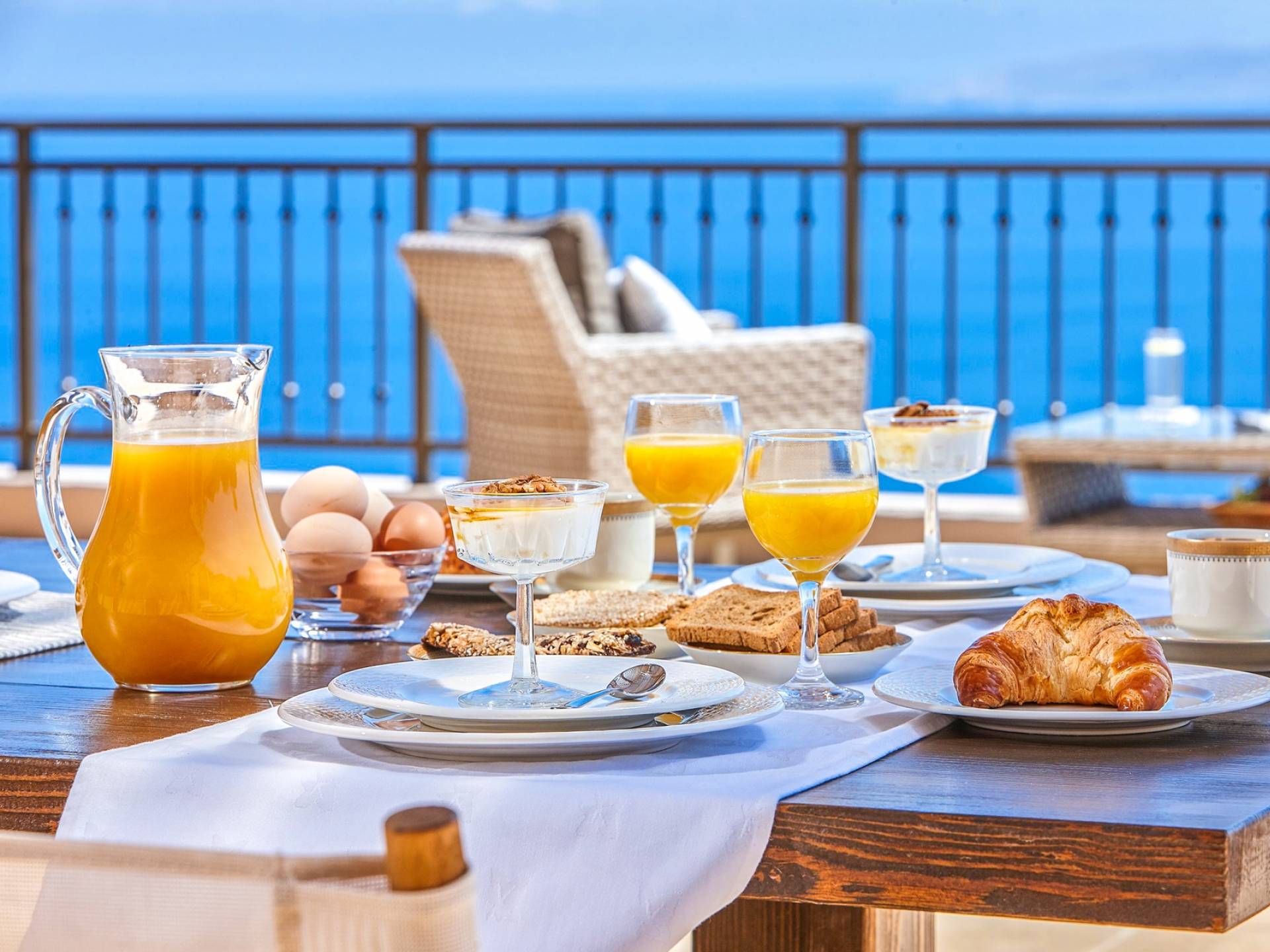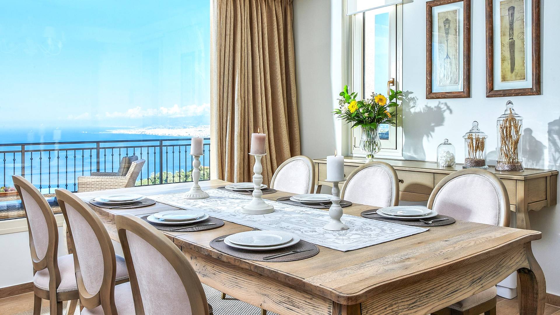Η κουζίνα προσφέρει όλες τις απαραίτητες συσκευές για την προετοιμασία των γευμάτων σας, καθώς και ένα τραπέζι πρωινού για 4 άτομα. Η διπλανή εσωτερική τραπεζαρία για 8 άτομα απολαμβάνει επίσης εκπληκτική θέα στη θάλασσα. Από την κουζίνα οι επισκέπτες μπορούν επίσης να έχουν πρόσβαση σε μια δεύτερη τραπεζαρία στη βεράντα με μοναστηριακή τραπεζαρία για 10 άτομα, για να διαλέξουν ανάλογα με τις προτιμήσεις τους. Το σαλόνι και η τραπεζαρία απολαμβάνουν απίστευτη θέα και ευχάριστο θαλασσινό αεράκι. Σε αυτό το επίπεδο διατίθεται και WC. Στο ίδιο επίπεδο, υπάρχει ένα ξεχωριστό στούντιο με τη δική του ιδιωτική είσοδο που περιλαμβάνει 2 μονά κρεβάτια (0,90 x 2,00 ) που μπορεί να διαμορφωθεί ως κρεβάτι queen size κατόπιν αιτήματος και ένας καναπές που μετατρέπεται σε βολικό κρεβάτι για έναν τρίτο επισκέπτη. Το αυτόνομο διαμέρισμα προσφέρει επίσης όμορφη θέα στη θάλασσα και διαθέτει πλήρως εξοπλισμένη κουζίνα, τραπεζαρία για 4 άτομα και ιδιωτικό μπάνιο.