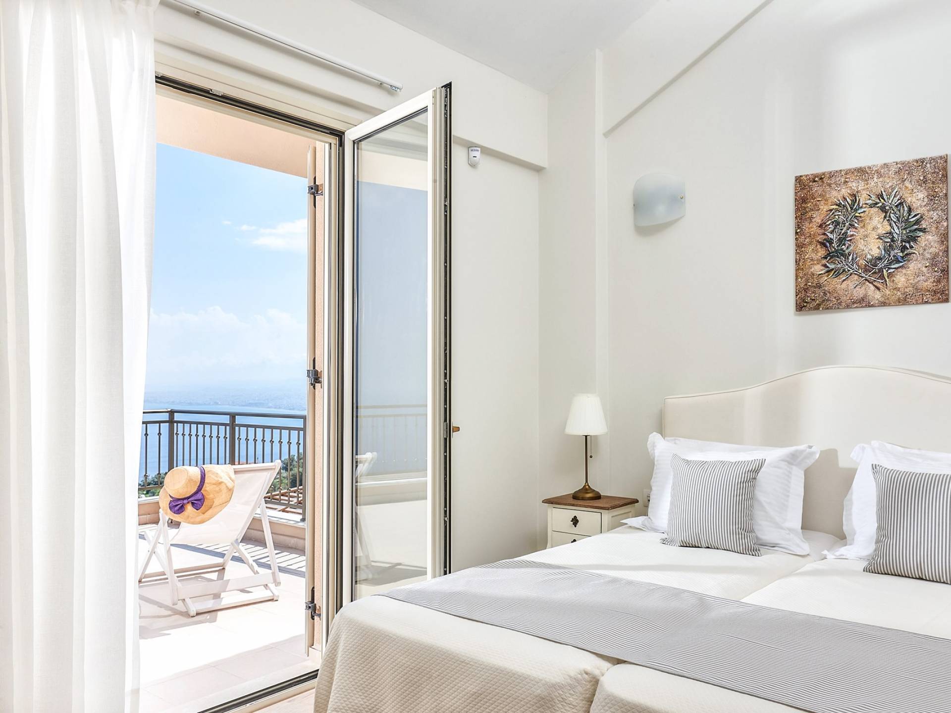 Ακολουθώντας τις σκάλες προς τα πάνω, θα βρεθείτε στη χαριτωμένη σοφίτα, με 2 μονά κρεβάτια (0,90 x 2,00 ) που μπορούν να διαμορφωθούν ως κρεβάτι queen size κατόπιν αιτήματος, κλιματισμός, τηλεόραση, ντουλάπα και νιπτήρας. Η σοφίτα ανοίγει σε ένα μικρό μπαλκόνι Juliet και επίσης σε μια ιδιωτική βεράντα στο πίσω μέρος του δωματίου, εξοπλισμένη με καθιστικό με τραπέζι και 4 καρέκλες. Οι άνετοι εξωτερικοί χώροι της Villa Sealo Crete καλύπτουν 500 m2 και προσφέρουν απόλυτη ιδιωτικότητα και εκπληκτική θέα στη θάλασσα και τα βουνά, καθώς και πολλές παροχές