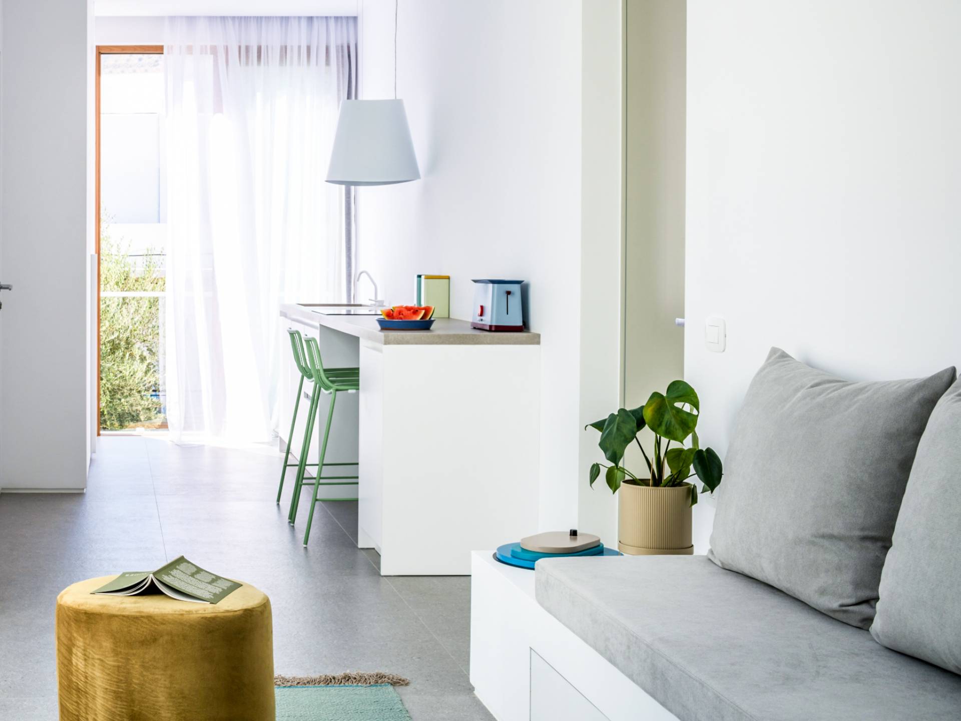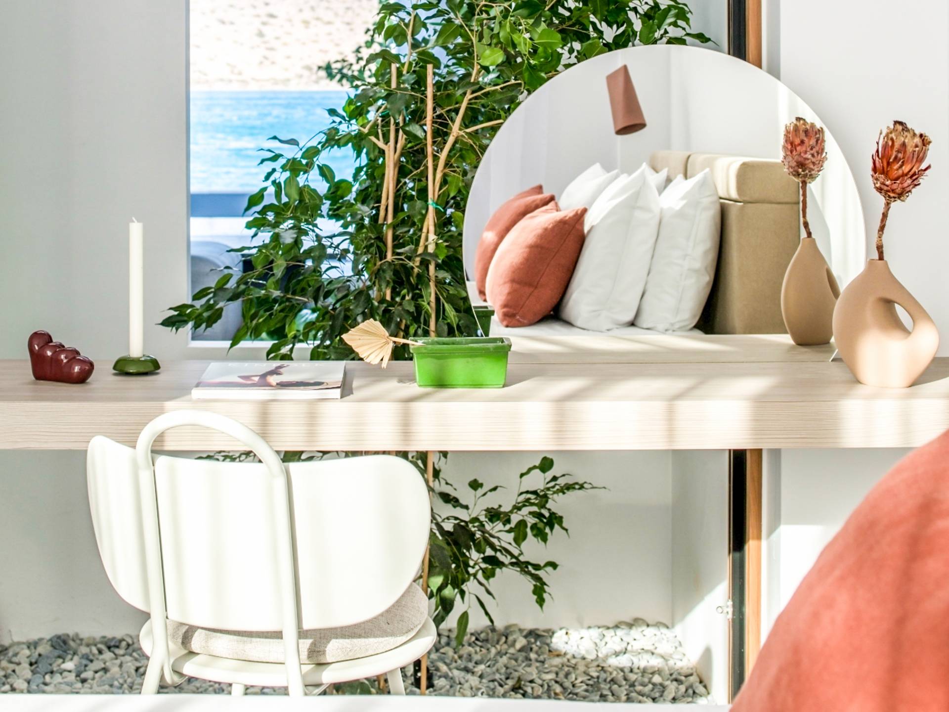 Περιτριγυρισμένη από λόφους και ελαιώνες, προσφέρει μαγευτική θέα στον κόλπο του Μιραμπέλλου, ιδανική για να την απολαύσετε κατά την ανατολή ή το ηλιοβασίλεμα — ιδιαίτερα από την ιδιωτική σας βεράντα.