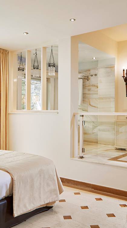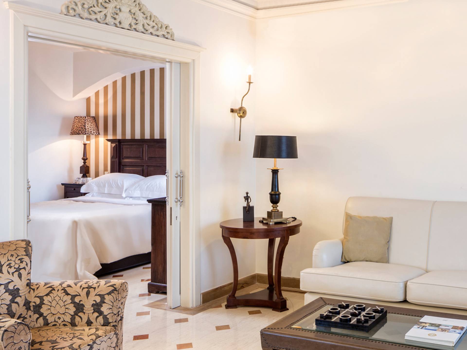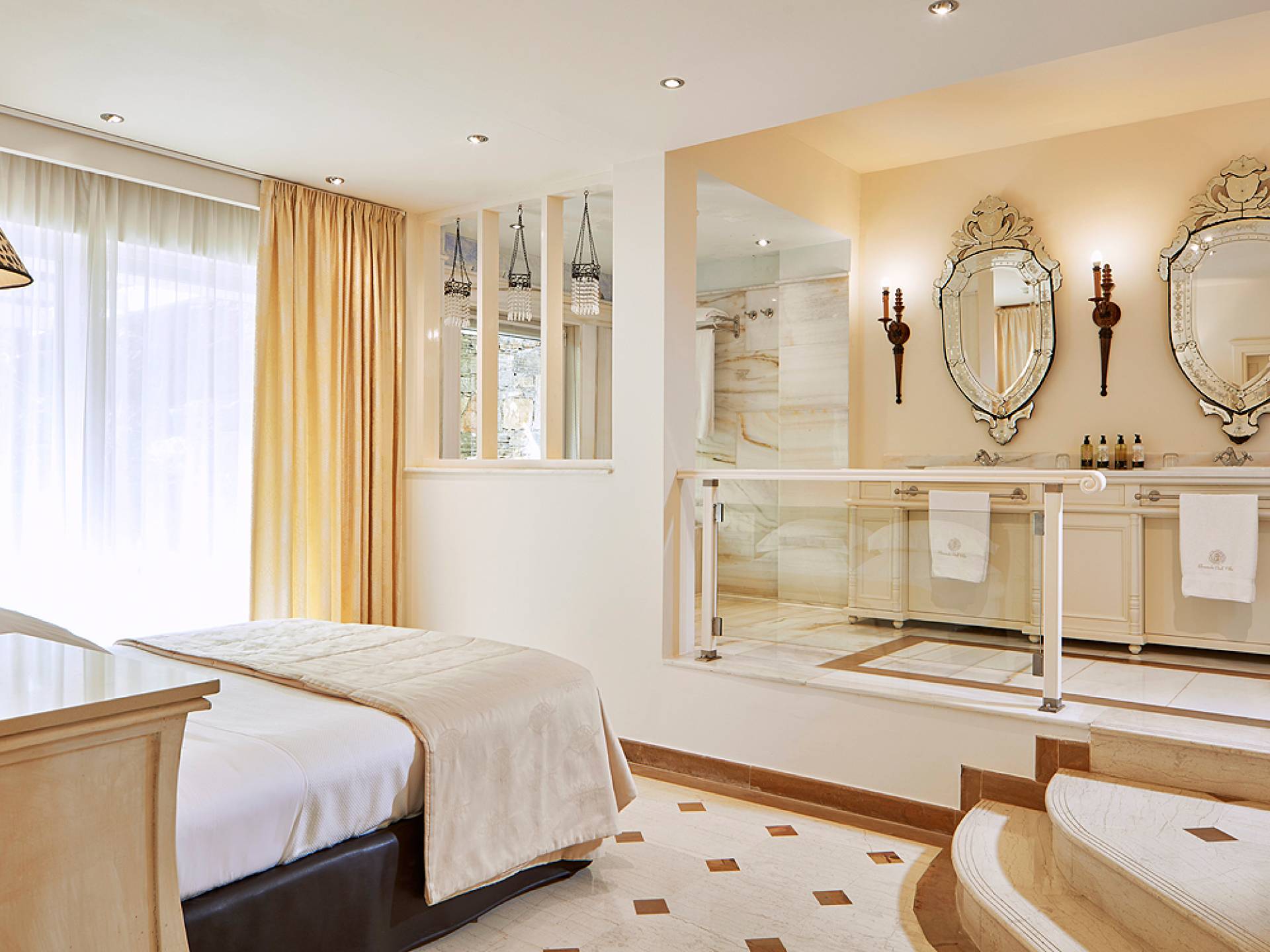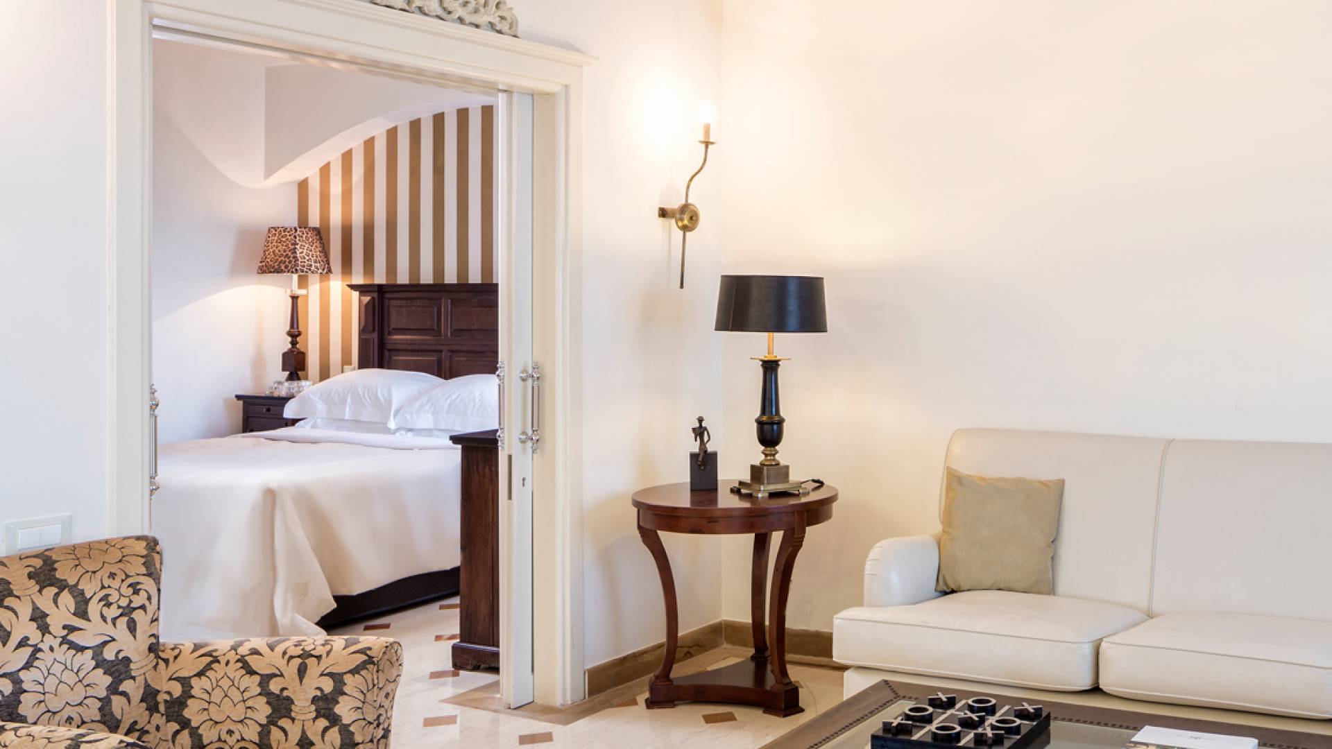 Το 1 υπνοδωμάτιο των Deluxe Senior Suites μπορεί να φιλοξενήσει έως και τρεις επισκέπτες που καλύπτουν περίπου 60-75μ². Κομψά διακοσμημένα με ωραία επίπλωση, ποιοτικά ιταλικά υφάσματα και χαλαρωτικό συνδυασμό χρωμάτων, αυτές οι πανέμορφες σουίτες διαθέτουν ένα μεγάλο υπνοδωμάτιο με ιδιωτικό μαρμάρινο μπάνιο, ξεχωριστό σαλόνι, μπαλκόνι ή βεράντα. Φανταστικά κατασκευασμένα με μαρμάρινα δάπεδα και ζωγραφισμένα στο ταβάνι tromp l'oeil, τα τεράστια ιδιωτικά μπάνια είναι εξοπλισμένα με όλες τις σύγχρονες πολυτέλειες και διαθέτουν καθρέφτη μακιγιάζ, στεγνωτήρα μαλλιών, χαλαρά μπουρνούζια και παντόφλες, καθώς και πολυτελή προϊόντα περιποίησης. Σχεδιασμένο με στιλ, το σαλόνι είναι εξοπλισμένο με συσκευές για τσάι και καφέ. Τα παράθυρα από το δάπεδο μέχρι την οροφή οδηγούν σε μπαλκόνι ή βεράντα με θέα στα γαλάζια νερά του κόλπου Mirabello ή στους αρωματικούς κήπους. Η κύρια πισίνα του ξενοδοχείου, η ειδικά διαμορφωμένη παιδική πισίνα καθώς και οι θέσεις στάθμευσης βρίσκονται λίγα μέτρα μακριά από τις σουίτες